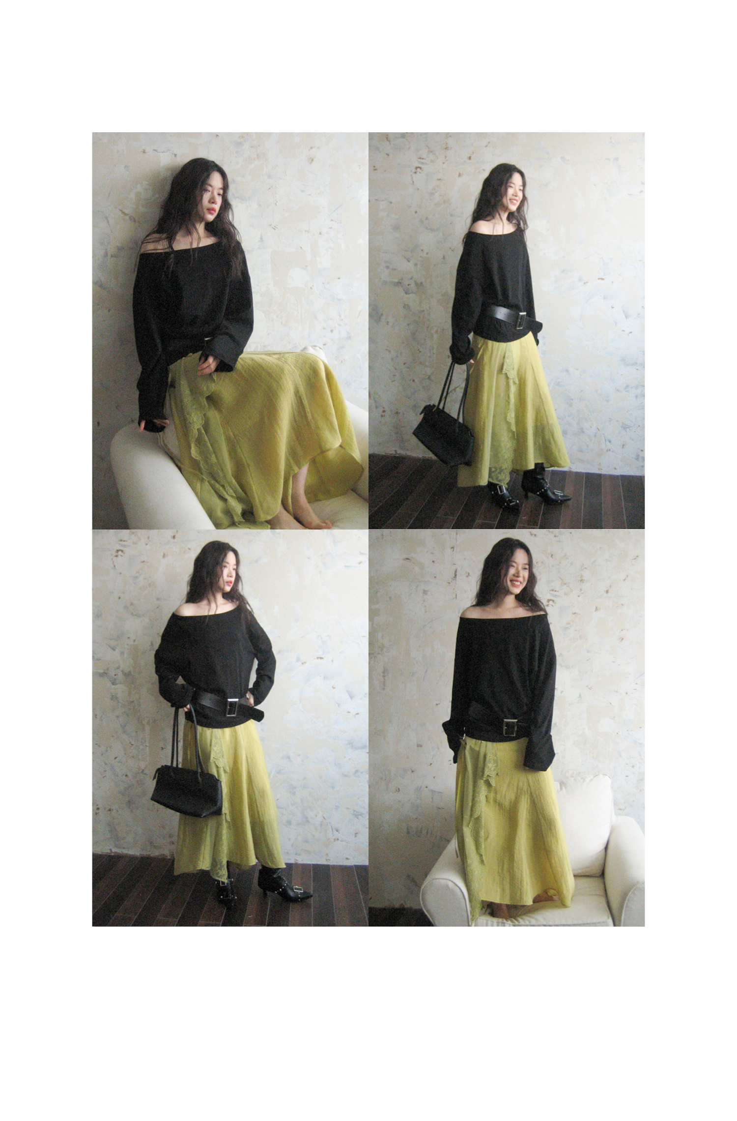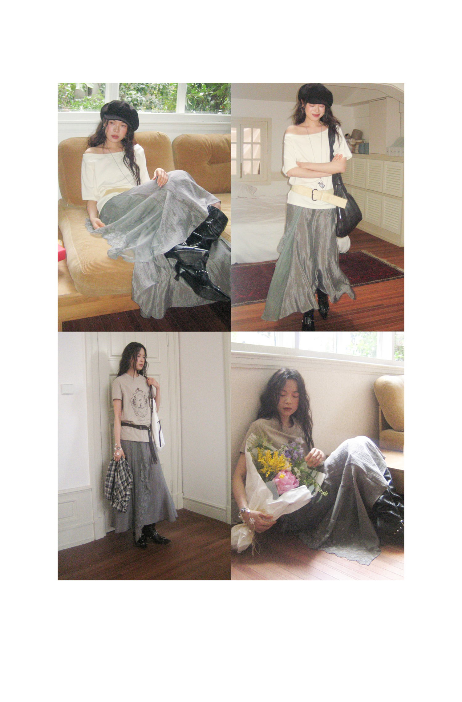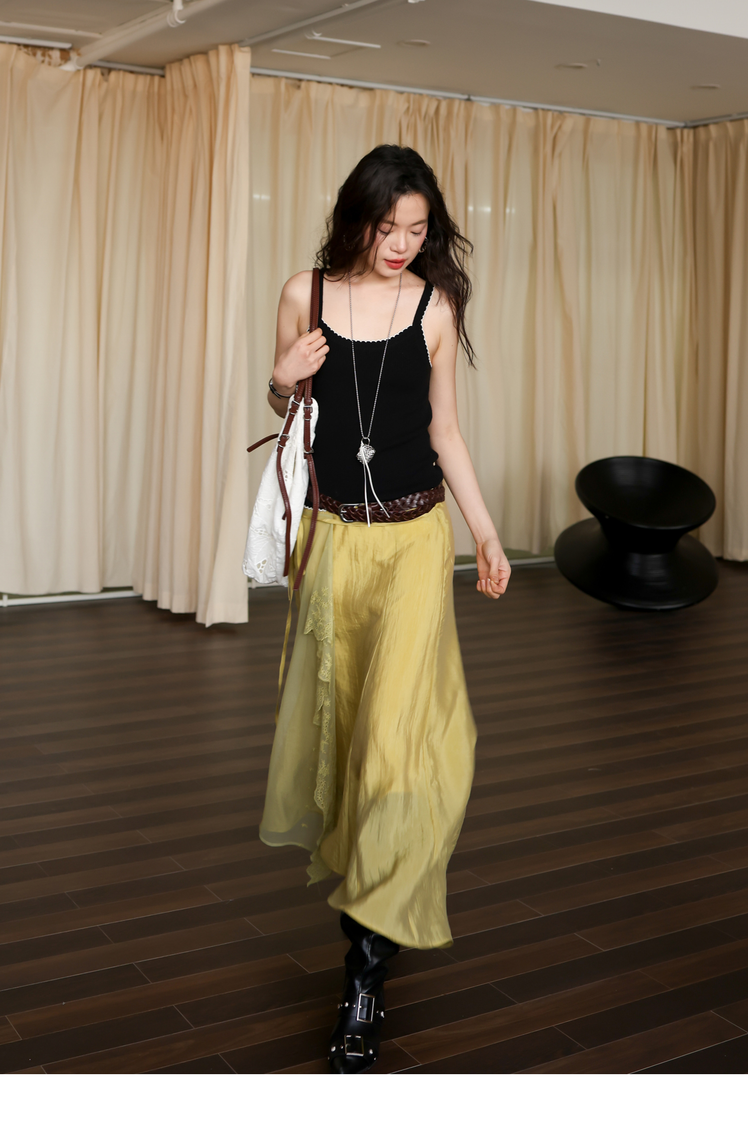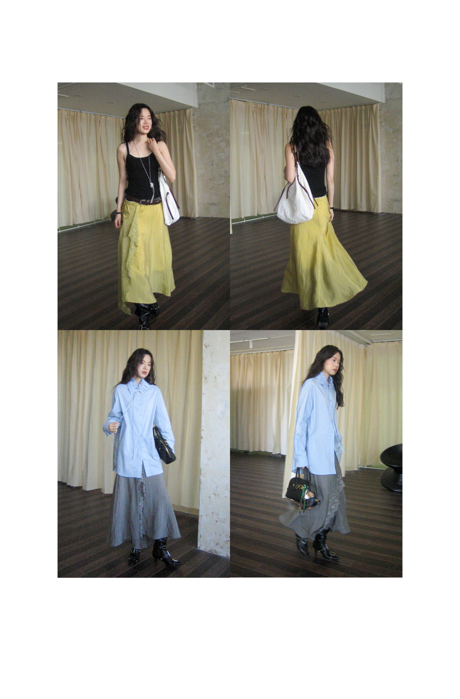 SUPERSCAPE素舶 春夏珠光皱感蕾丝拼接插片设计感长半裙