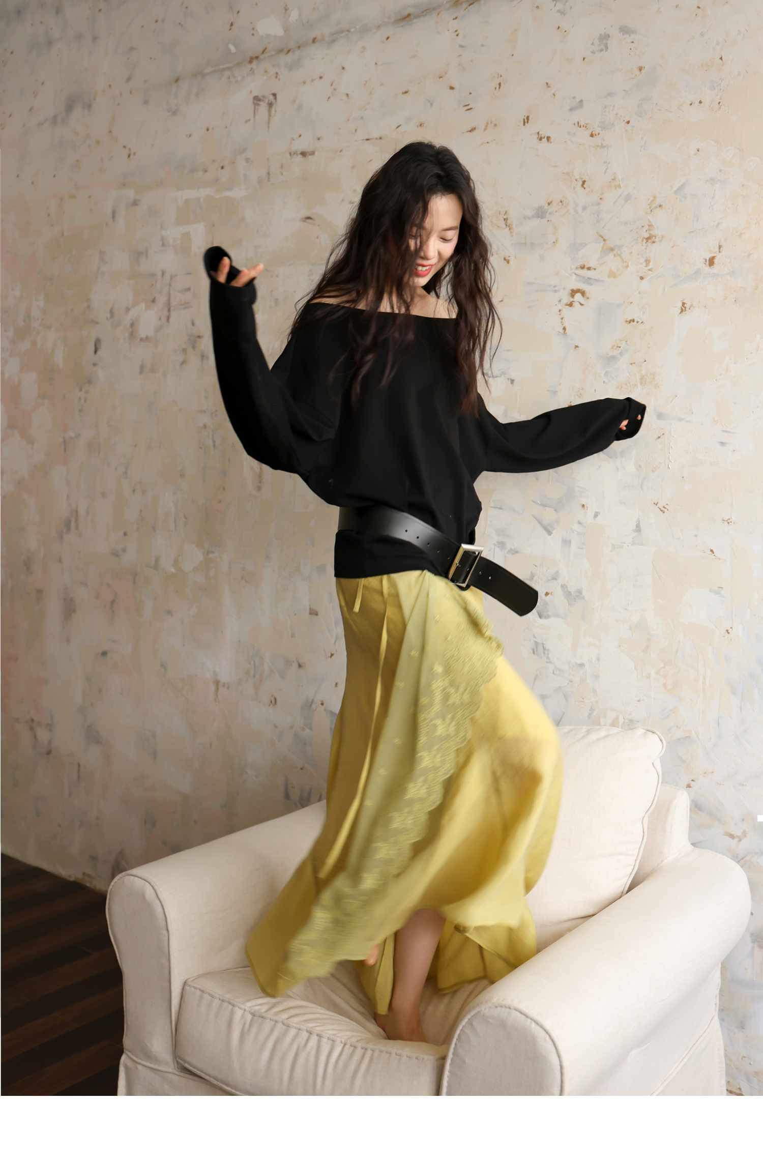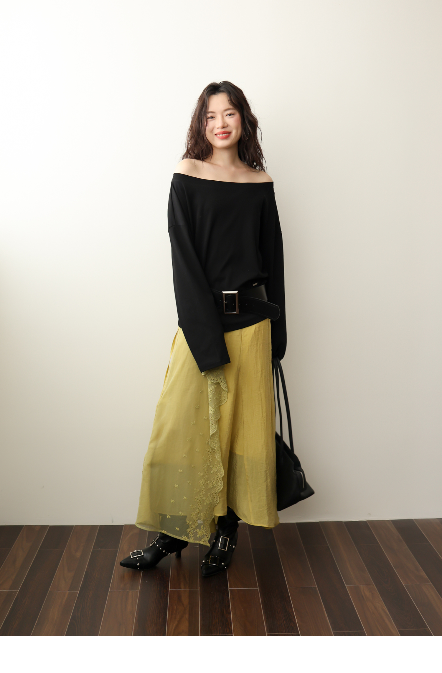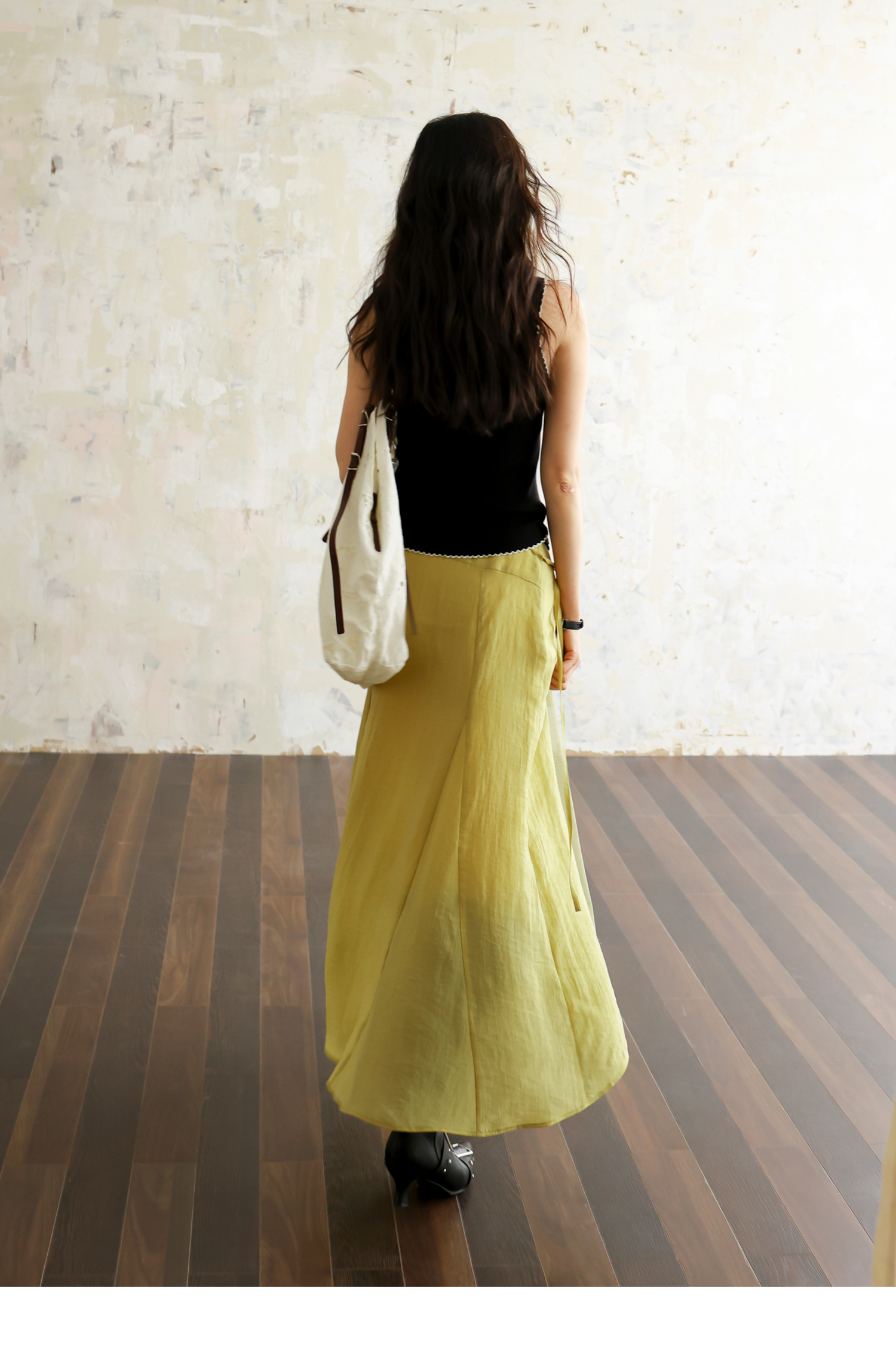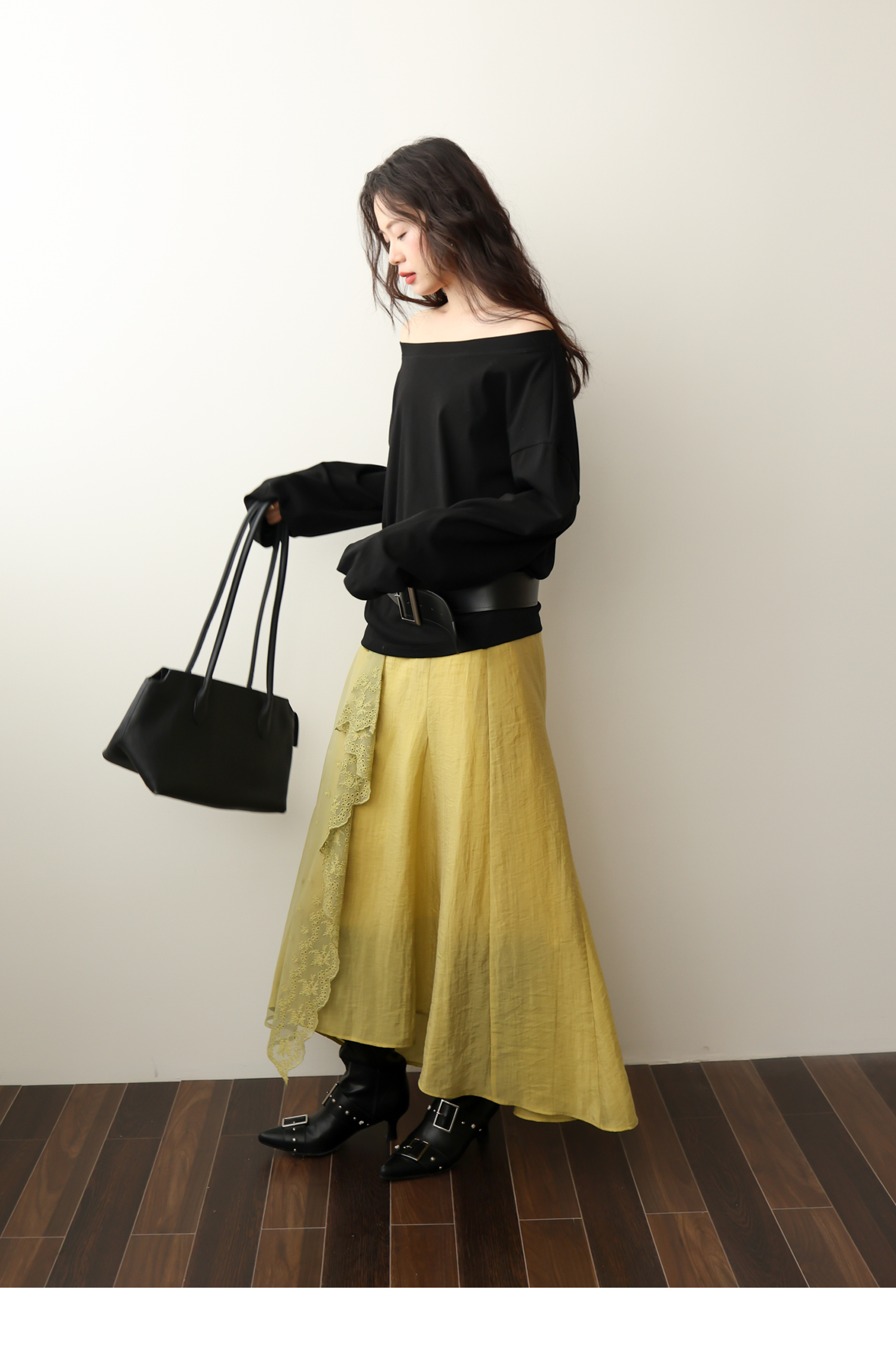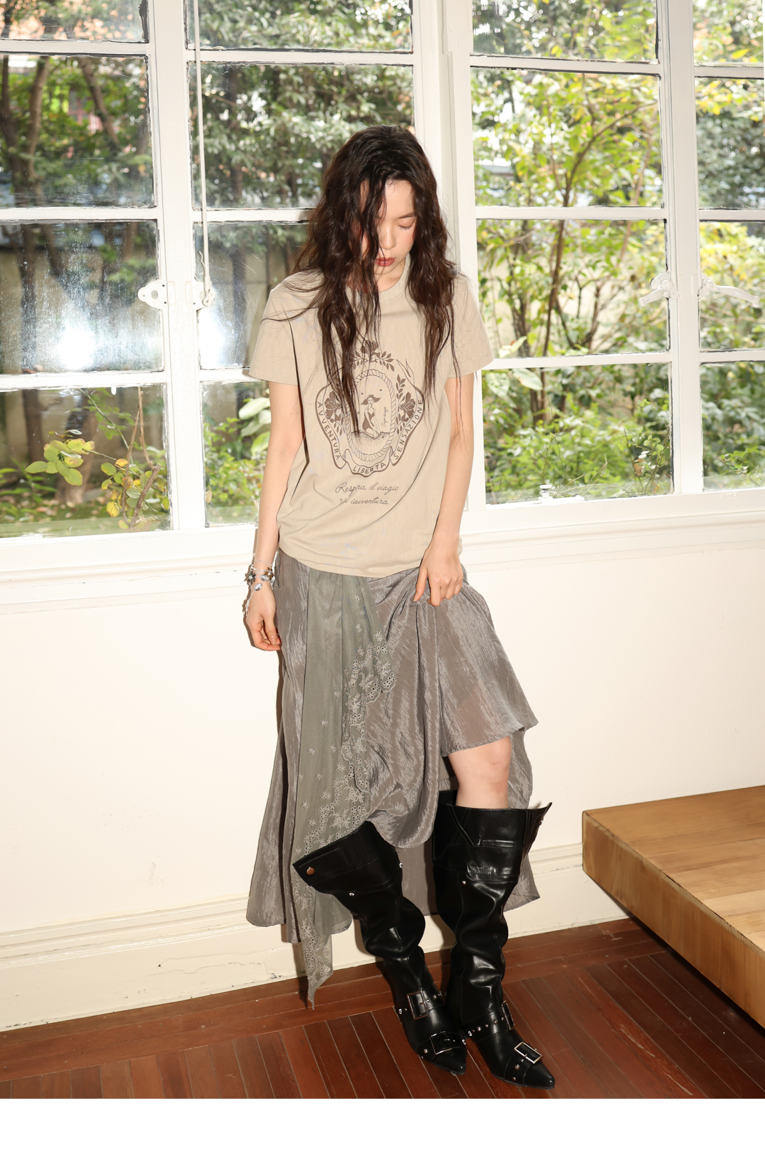 SUPERSCAPE素舶 春夏珠光皱感蕾丝拼接插片设计感长半裙