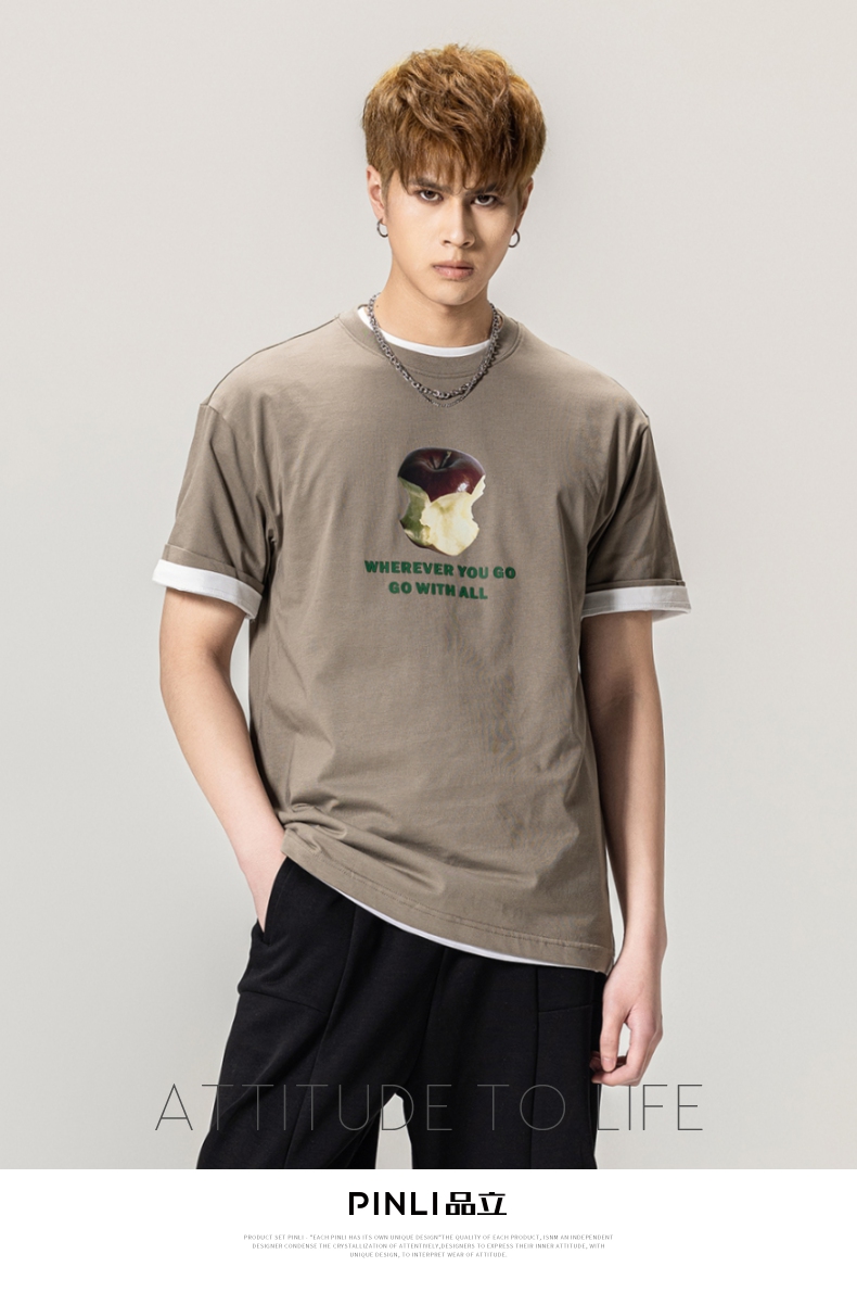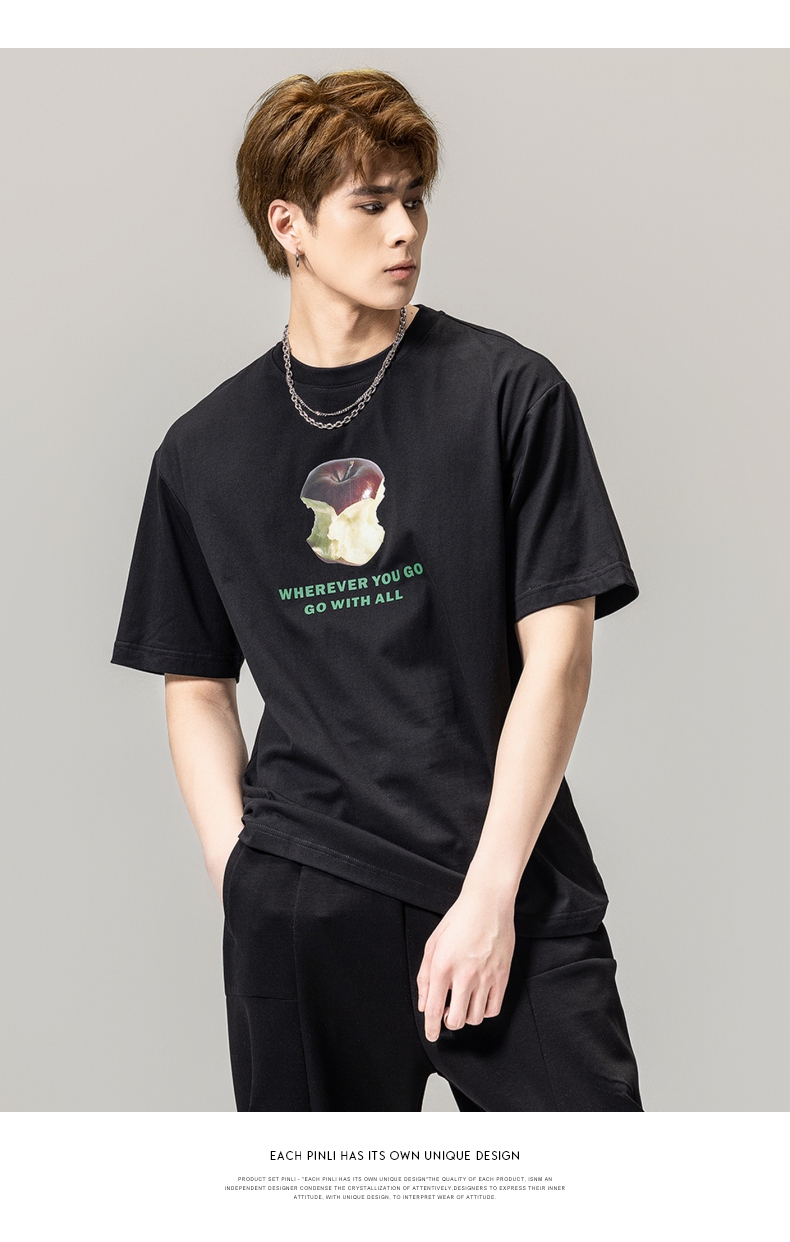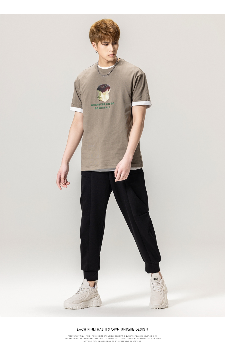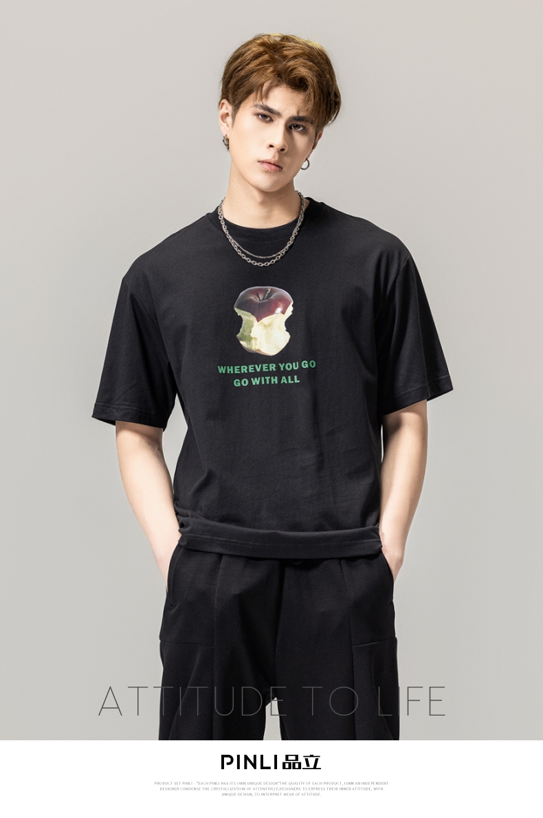 PINLI品立2024春季新款男士纯棉印花圆领休闲短袖T恤BG231111023