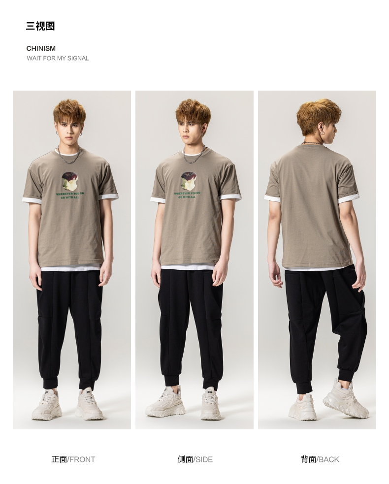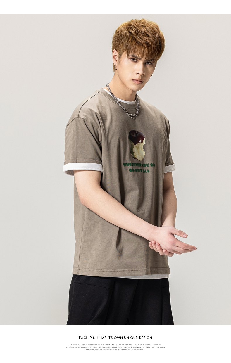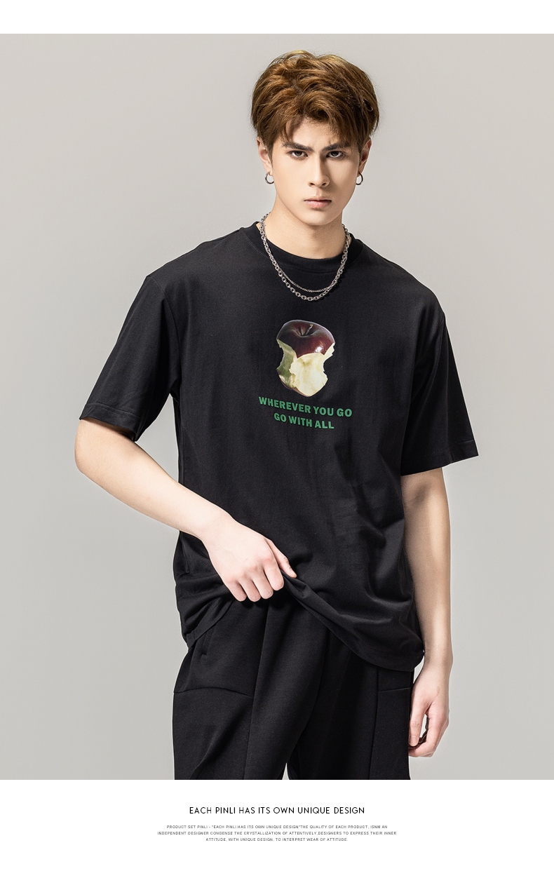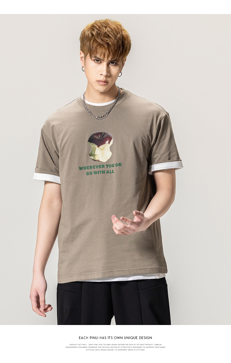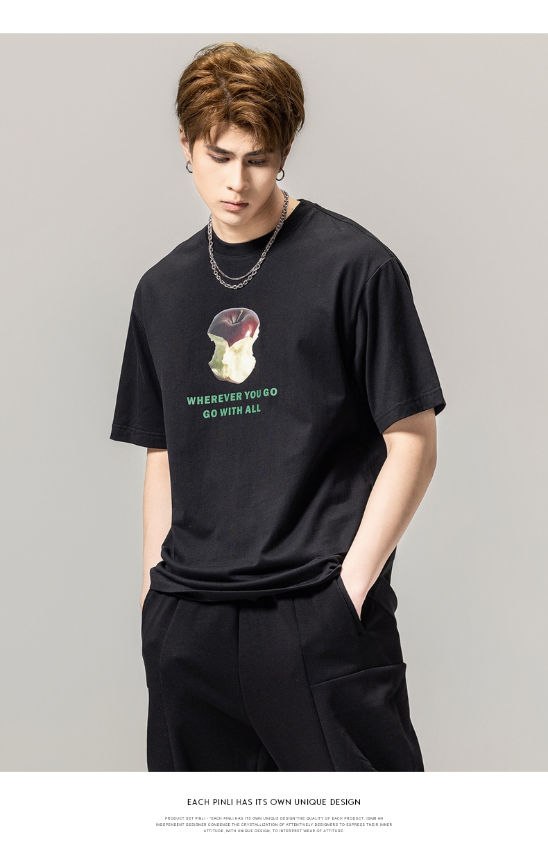 PINLI品立2024春季新款男士纯棉印花圆领休闲短袖T恤BG231111023