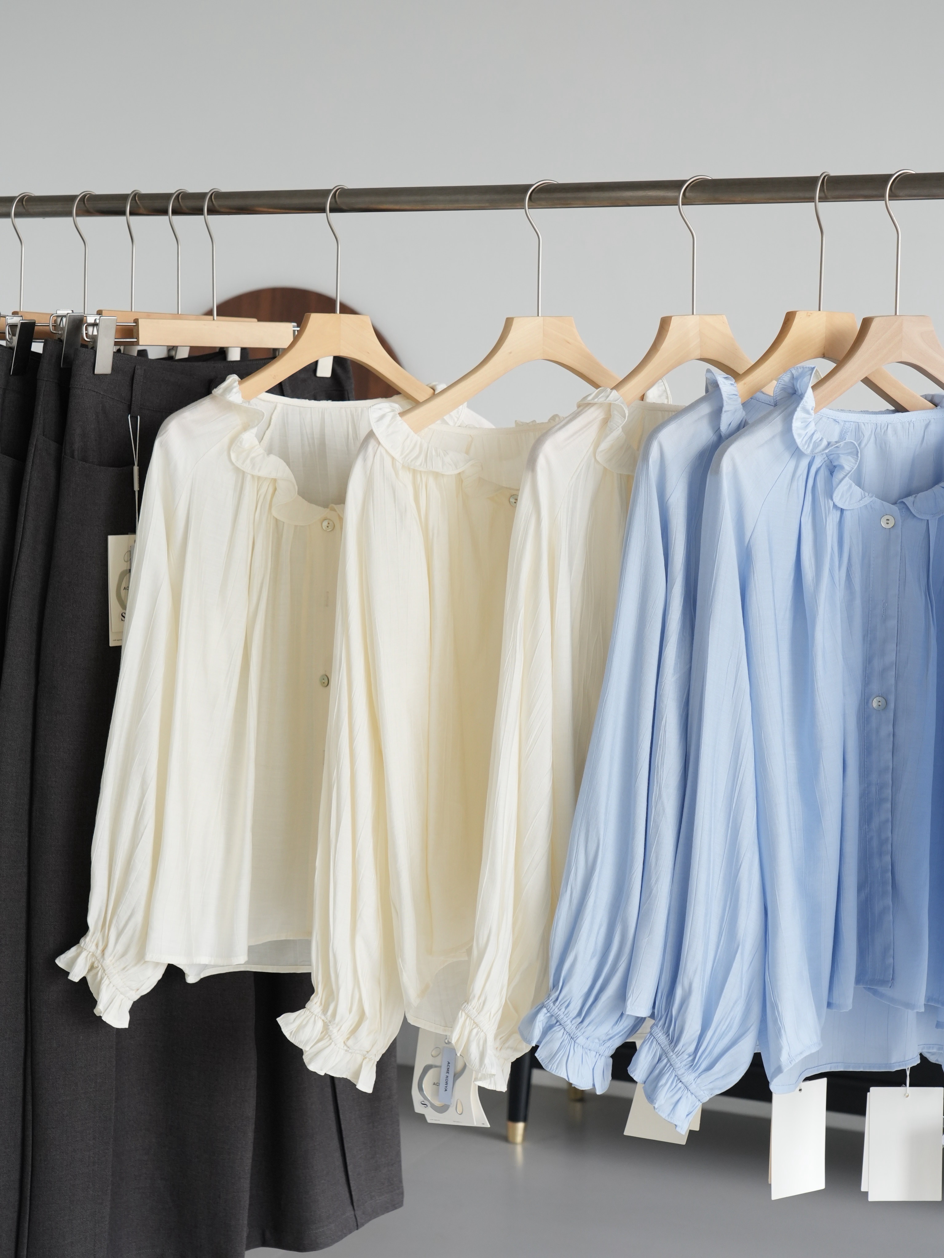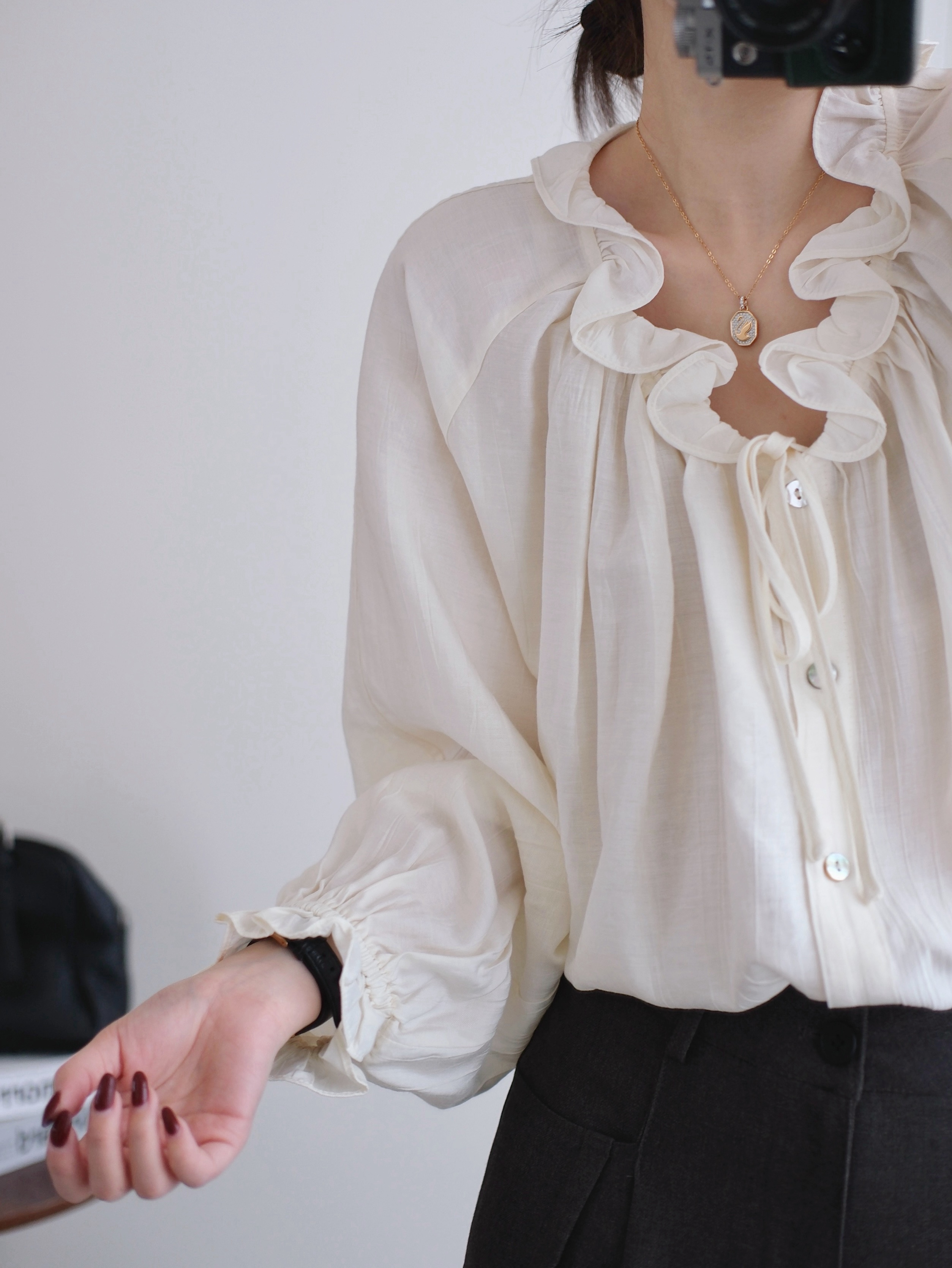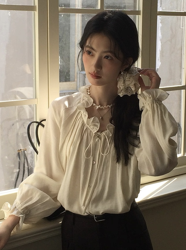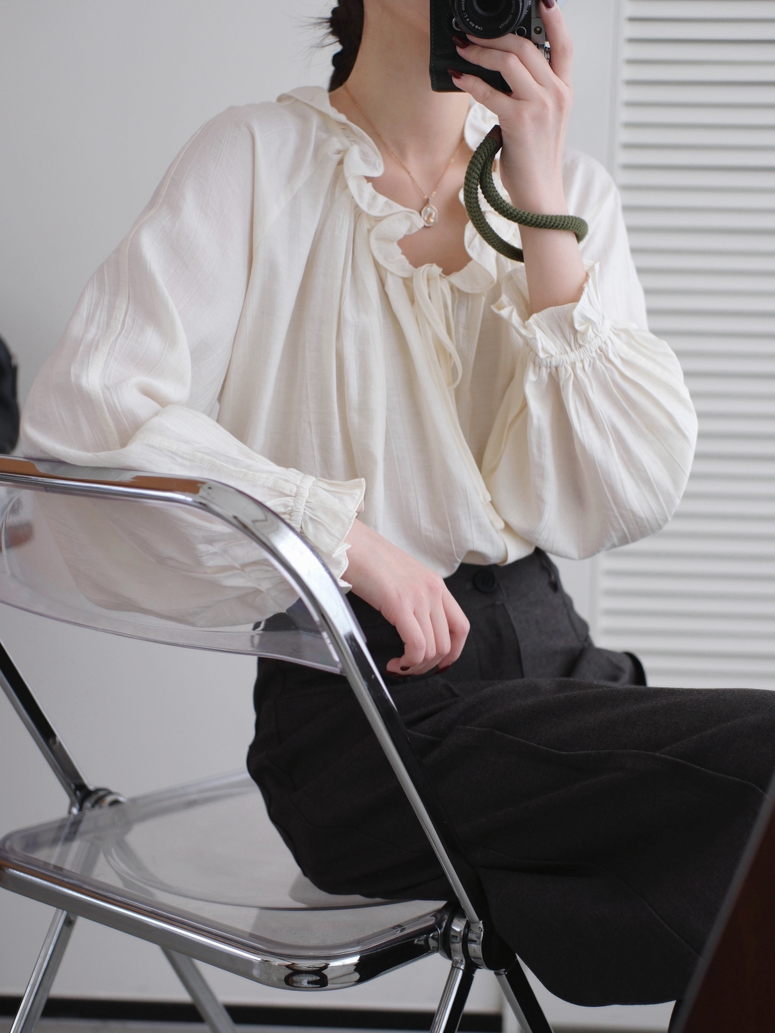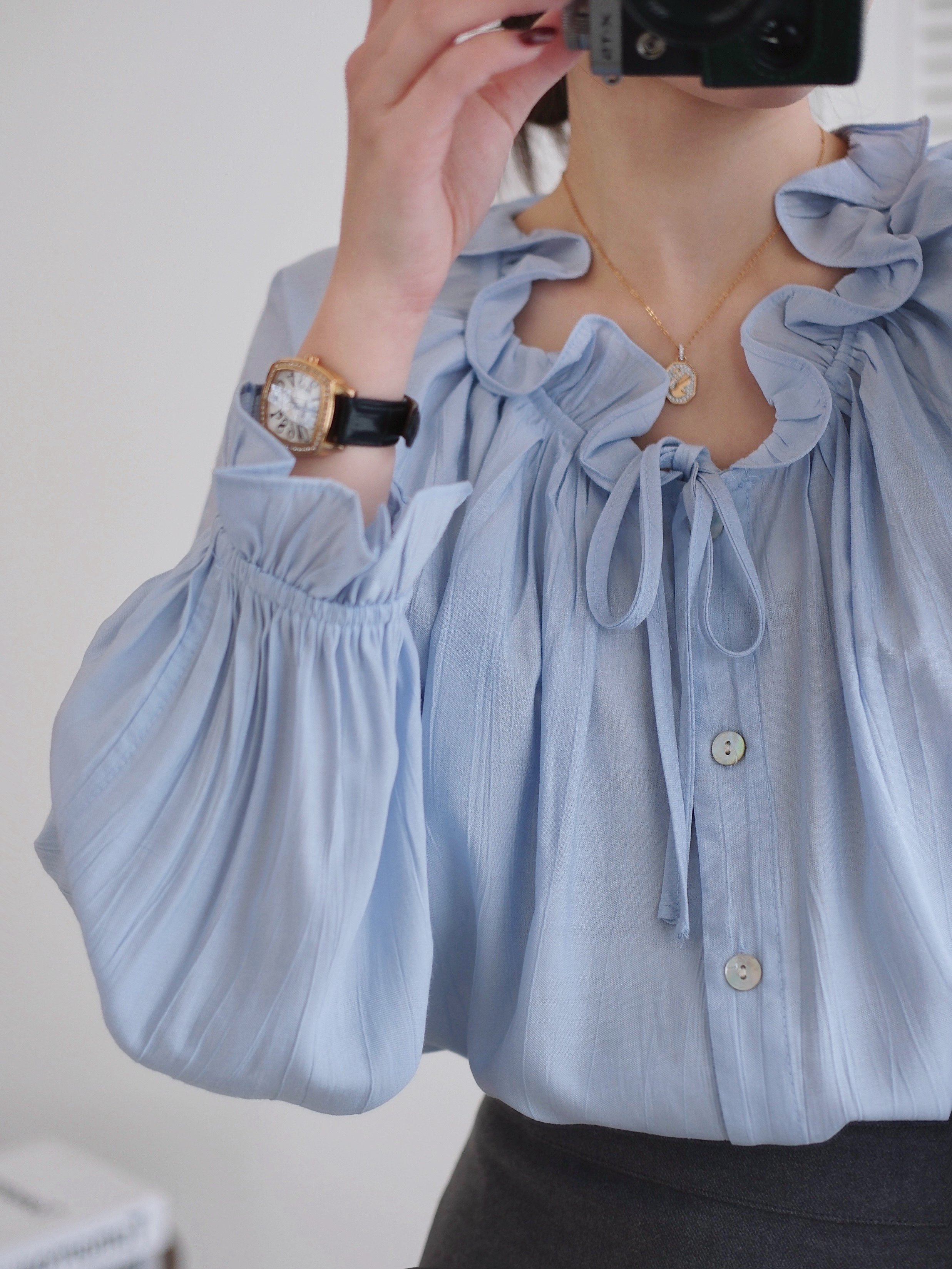 木耳边系带圆领好俏皮~花瓣领口➕泡泡袖的组合,更是法式韵味十足~妥妥的衬衫天花板!