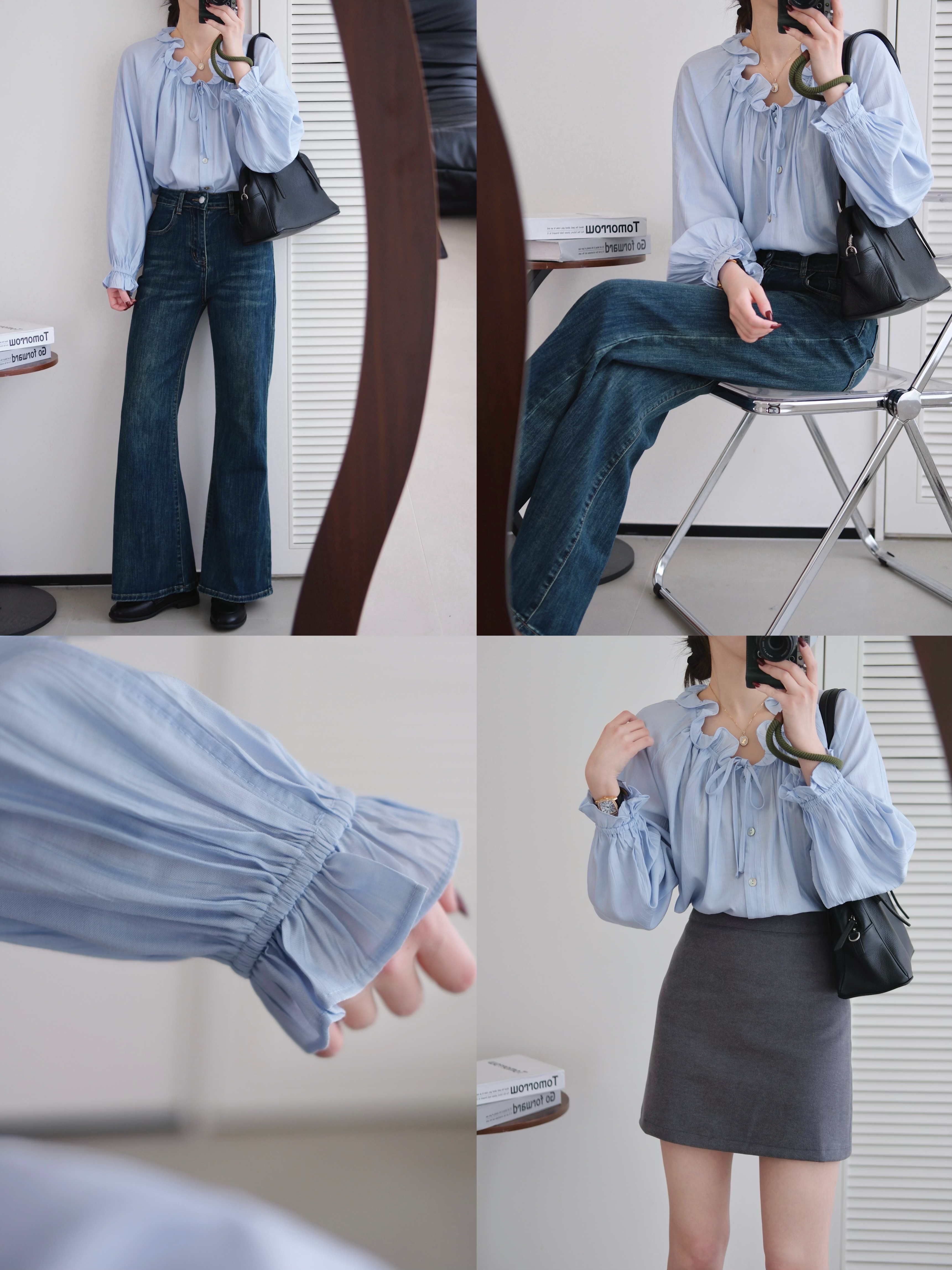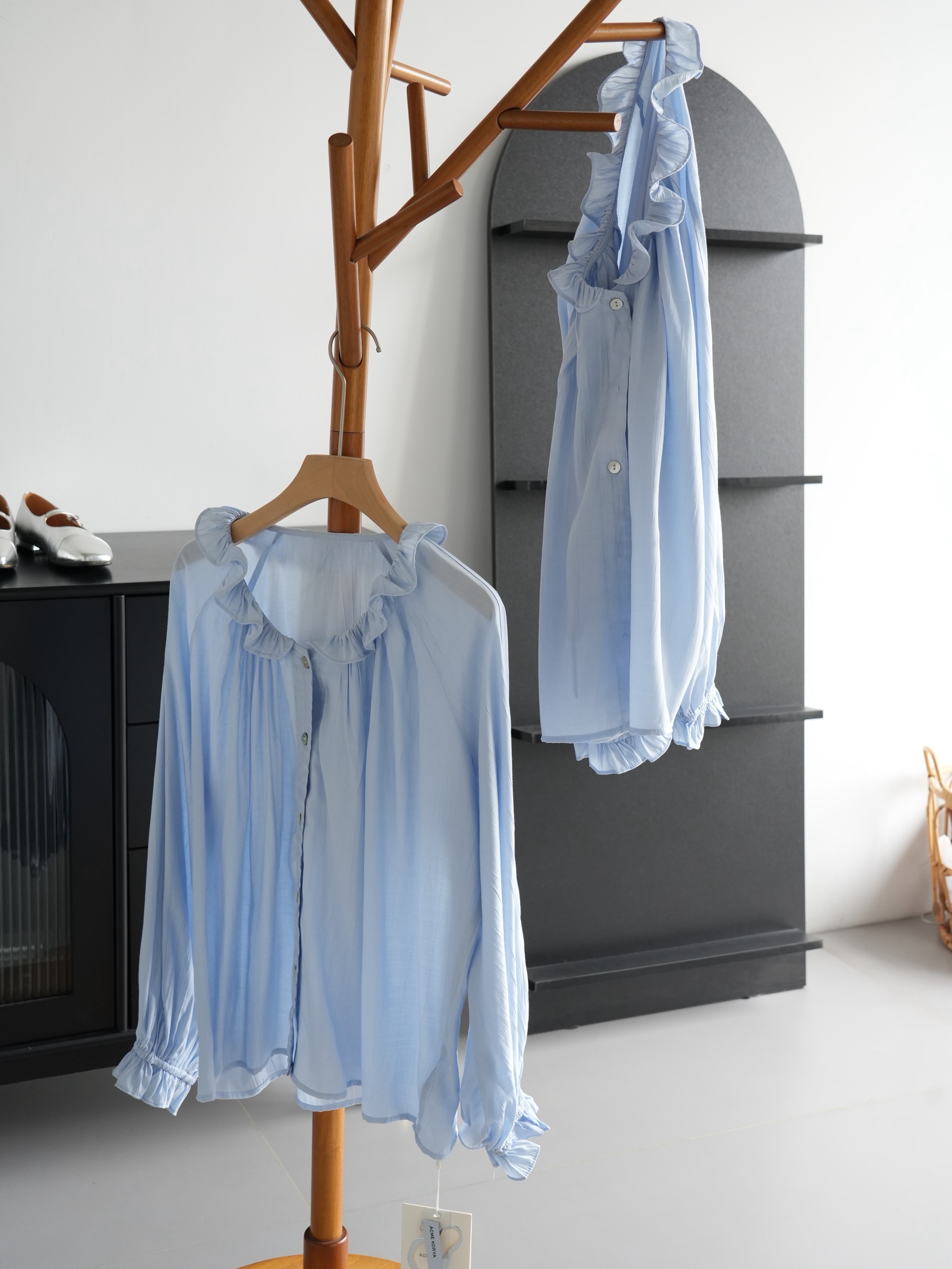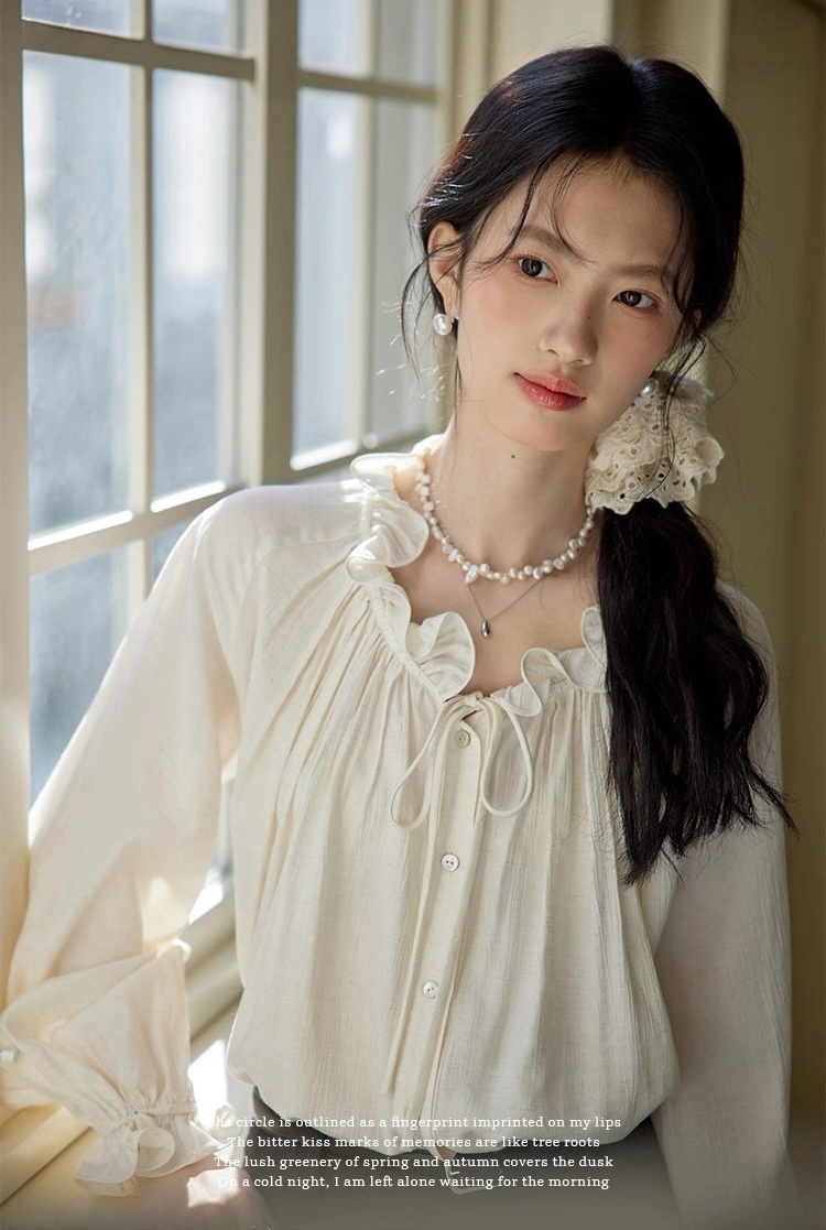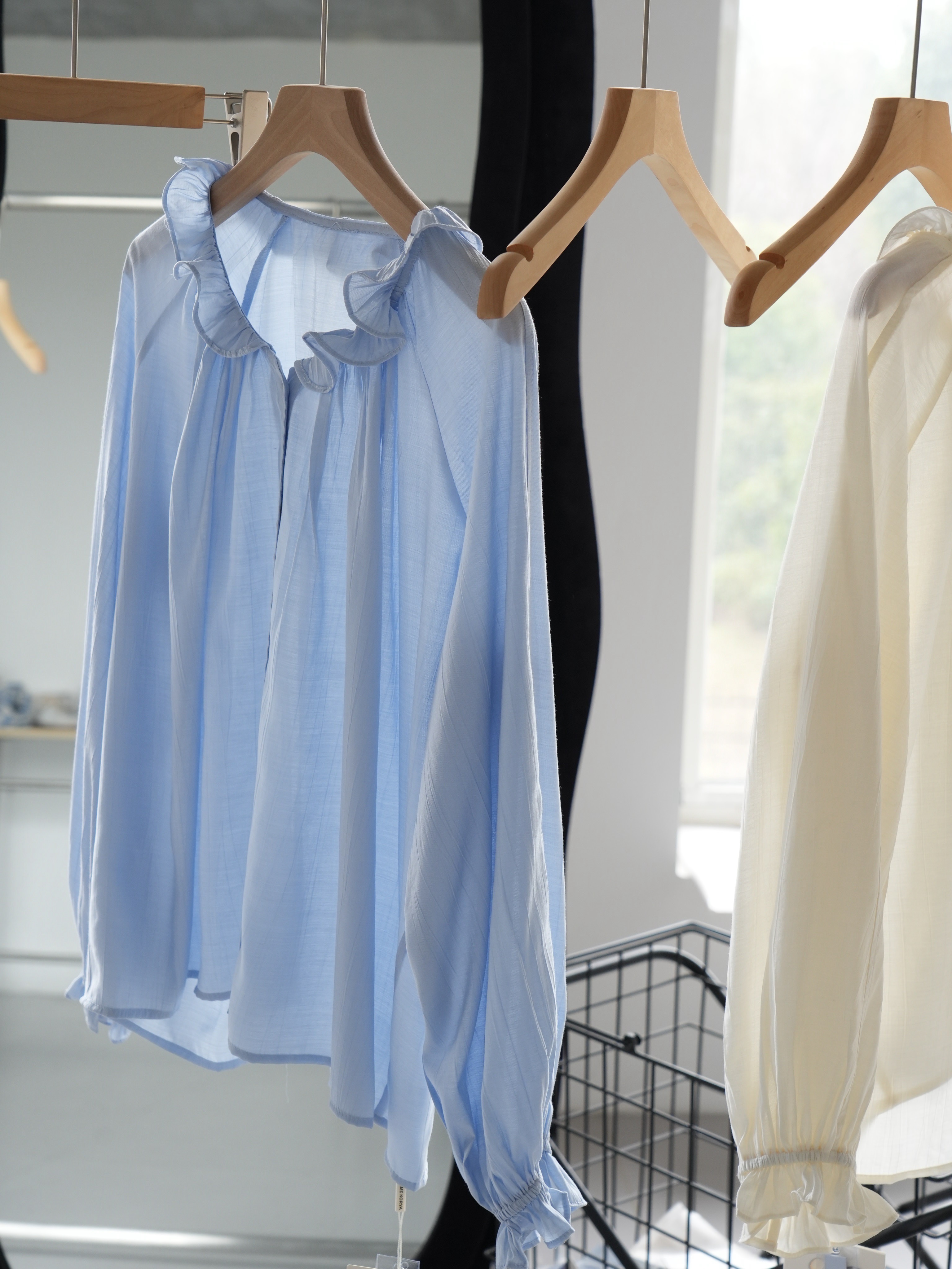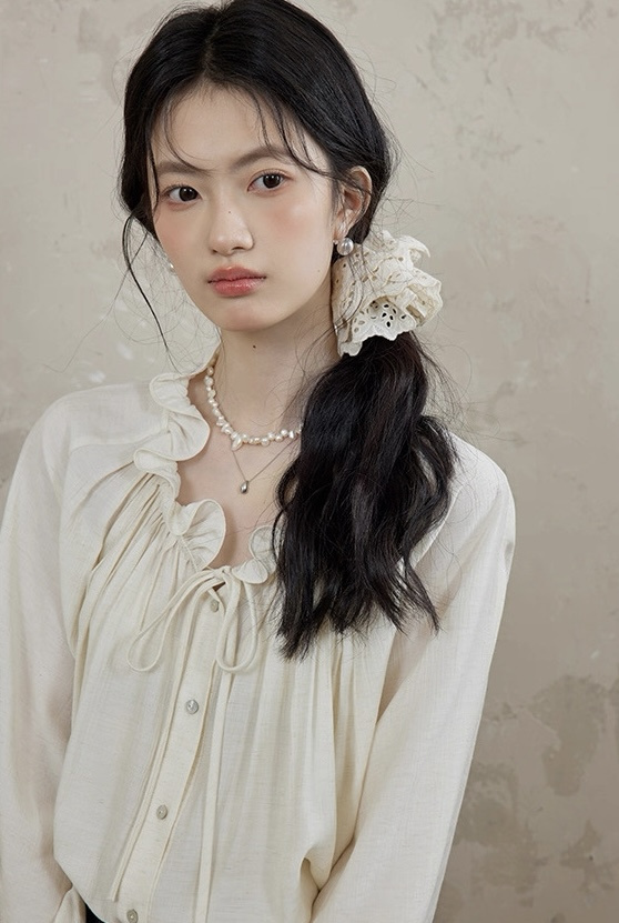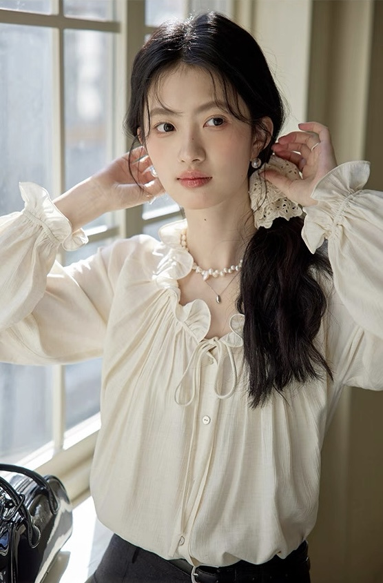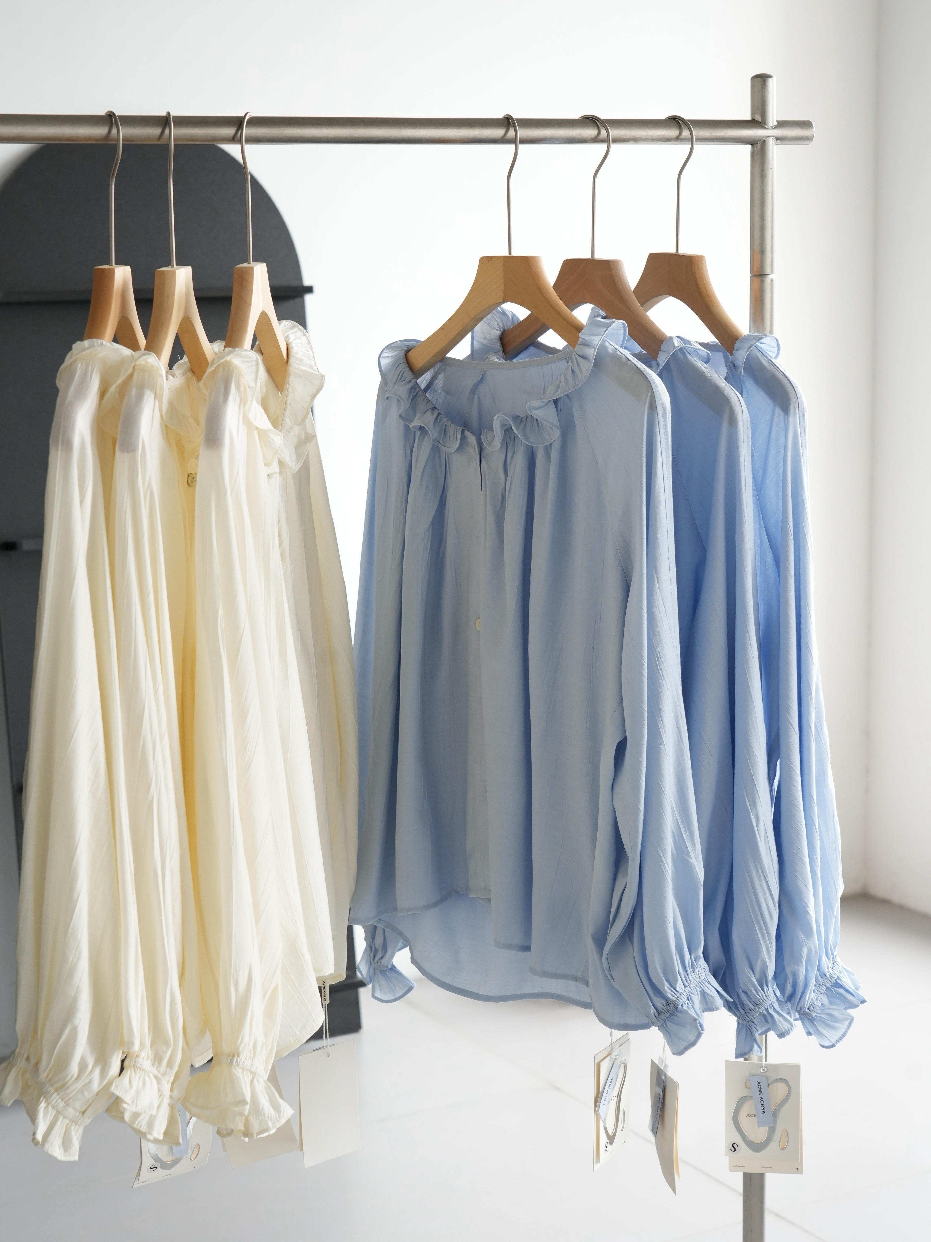 木耳边系带圆领好俏皮~花瓣领口➕泡泡袖的组合,更是法式韵味十足~妥妥的衬衫天花板!