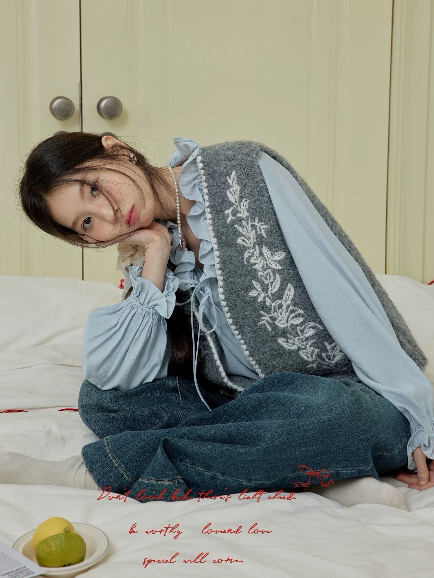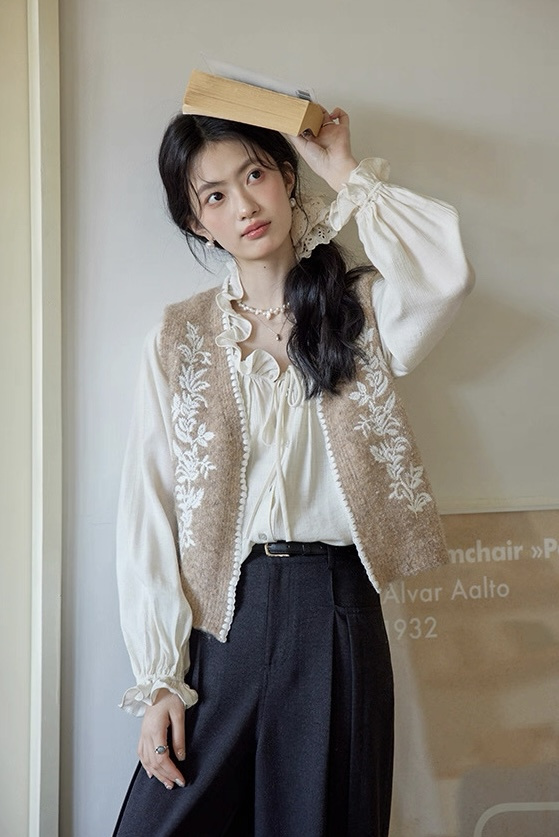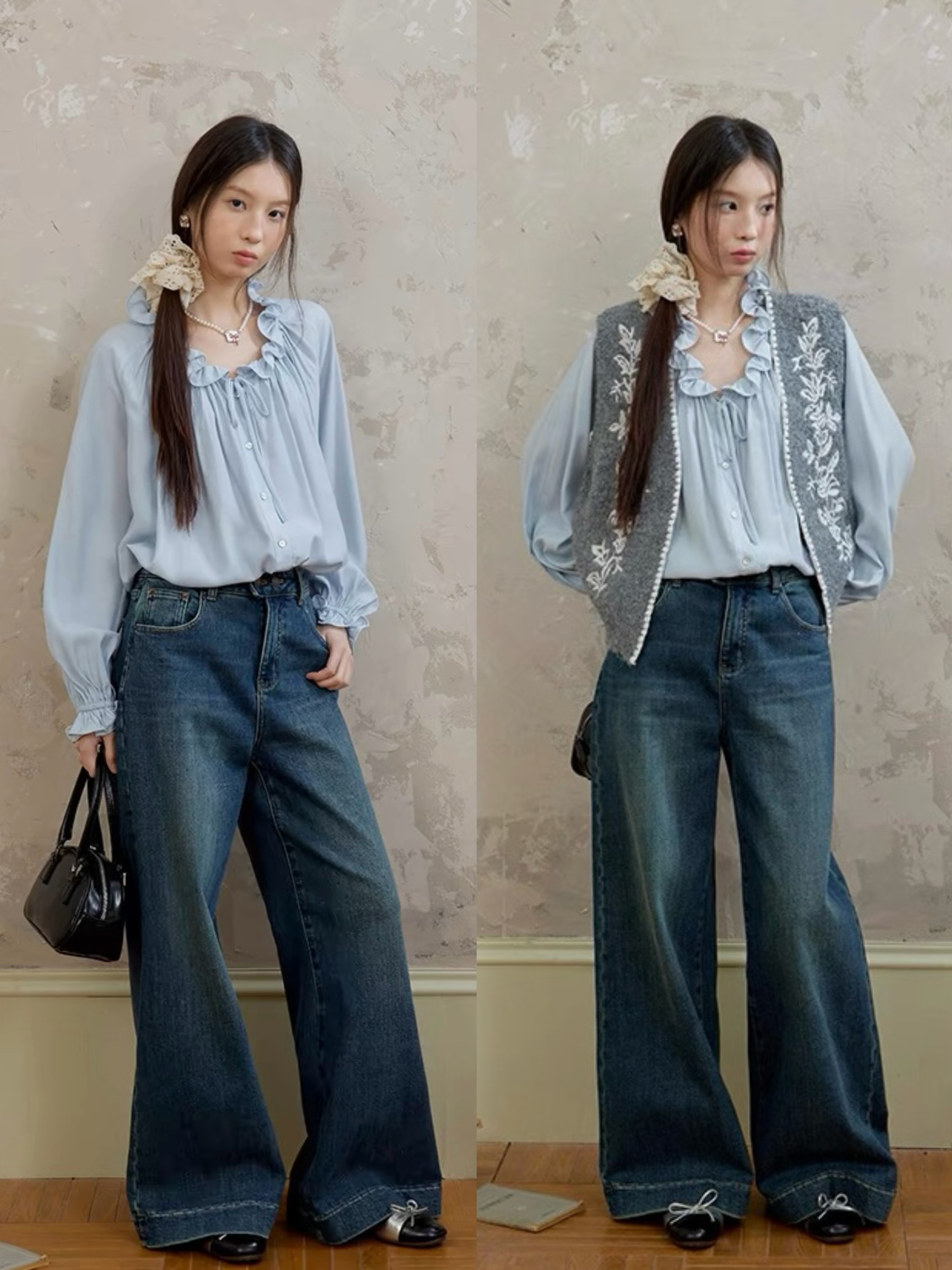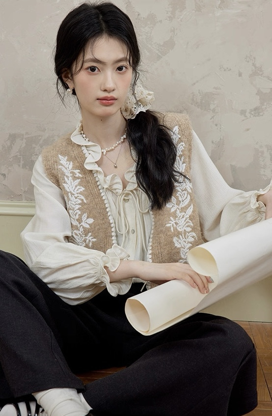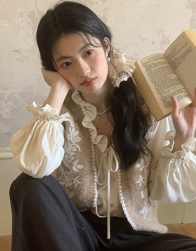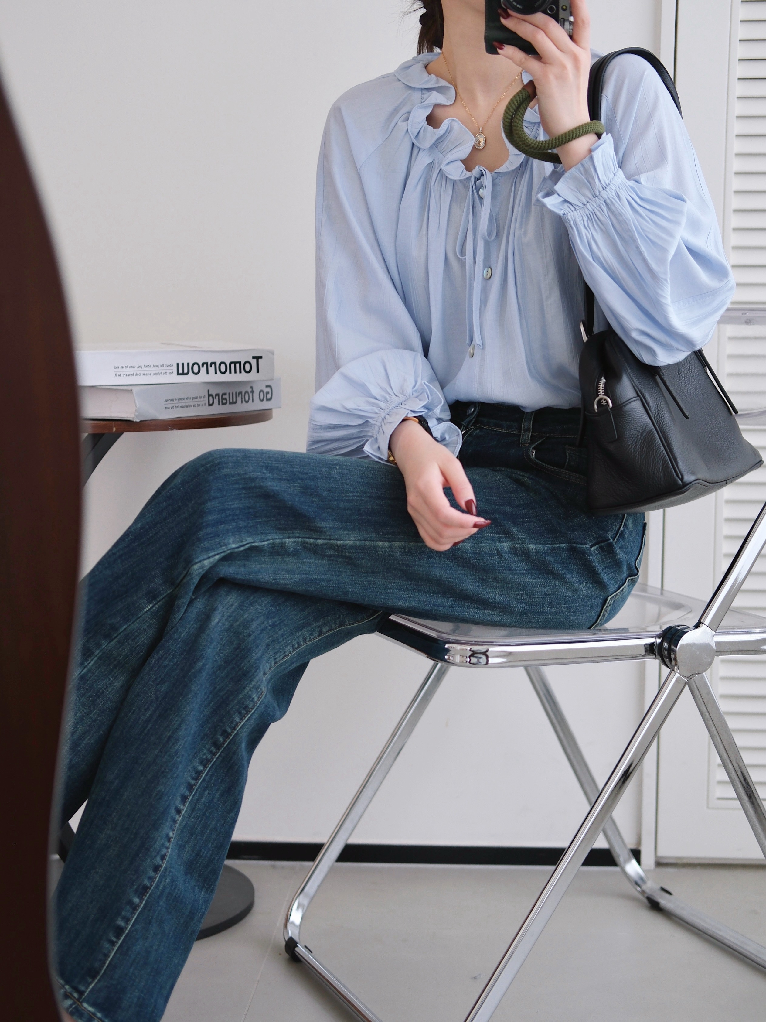 木耳边系带圆领好俏皮~花瓣领口➕泡泡袖的组合,更是法式韵味十足~妥妥的衬衫天花板!