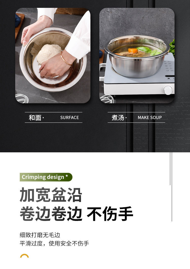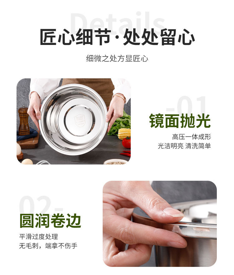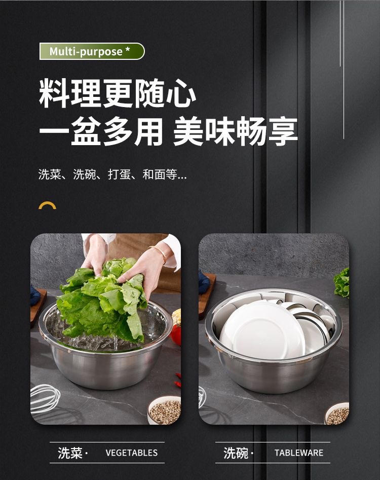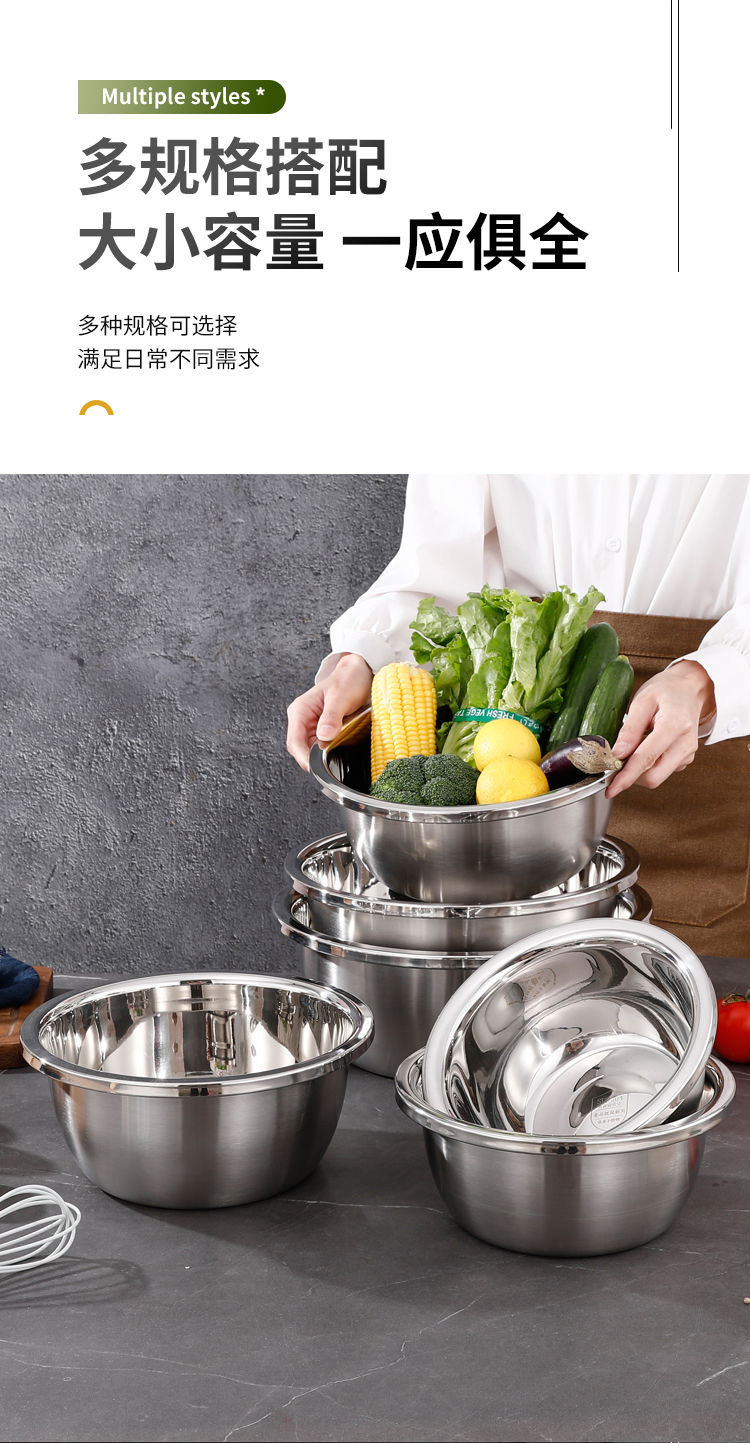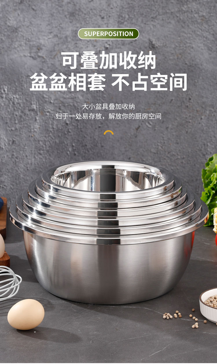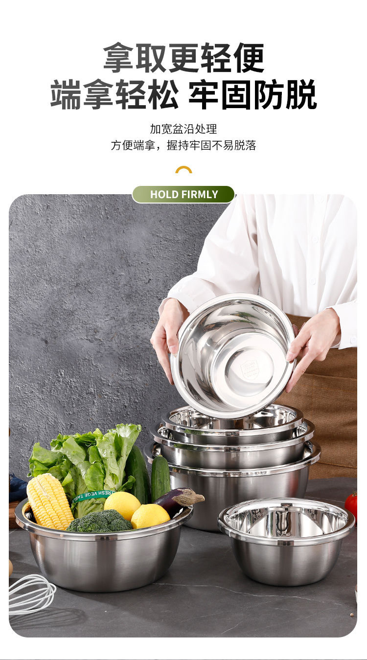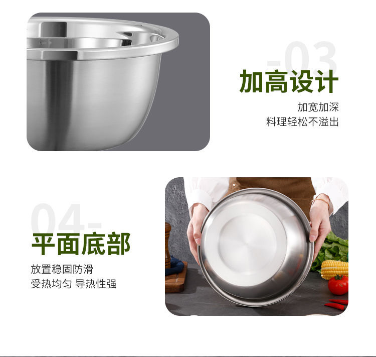 304不锈钢大盆 料理专用沙拉盆烘焙和面搅拌奶油打发盆打蛋盆大反边调料盆1个