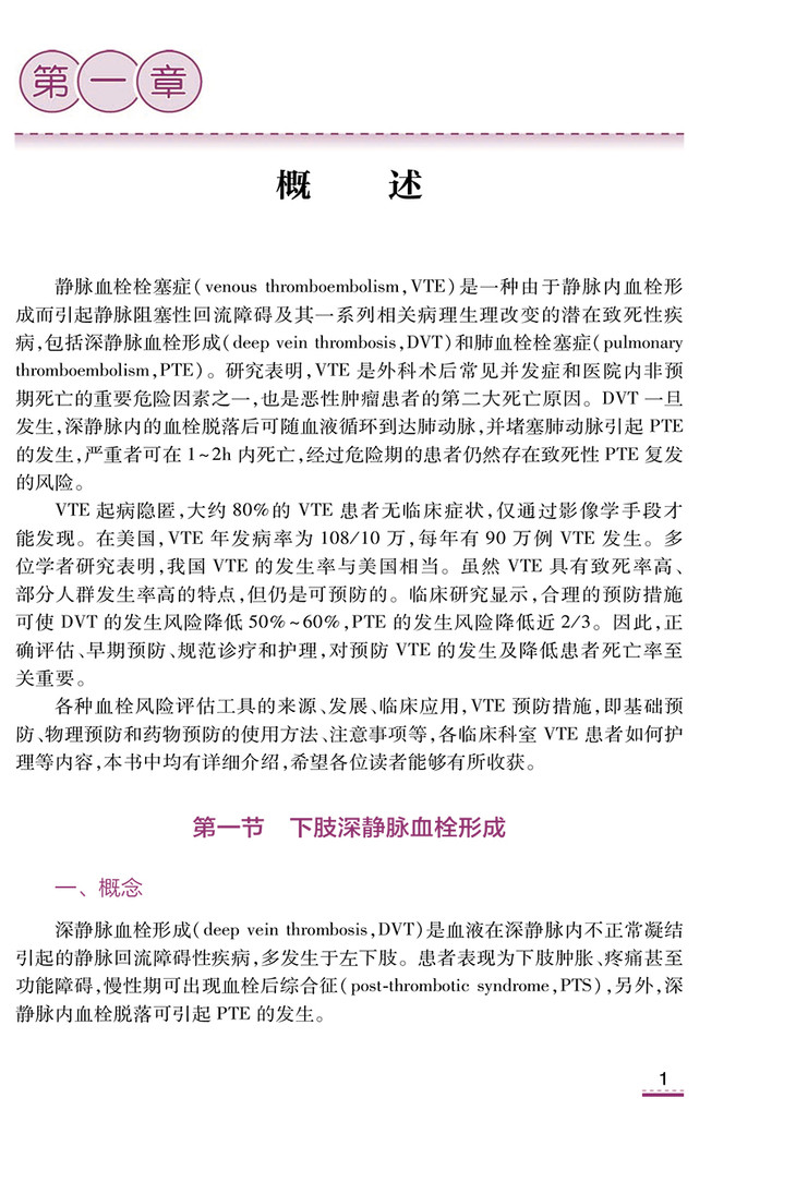 本专著拟分为十一章节,分别为:概述、下肢深静脉血栓形成、肺栓塞、VTE风险评估、VTE防治体系建设、各种物理和药物预防的方法、VTE的治疗与护理、各科室VTE预防的典型案例等。
