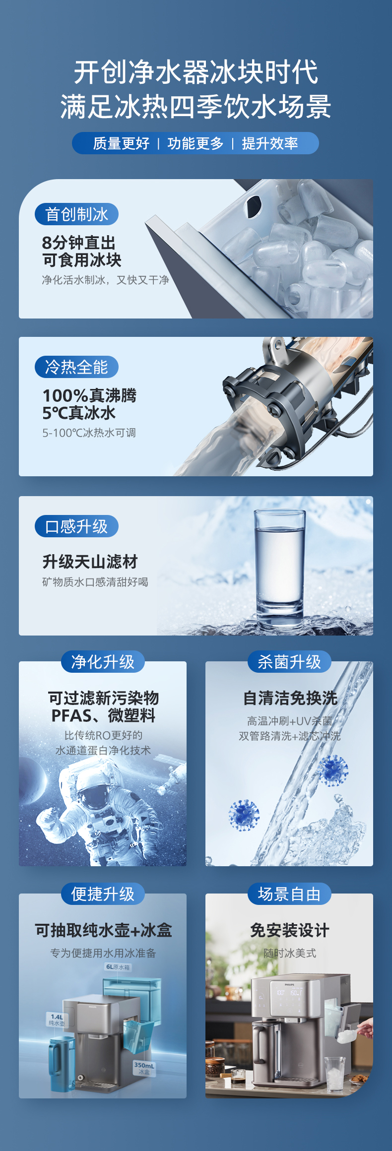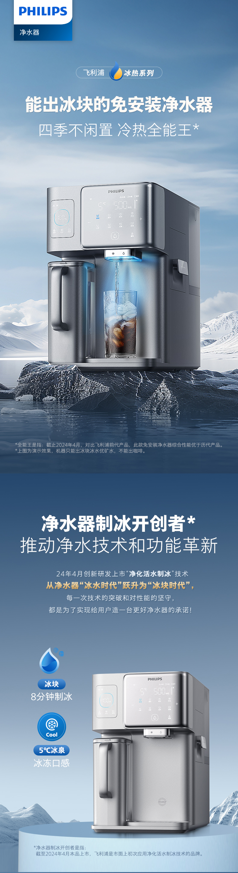 飞利浦(PHILIPS)冰块净水器台式即热饮水机家用矿物质直饮加热一体净饮机 制冰|冷水| 即热|矿化|净化一体机AD8600