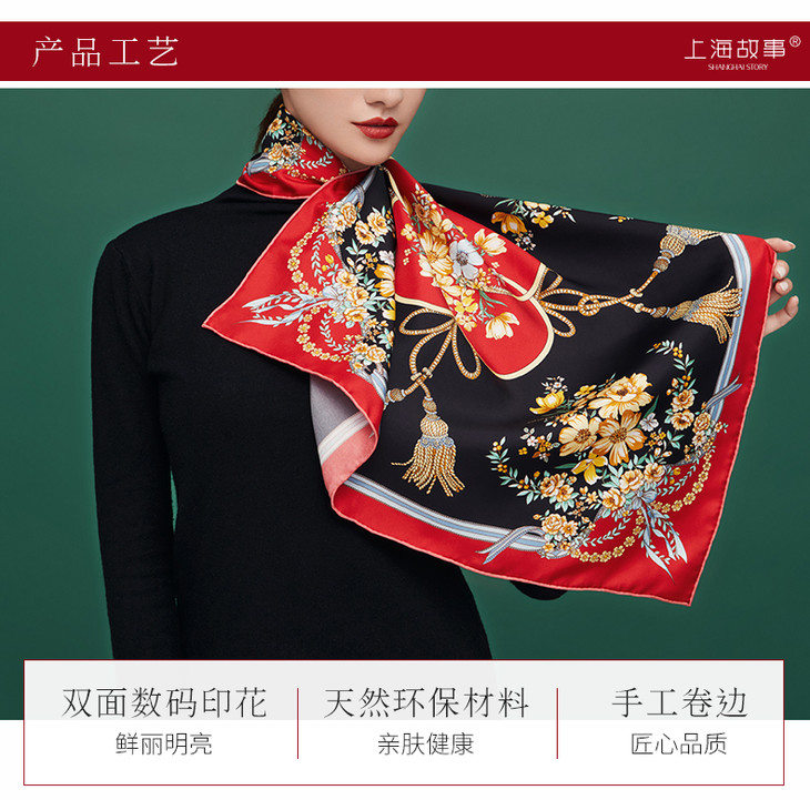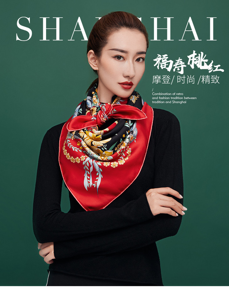 【宫里丝巾】福寿桃红 真丝方巾