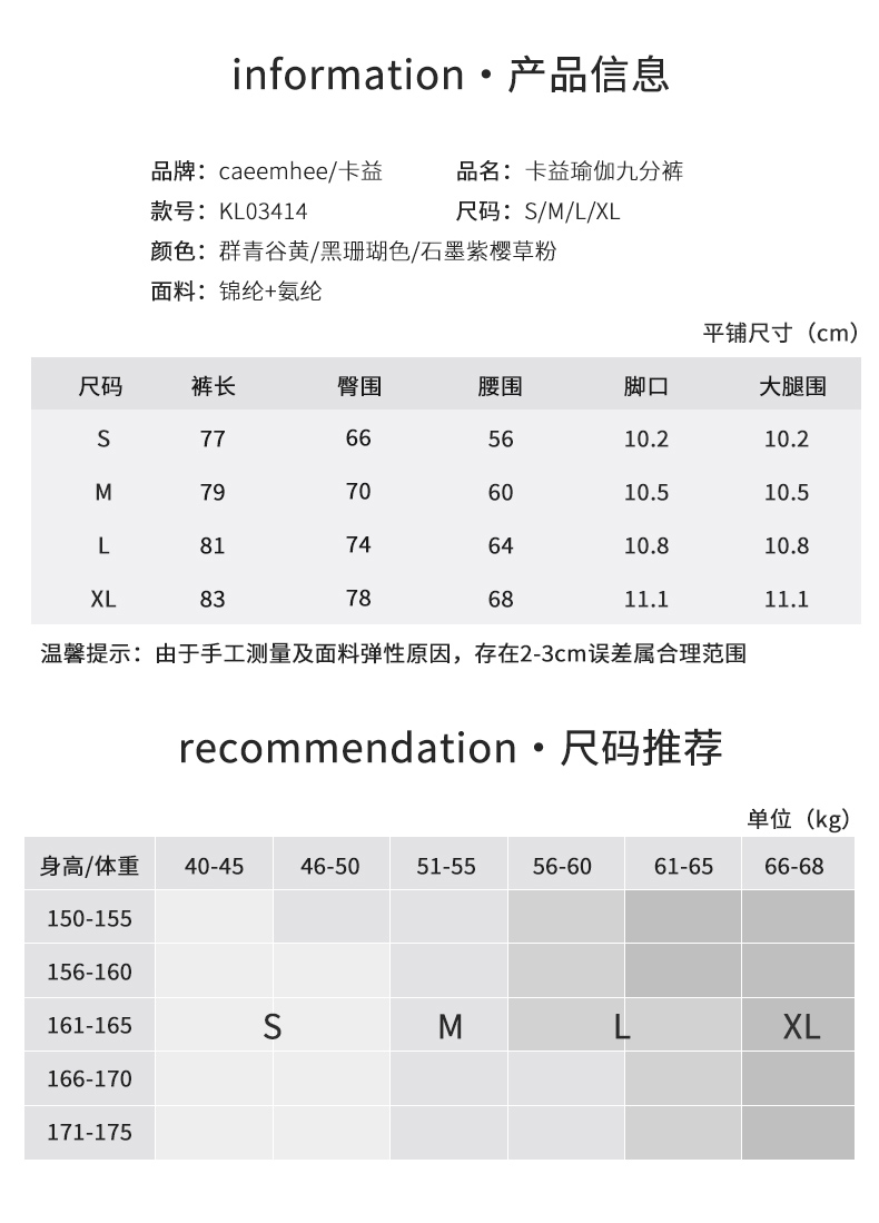 卡益高腰裸感九分裤KL03414女士瑜伽裤紧身健身裤