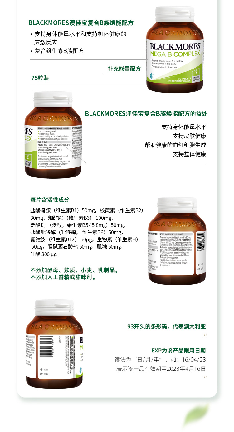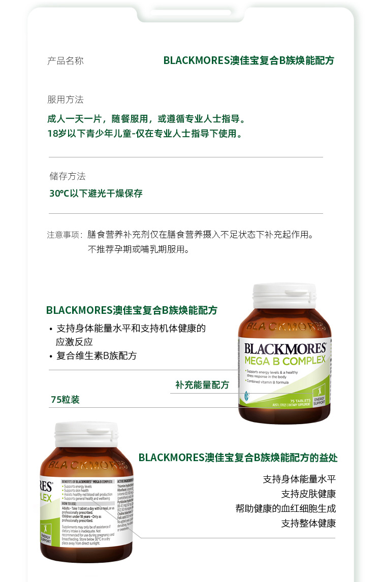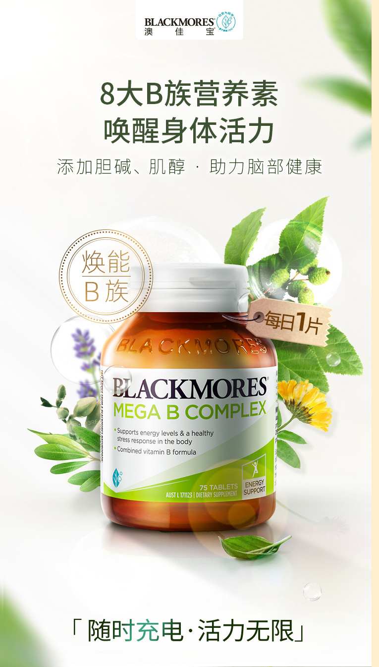 BLACKMORES澳佳宝高能复合维生素B族75粒 焕发能量