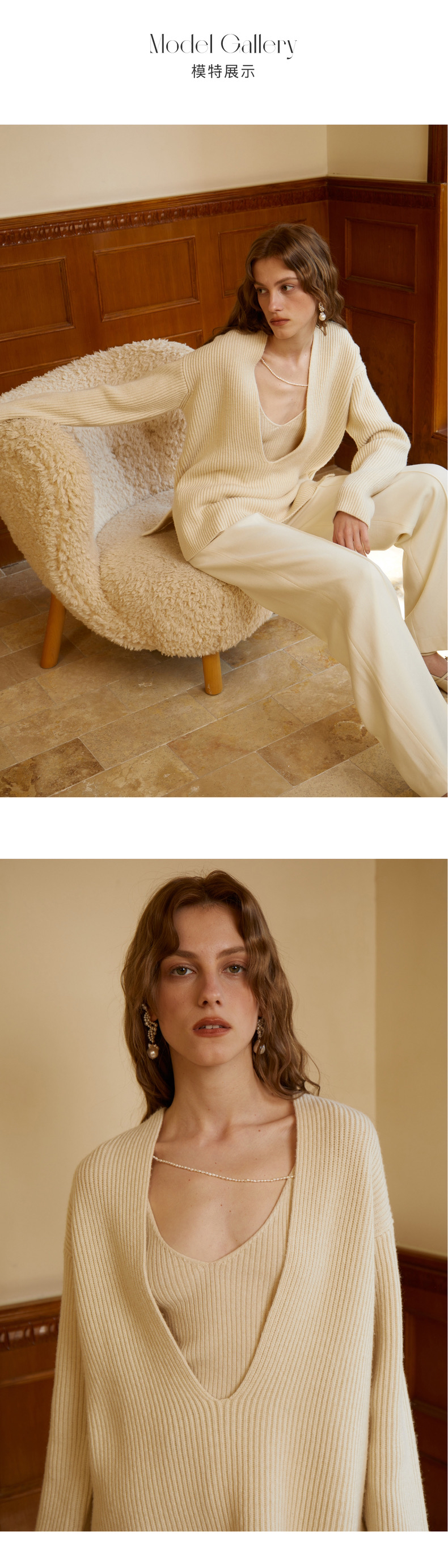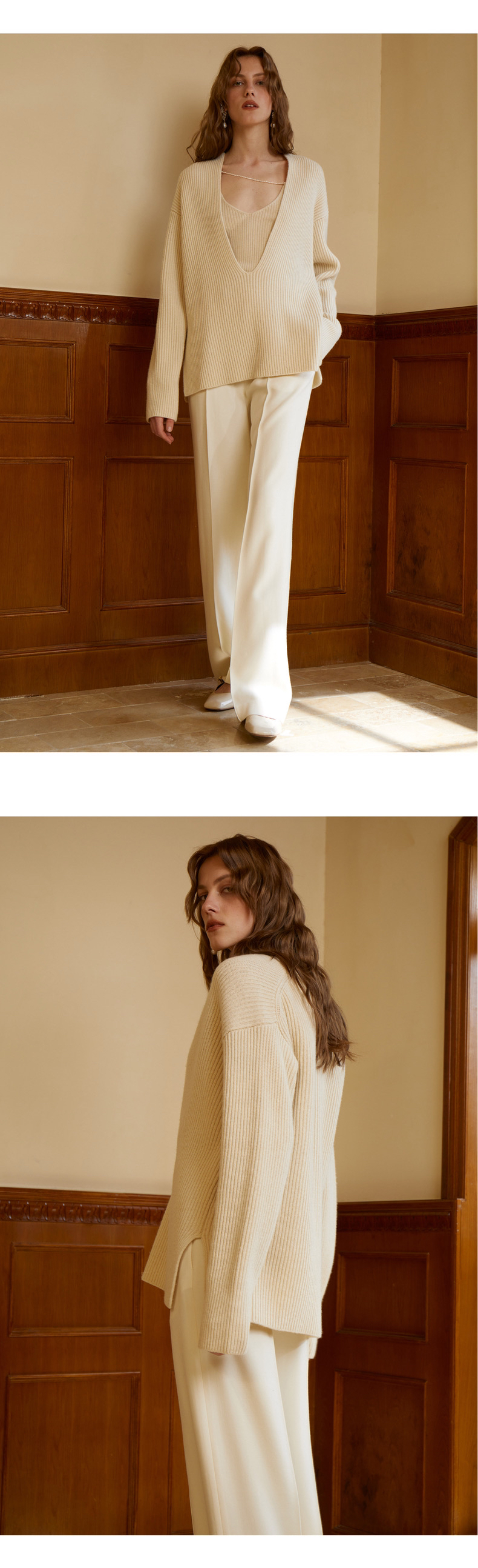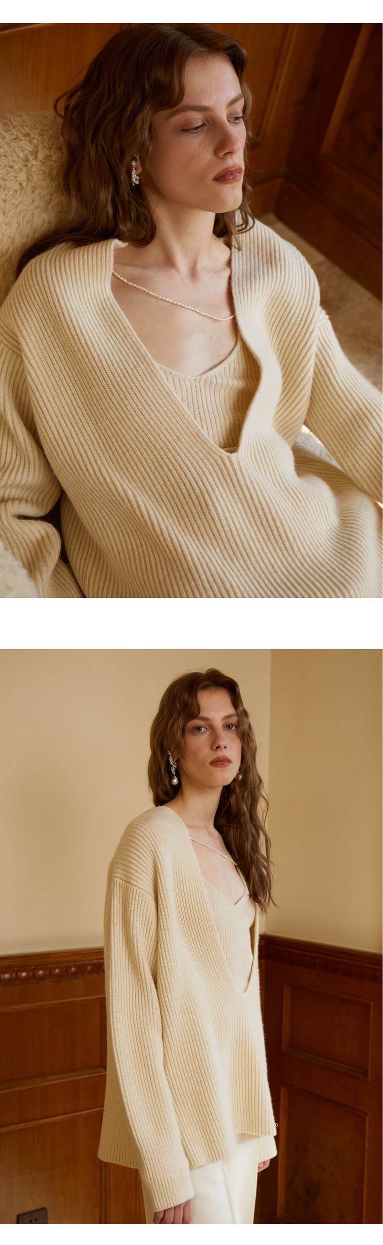 CINNAMON|T54910051 深V套头毛衫+吊带 套装 [ 玉色 ] 不拆卖