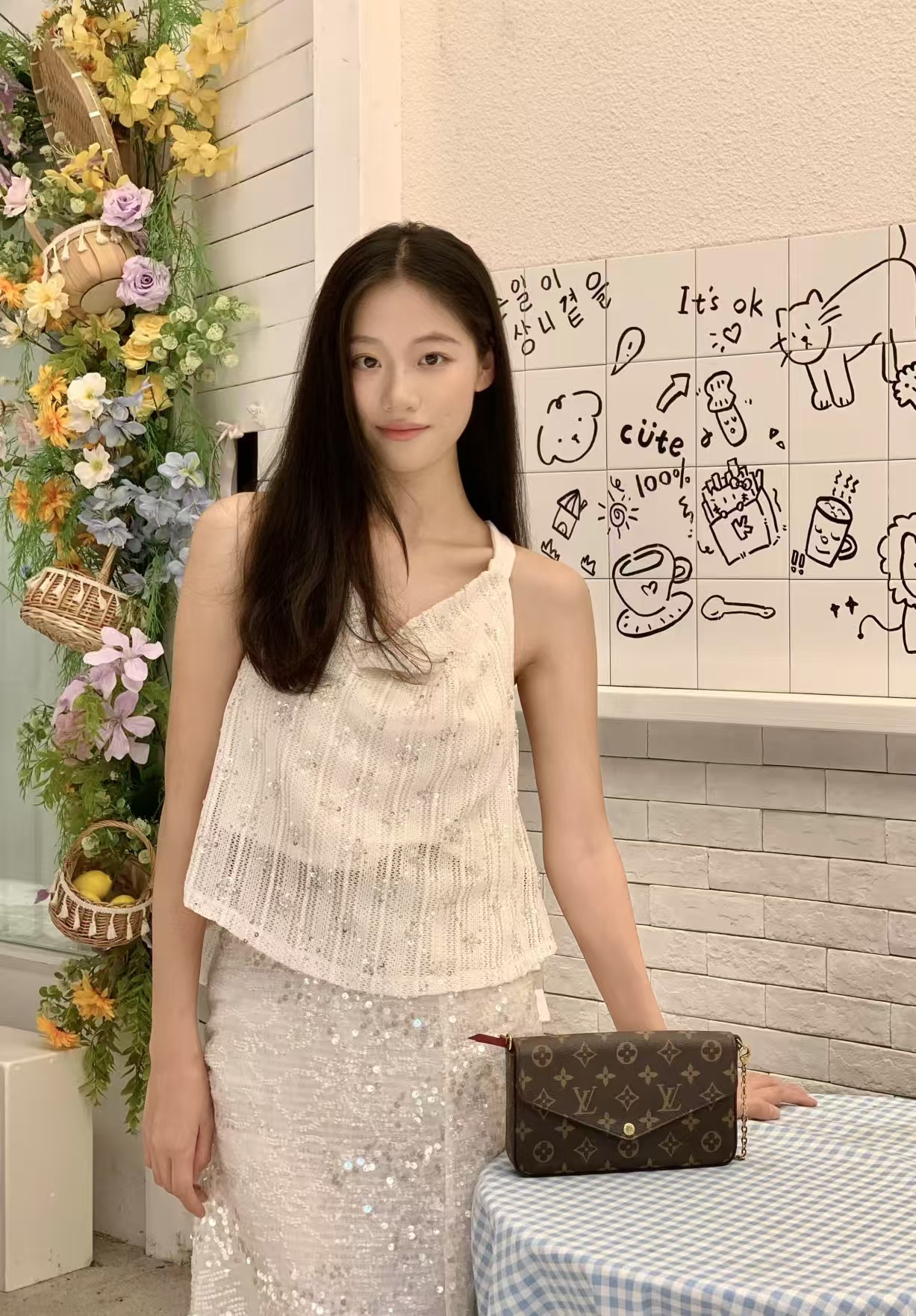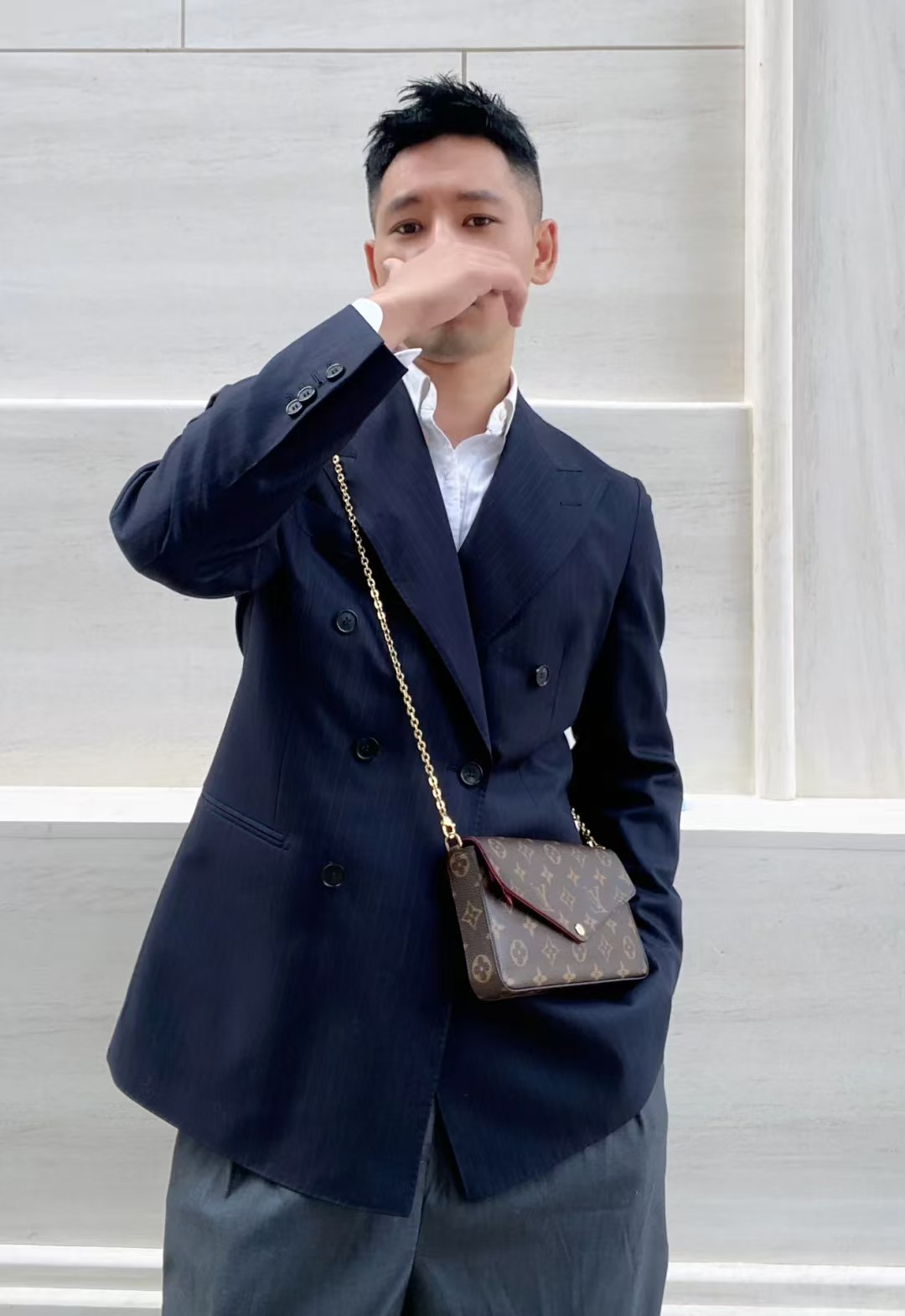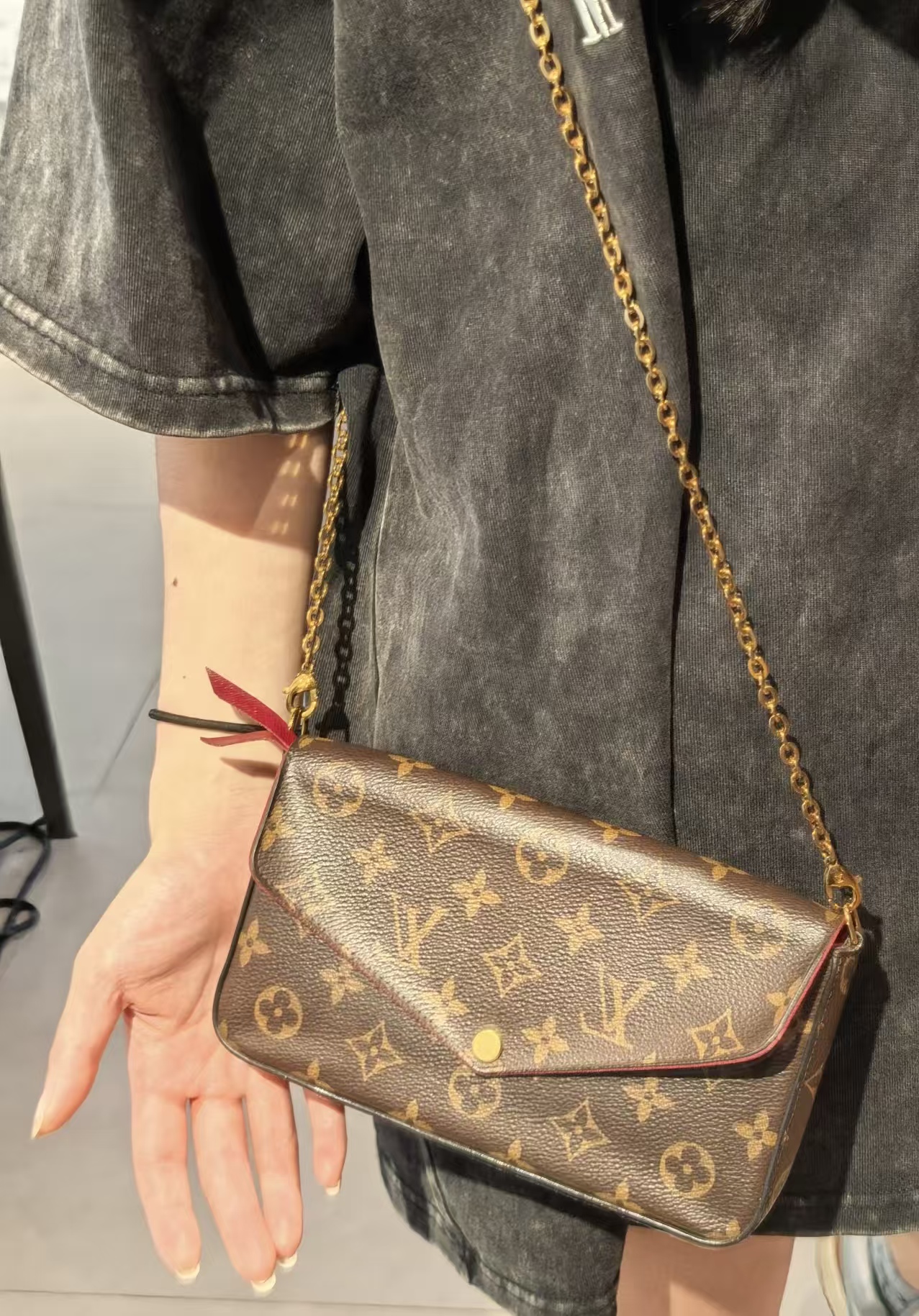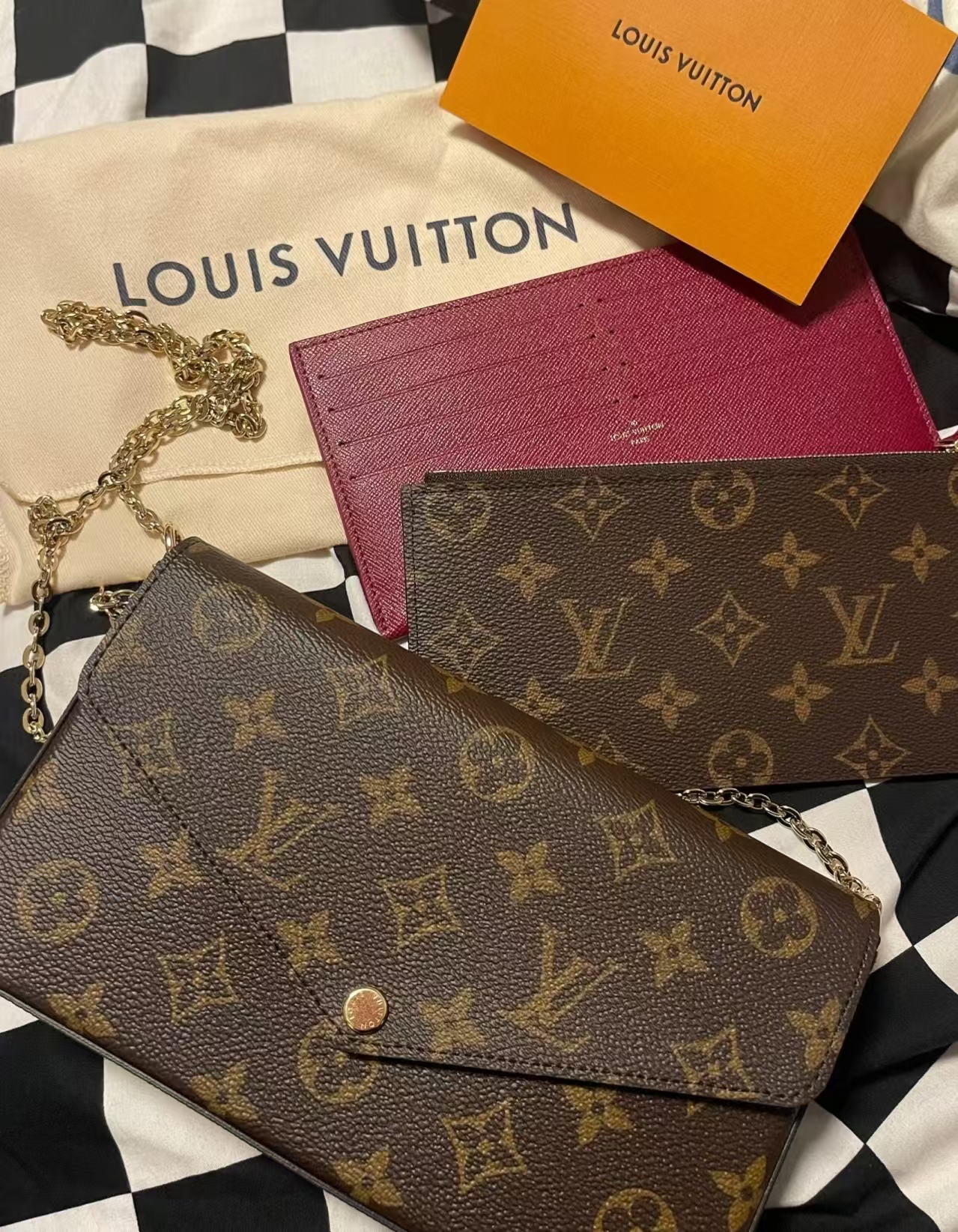 经典的老花皮质,耐磨耐刮,小巧精致的信封式包身设计。