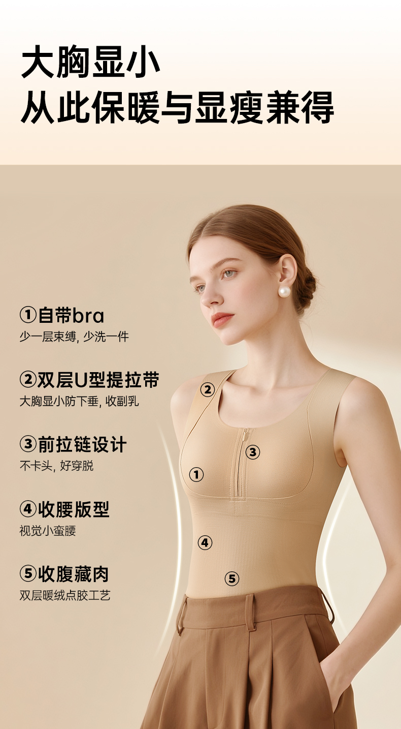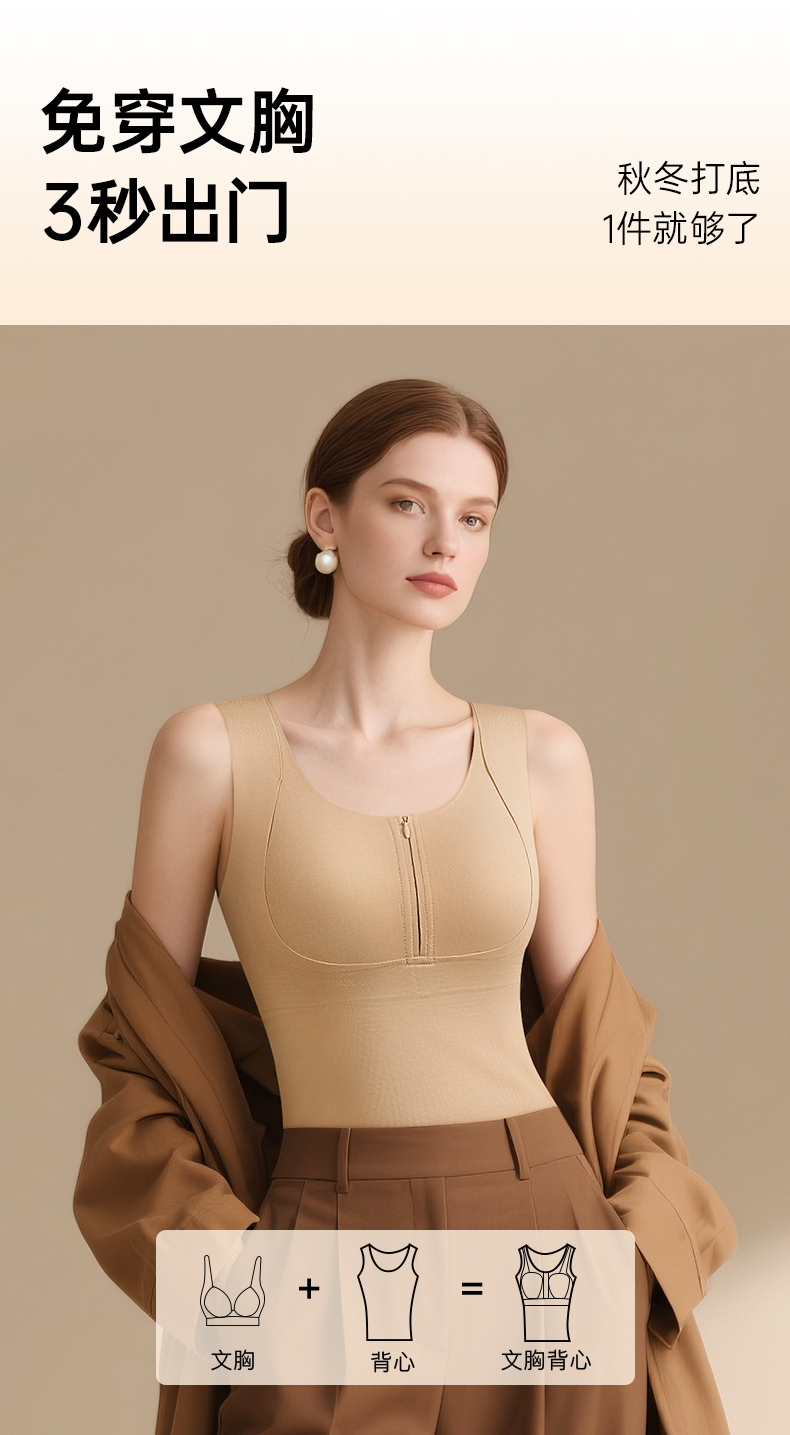 【超值2件装】【B-E杯】T1-❤【提拉显小6.0】【三合一保暖背心 】润微提拉任意提+含氨基酸护肤 +一拉美体【女神节限时补贴,可叠店铺满减券 】