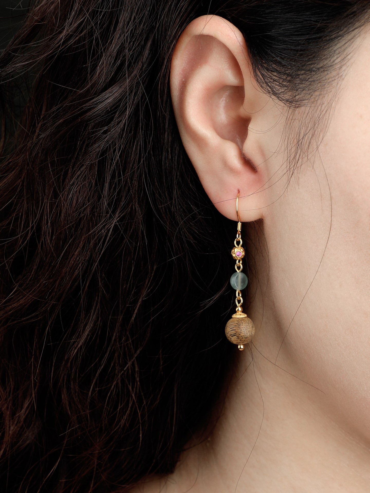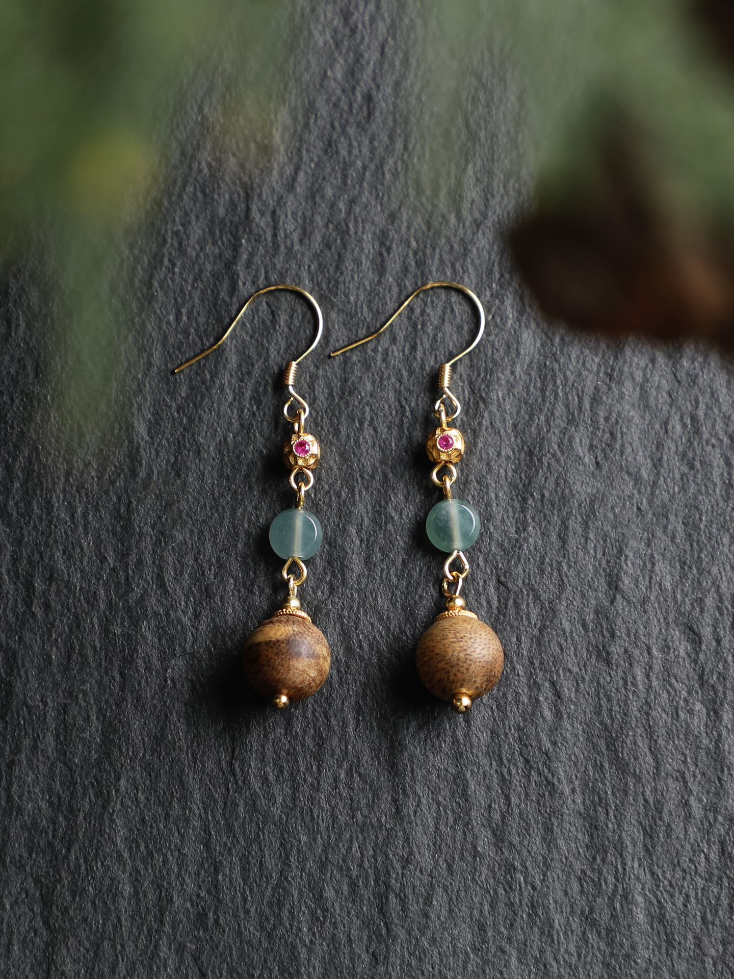 直径0.9厘米奇楠翡翠耳环天然沉香创意首饰