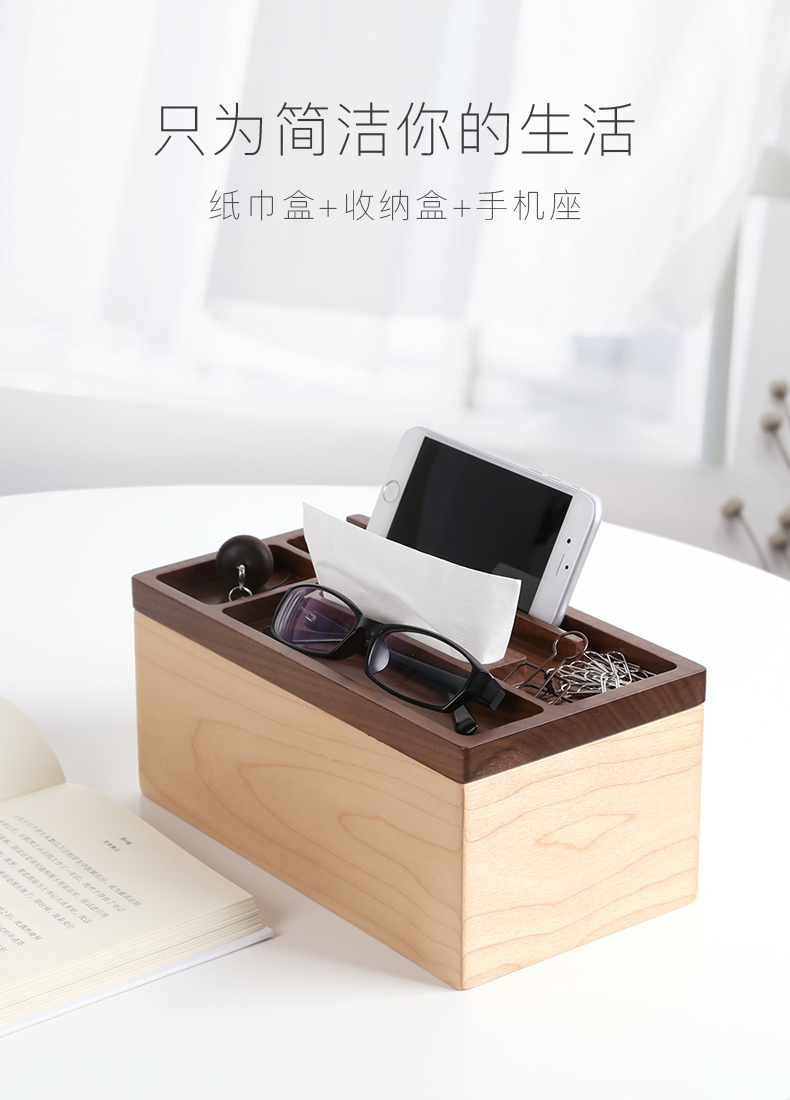 初心| 创意家居木制多功能长方形纸巾盒