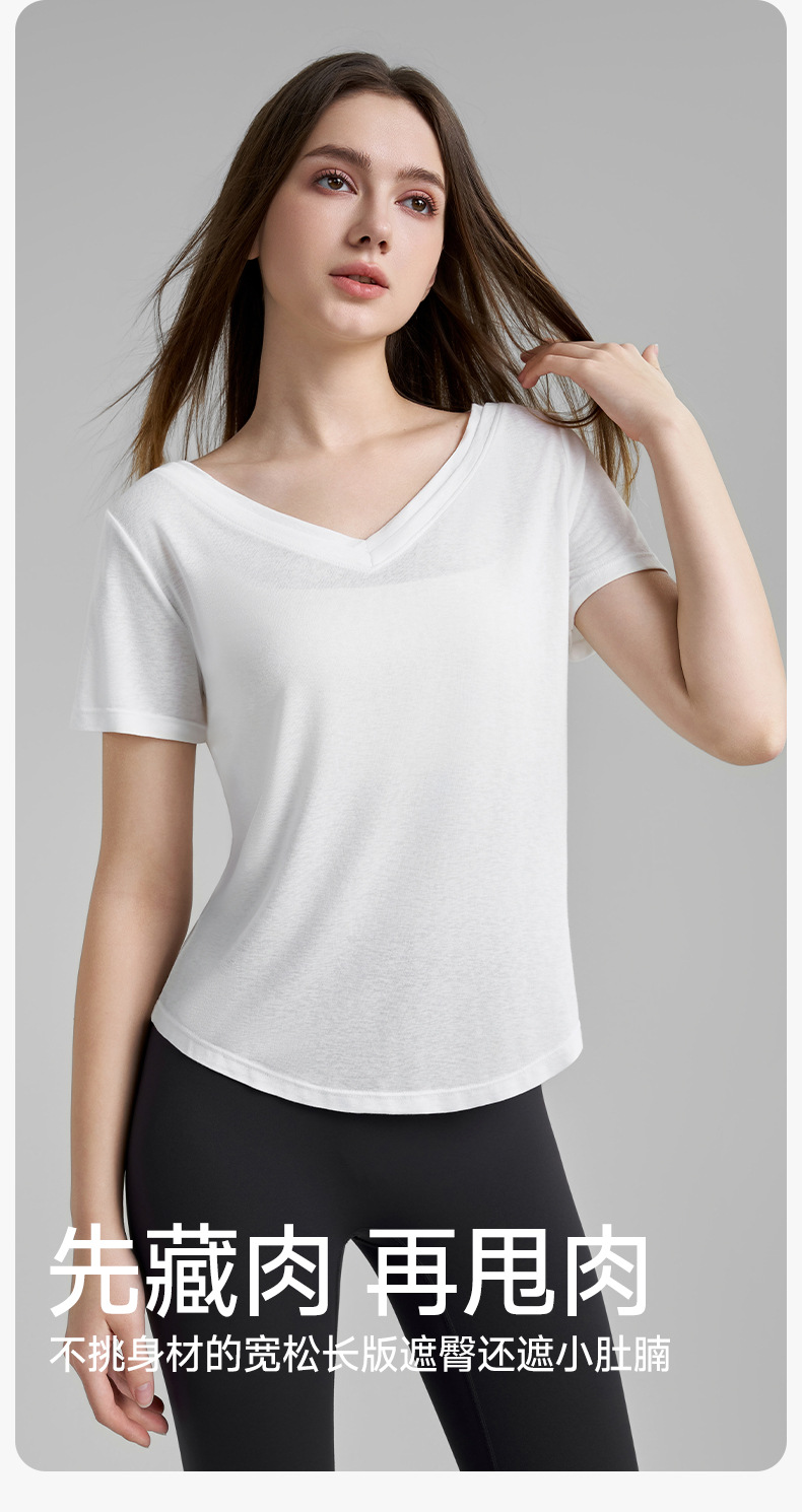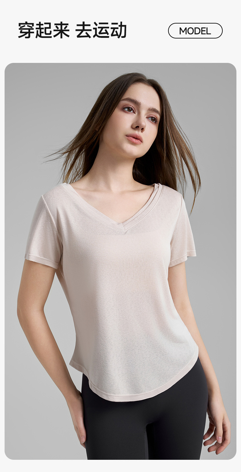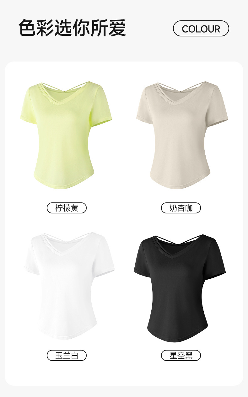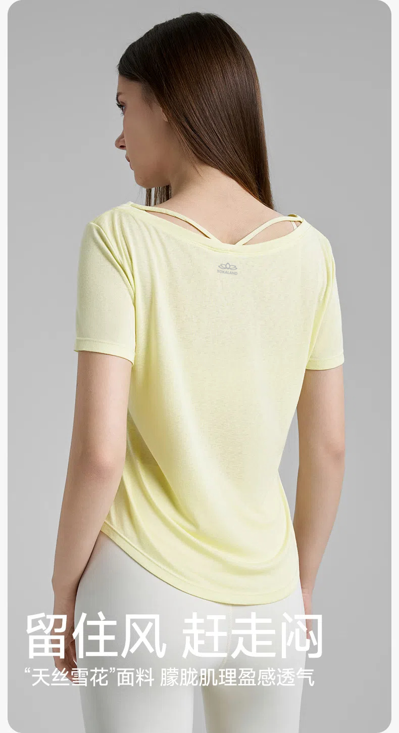 yokaland优卡莲薄款V领运动t恤ATW008春夏裸感健身短袖宽松透气普拉提瑜伽服(无胸垫)