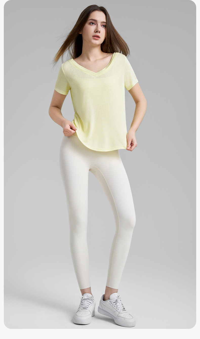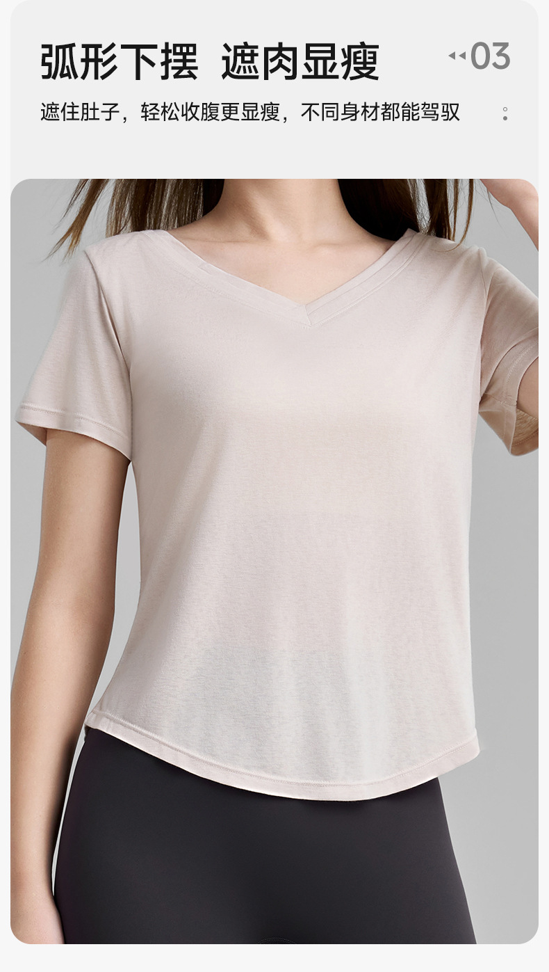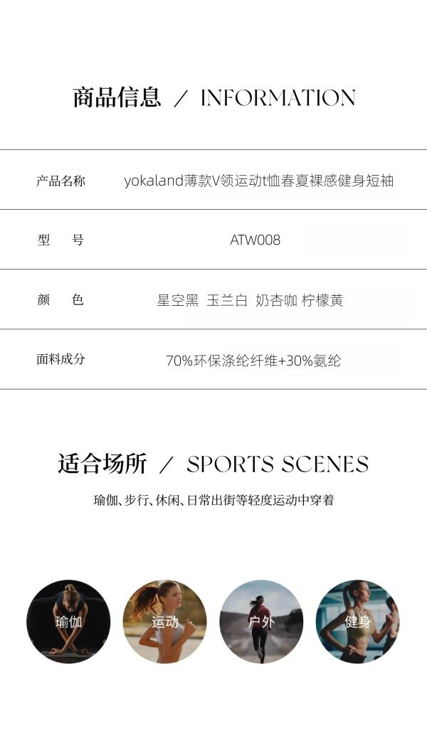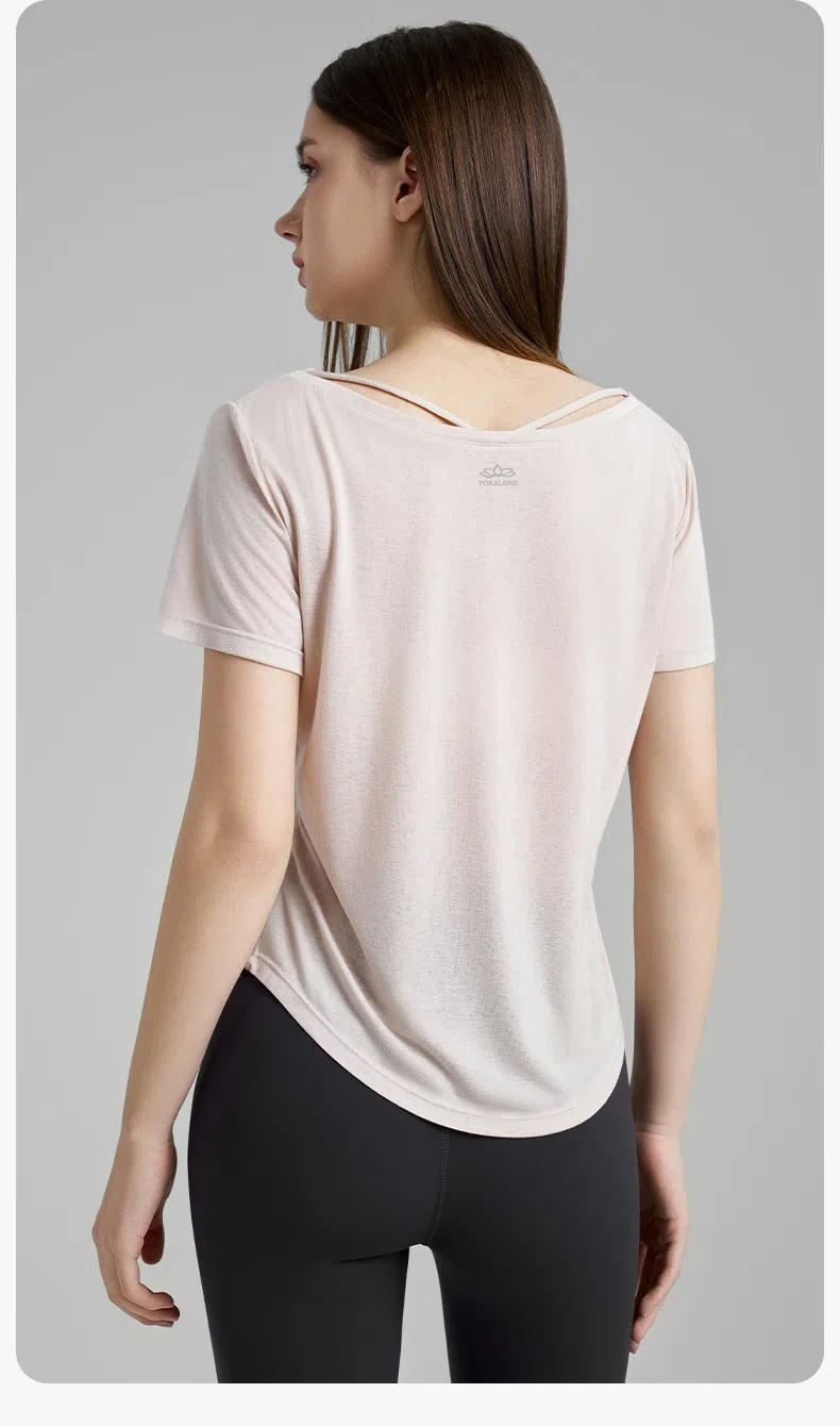 yokaland优卡莲薄款V领运动t恤ATW008春夏裸感健身短袖宽松透气普拉提瑜伽服(无胸垫)