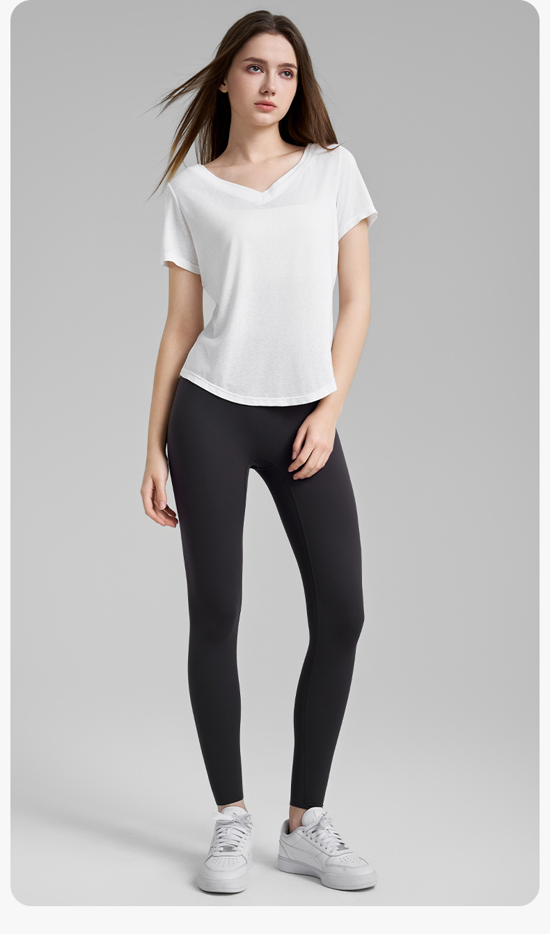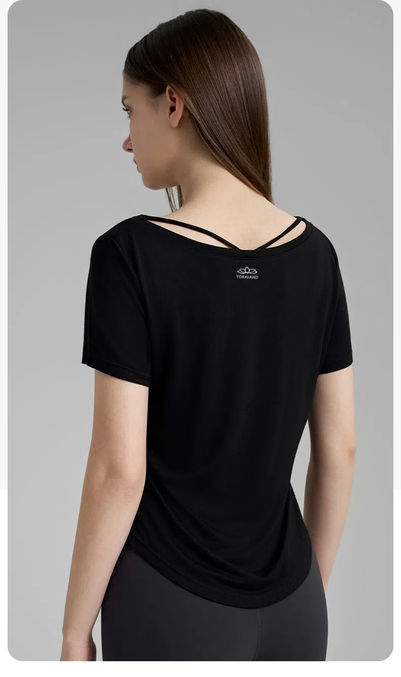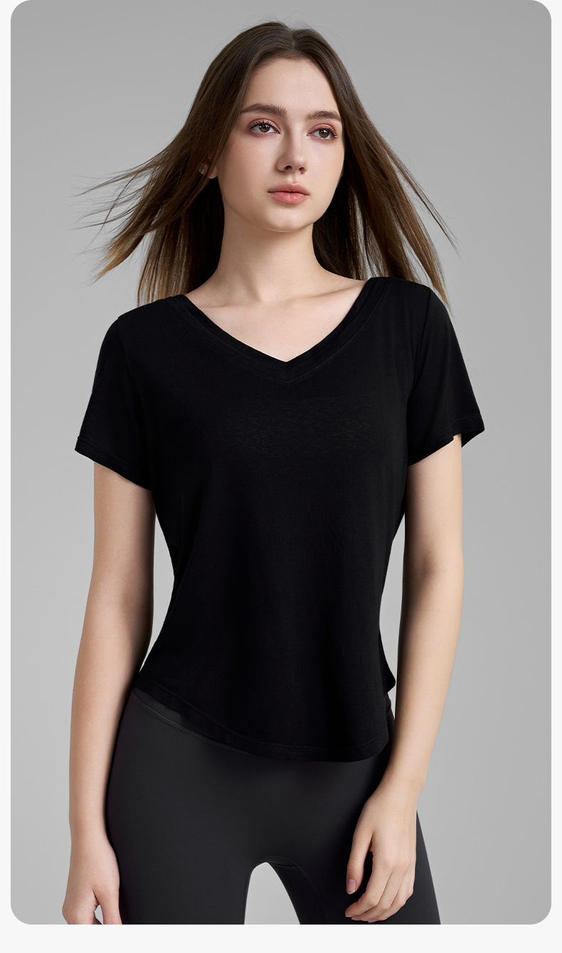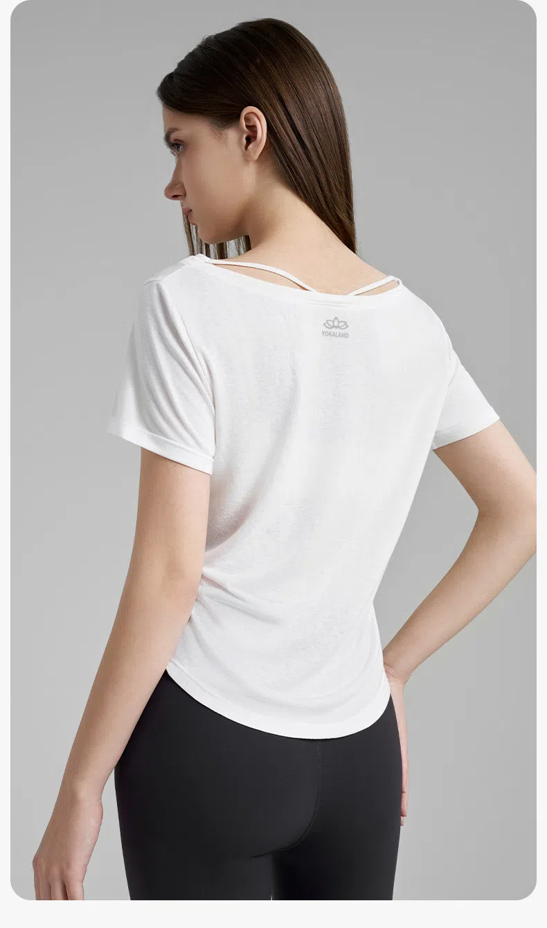 yokaland优卡莲薄款V领运动t恤ATW008春夏裸感健身短袖宽松透气普拉提瑜伽服(无胸垫)
