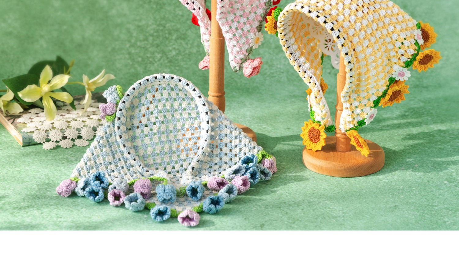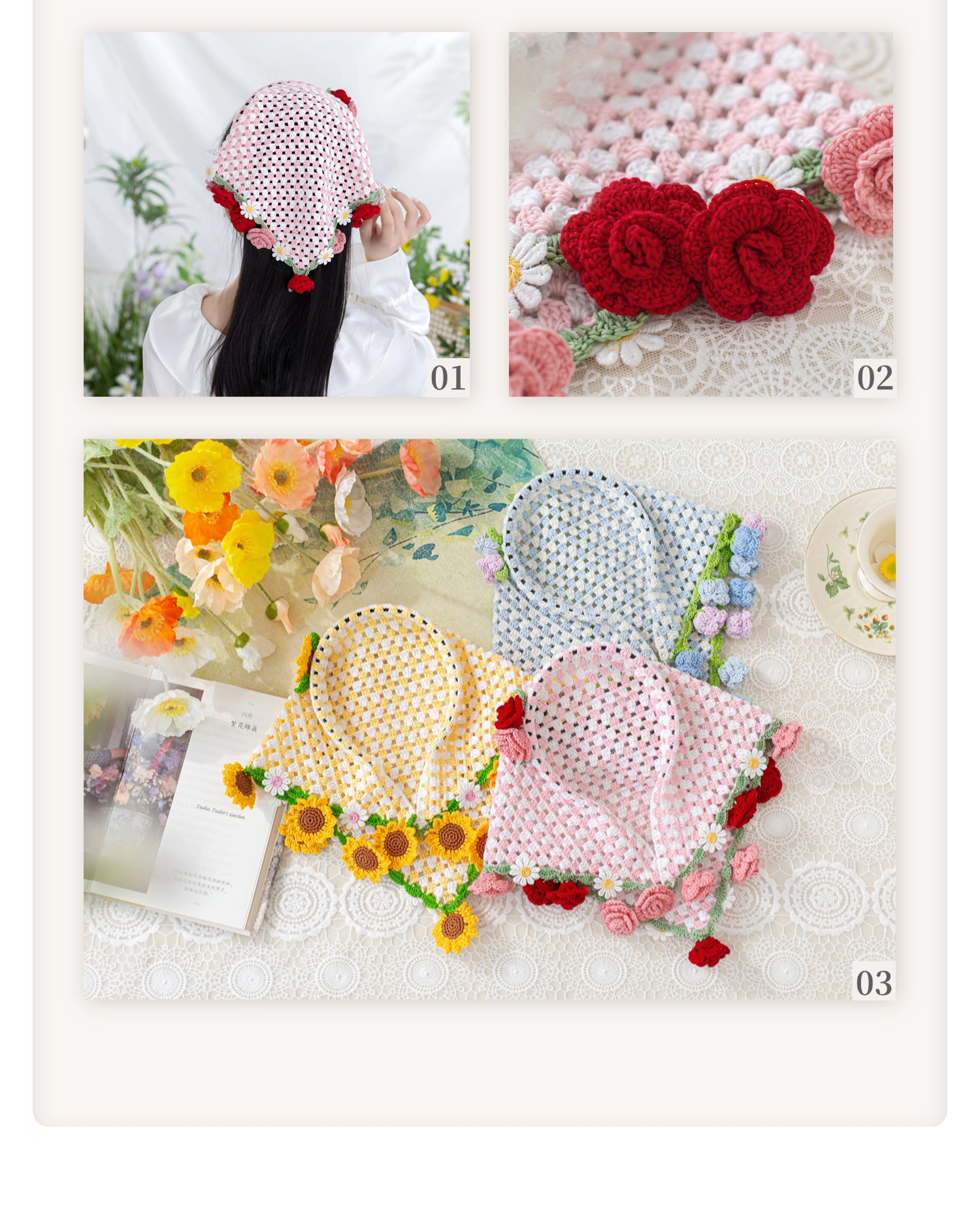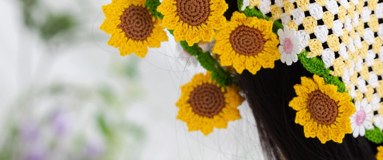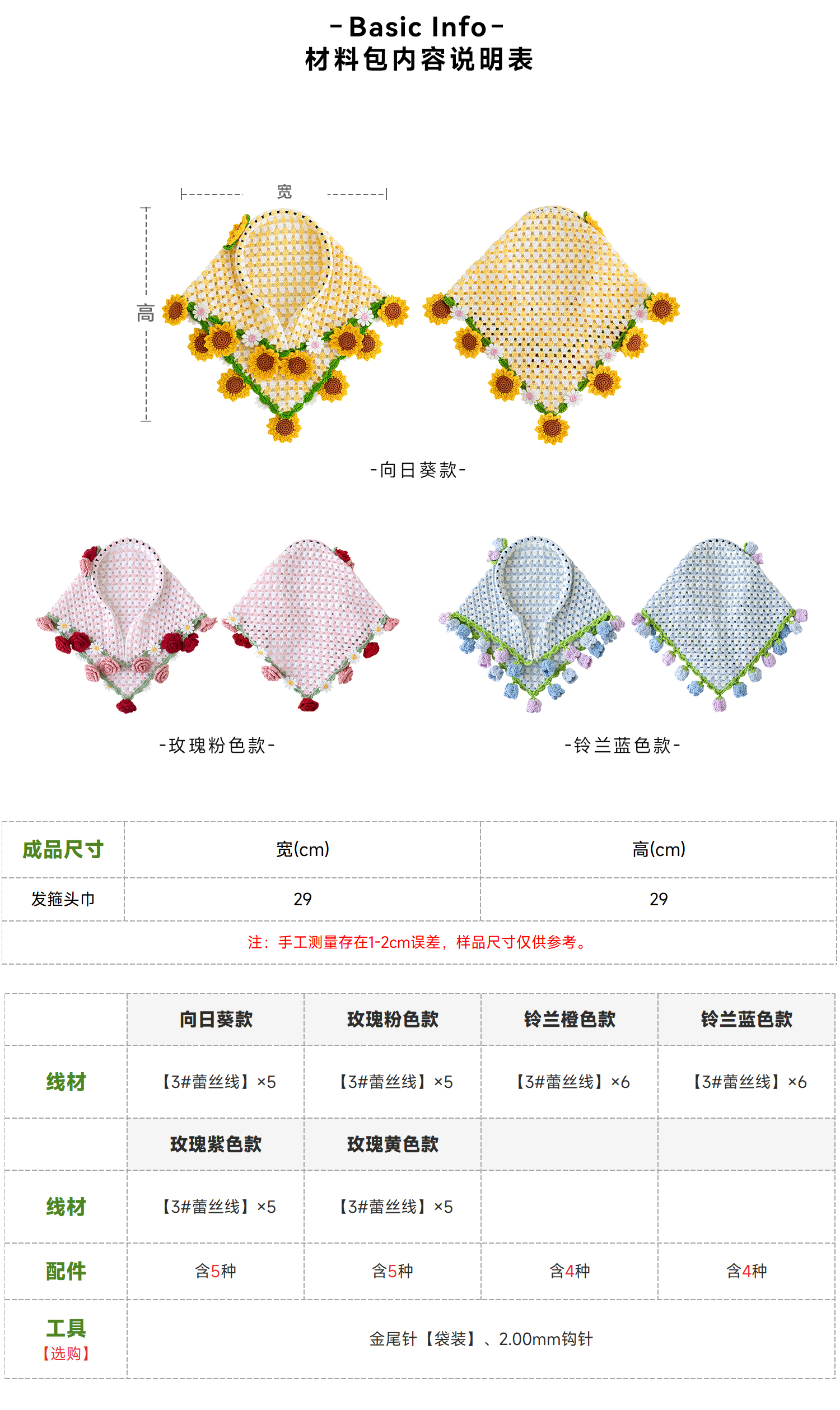 苏苏姐家花朵三角巾发箍手工diy编织钩针蕾丝线毛线团发饰材料包