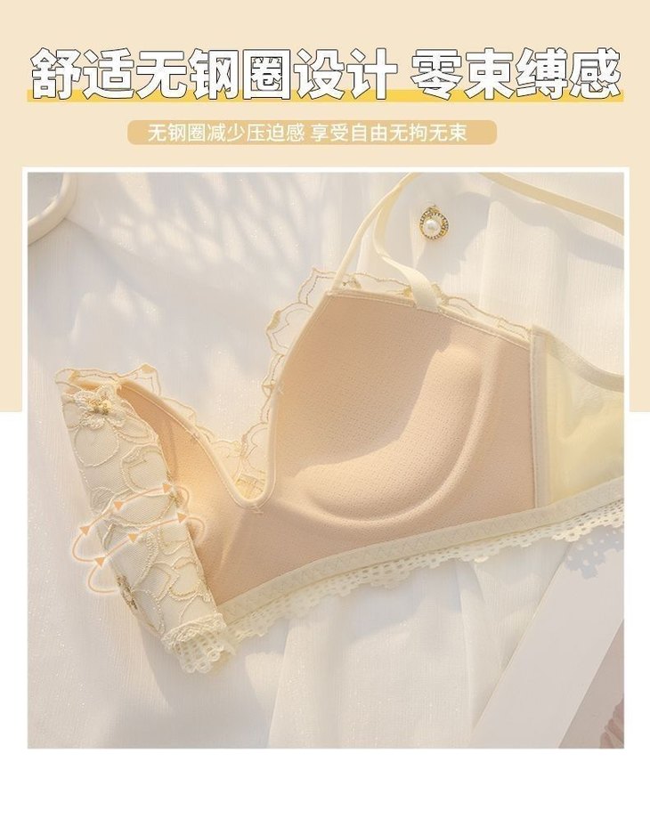 【超美❗️纯欲聚拢文胸套装】聚拢显大,柔软无压敲贴胸,小胸也能穿出波波胸,蕾丝无钢圈女法式性感上托防下垂收副乳小胸本命年马年新年内衣内裤
