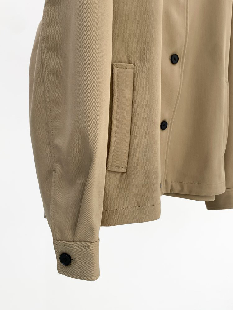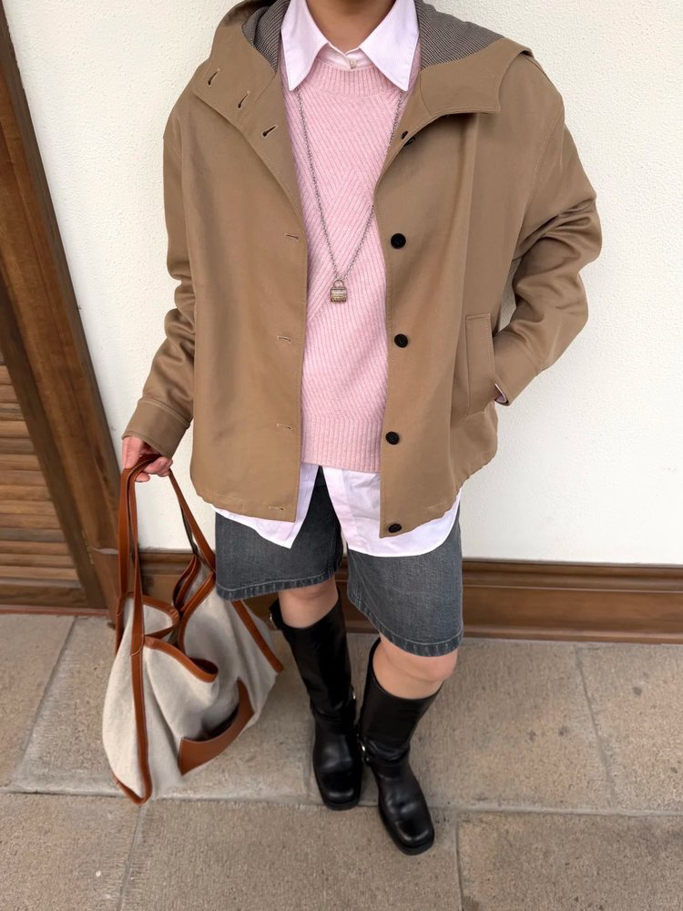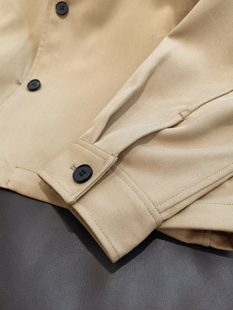 全棉双面布,外层的卡其素色,干净、克制、沉稳,百搭底色,内里藏着一整幅千鸟格,经典、跳跃、带一点复古的俏皮。随意卷起袖口,那一抹若隐若现的格纹,成就整身造型的“隐藏彩蛋”。