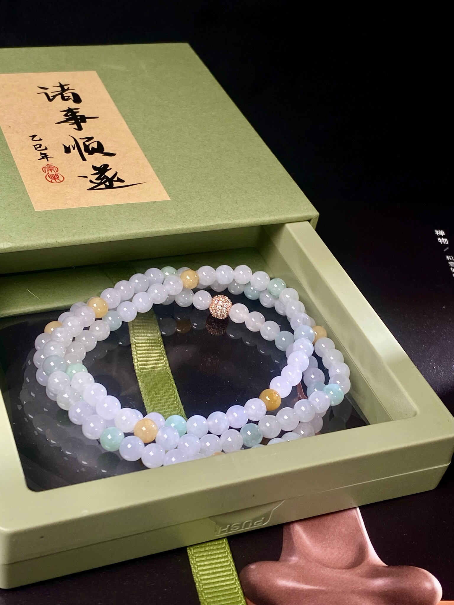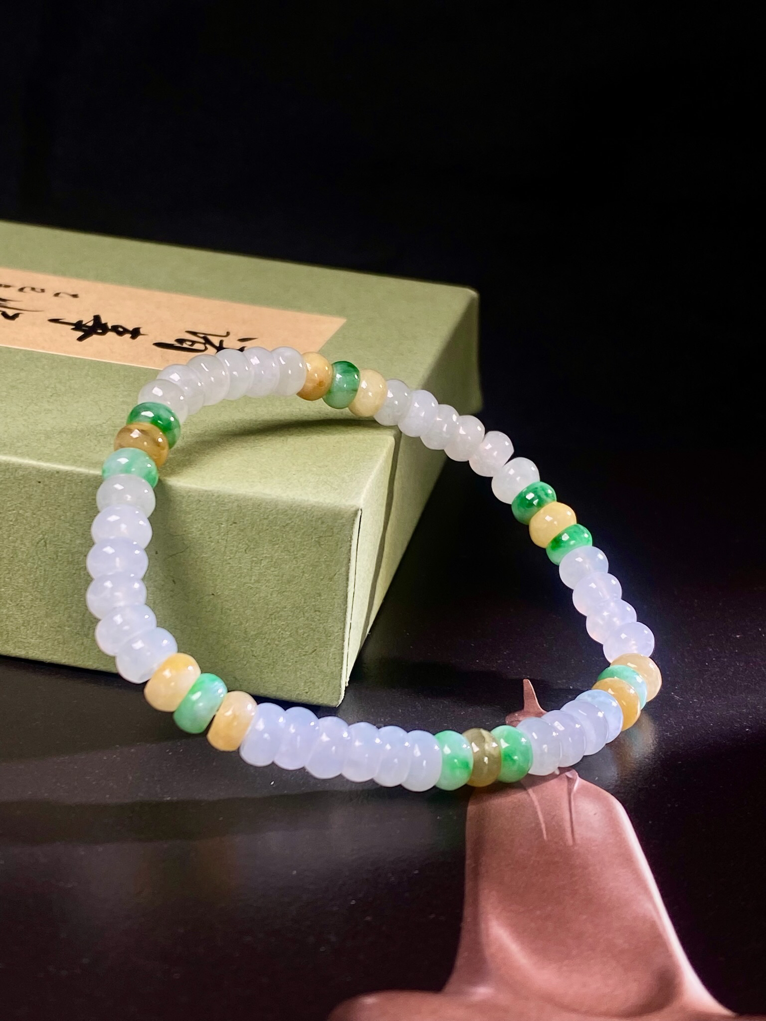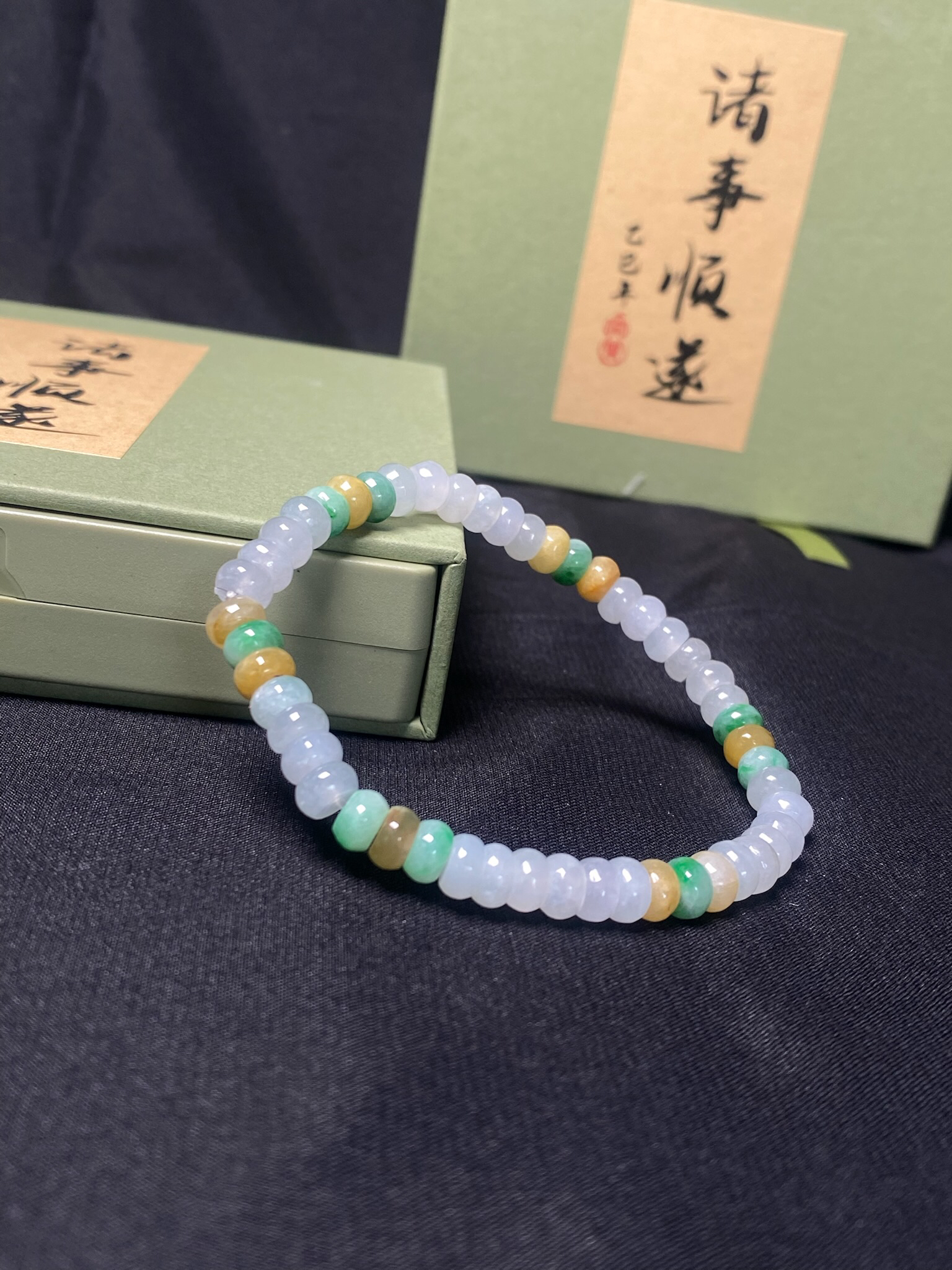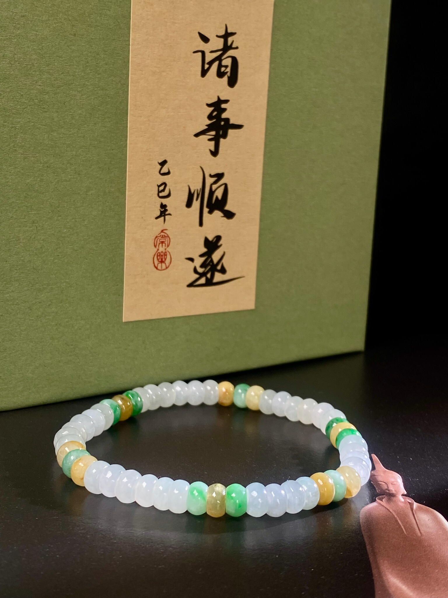 翡翠算盘珠手串,不仅承载着招财纳福美好愿景,更寓意着平安与幸福的更久相伴,平安喜乐!约6.2-3.2mm