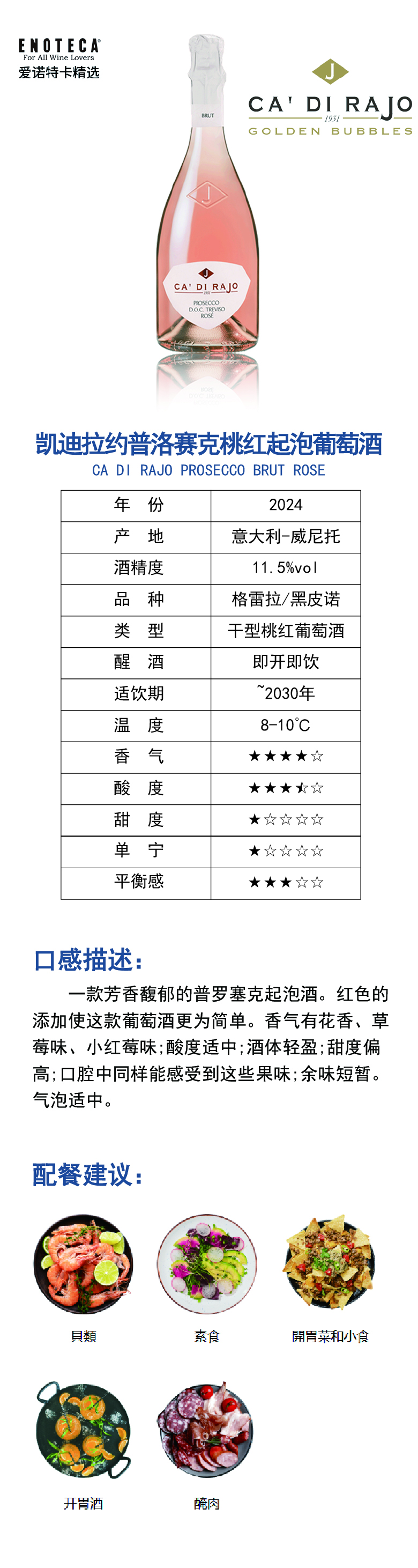 凯迪拉约普洛赛克桃红起泡葡萄酒 2022 750ml