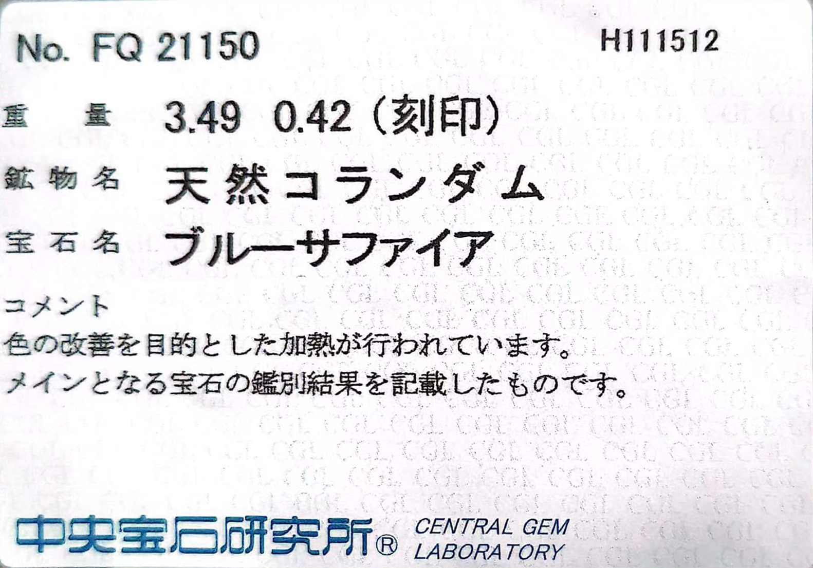宝物类型:项链 配件材质:18K黄金 宝物类型:戒指 配件材质:18K黄金 货号:B2332LB4S | 项链宝石重量:3.49克拉 配钻:0.42克拉 戒指宝石重量:1.17克拉 戒指手寸:14号 证书:中央宝石研究所 |