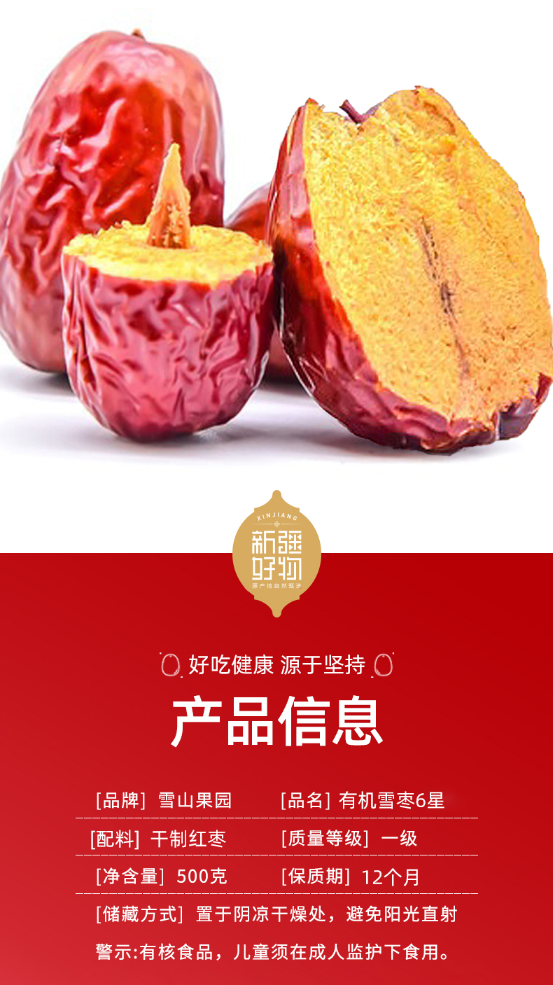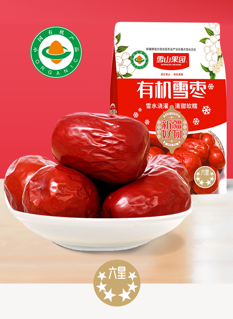 【零食专区】雪山果园 新疆六星有机雪枣 500g/袋 果经大颗粒饱满 皮薄核小 肉厚自然清甜