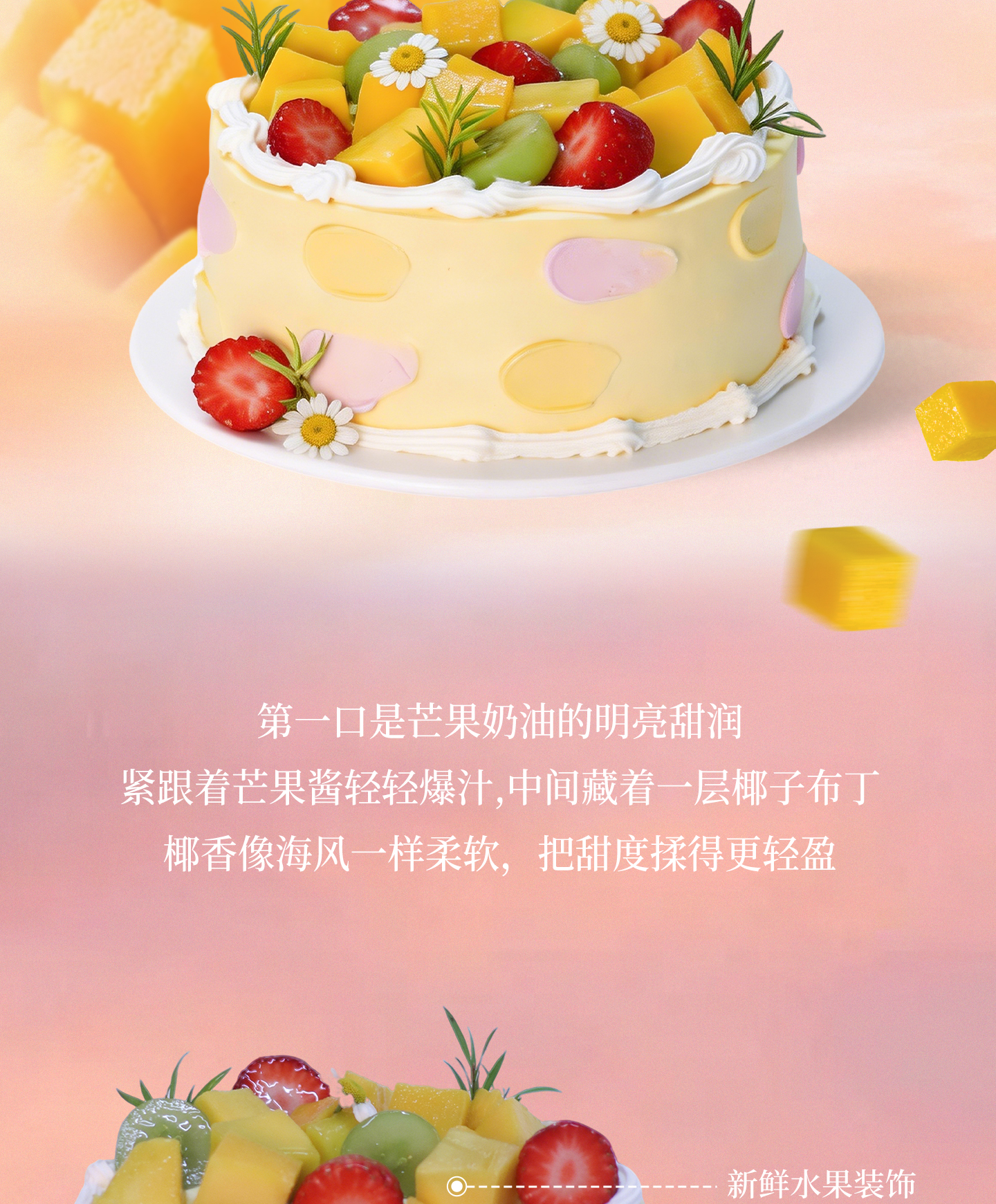 【游园金芒】三层夹心芒果爆汁椰子布丁斑斓糯米动物奶油生日蛋糕26款