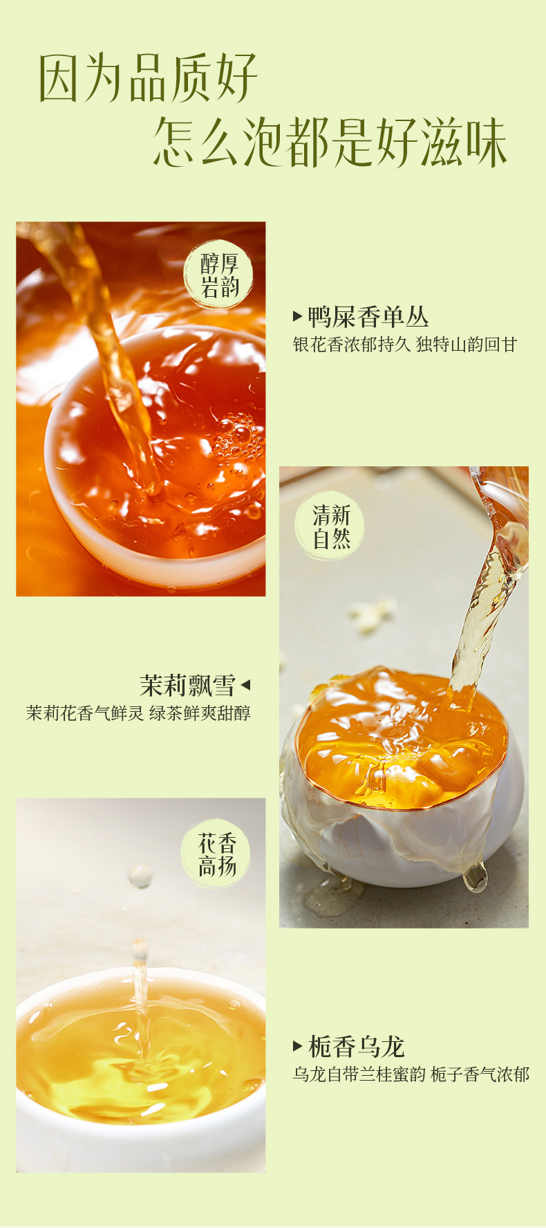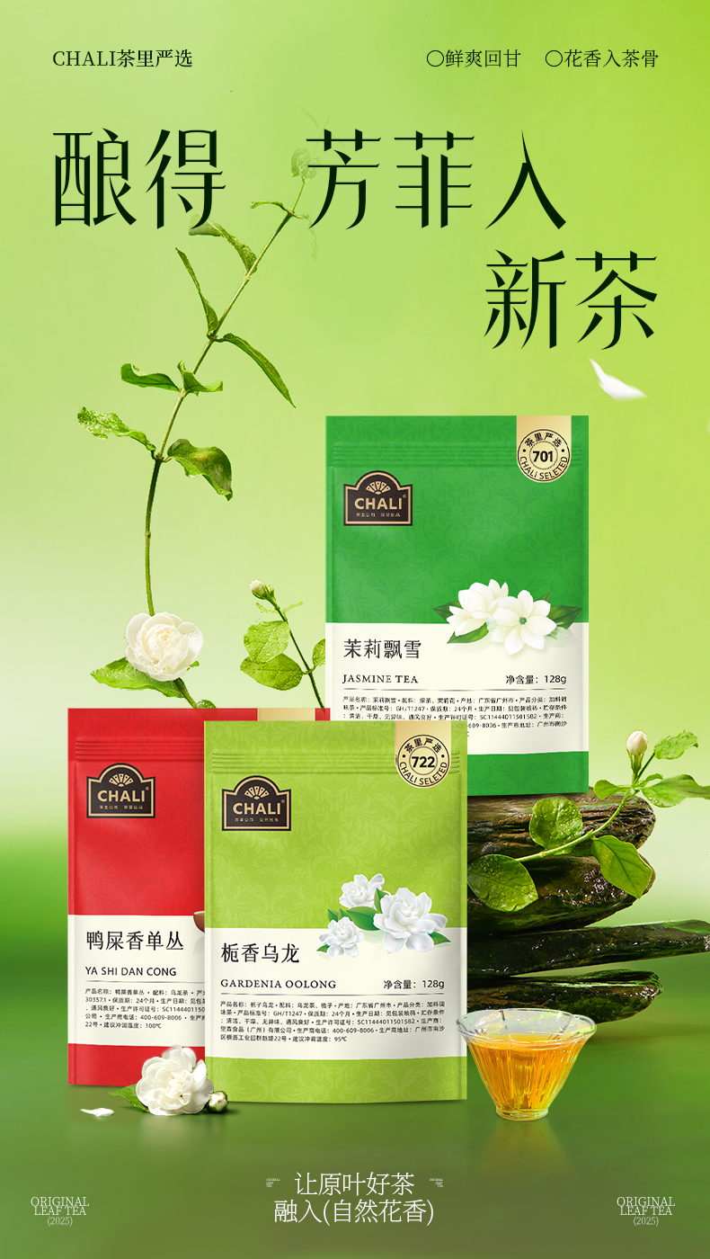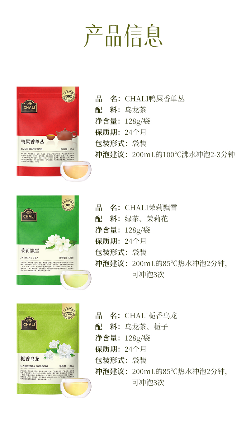 【三袋送盖碗】CHALI 鸭屎单丛 茉莉飘雪 栀香乌龙袋装原叶茶