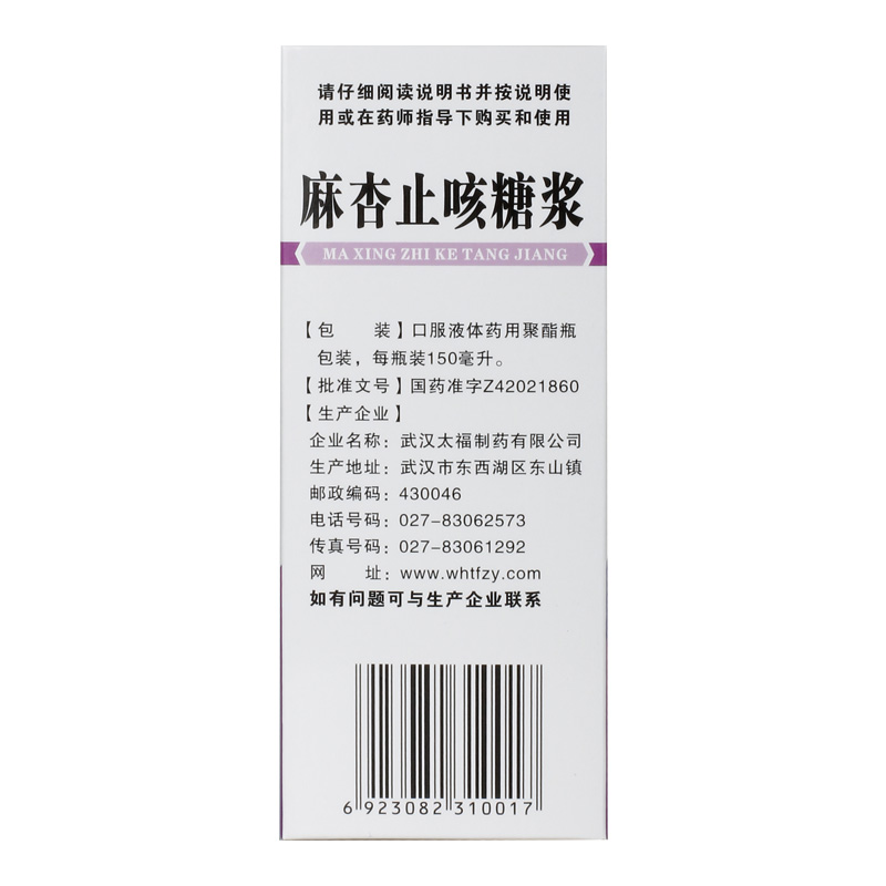 太福 麻杏止咳糖浆 150ml*1瓶/盒