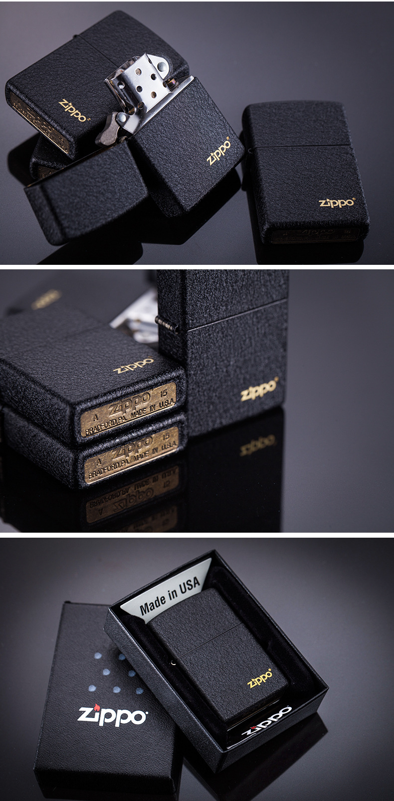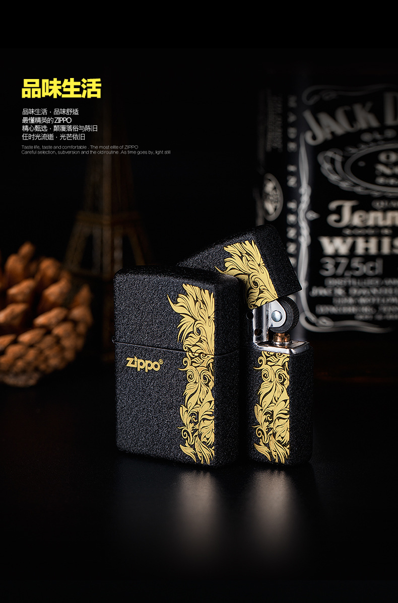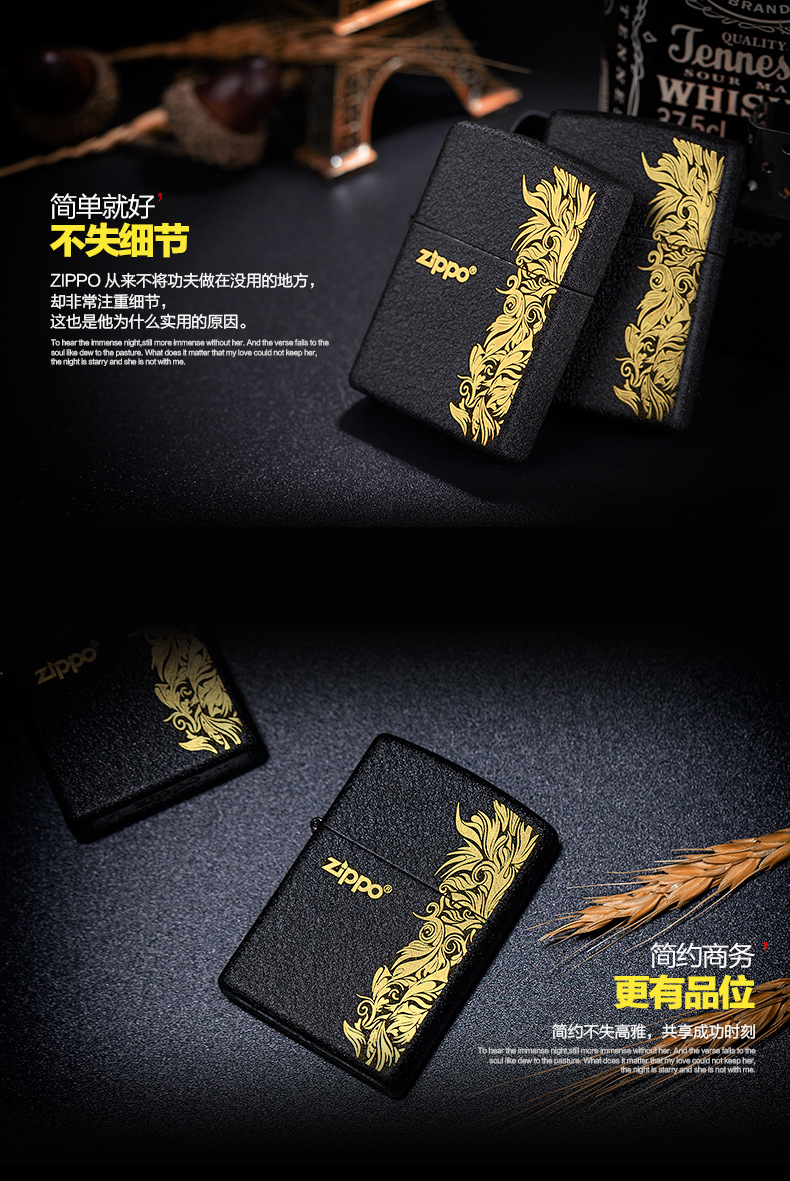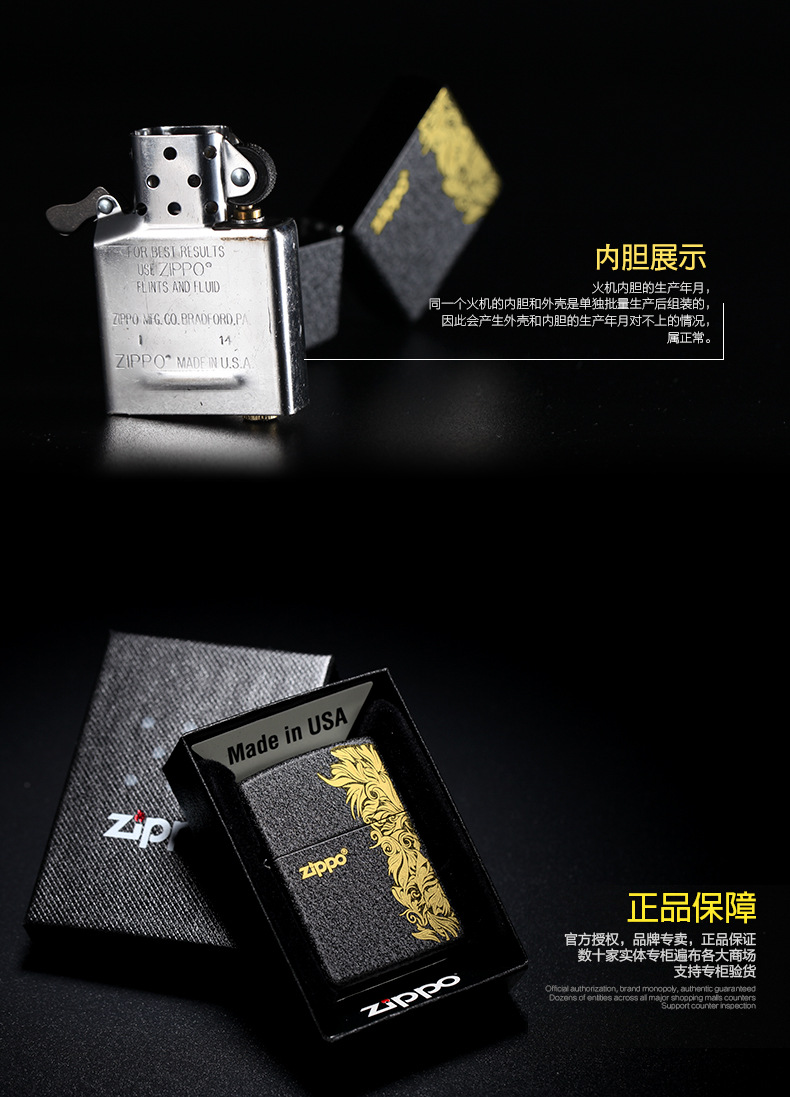 【优美】zippo打火机正版 二战黑裂漆236 纯铜防风男士礼物