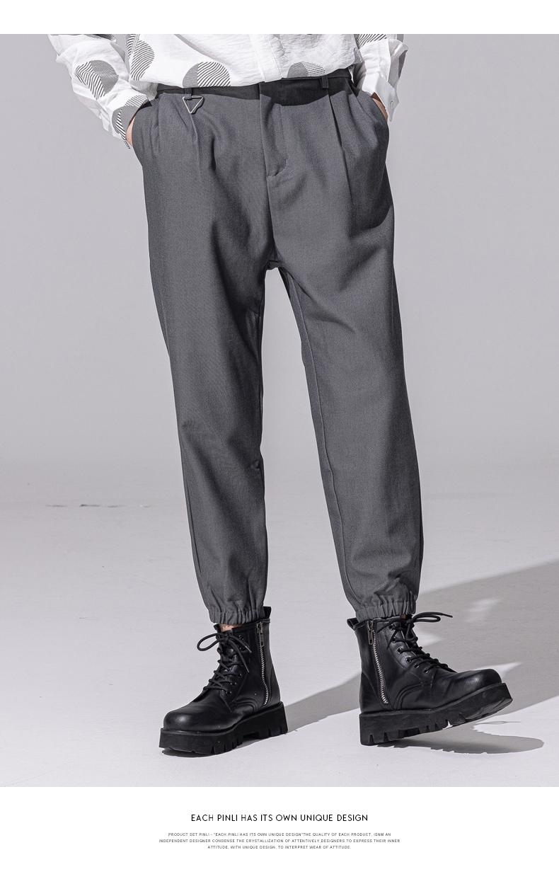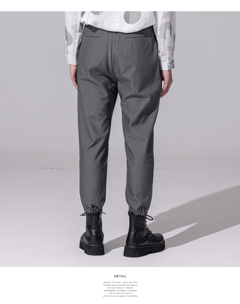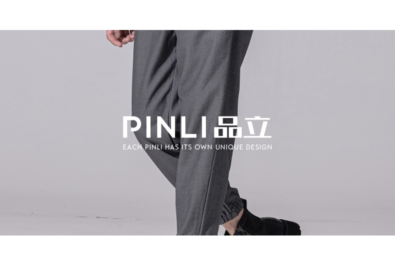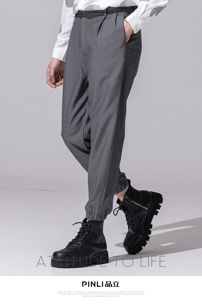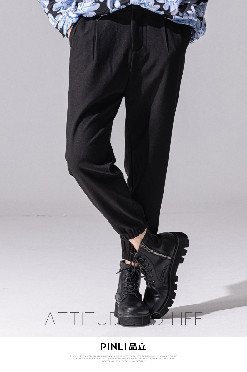 PINLI品立新款百搭纯色直筒休闲束脚长裤男小脚裤子潮牌B213117122