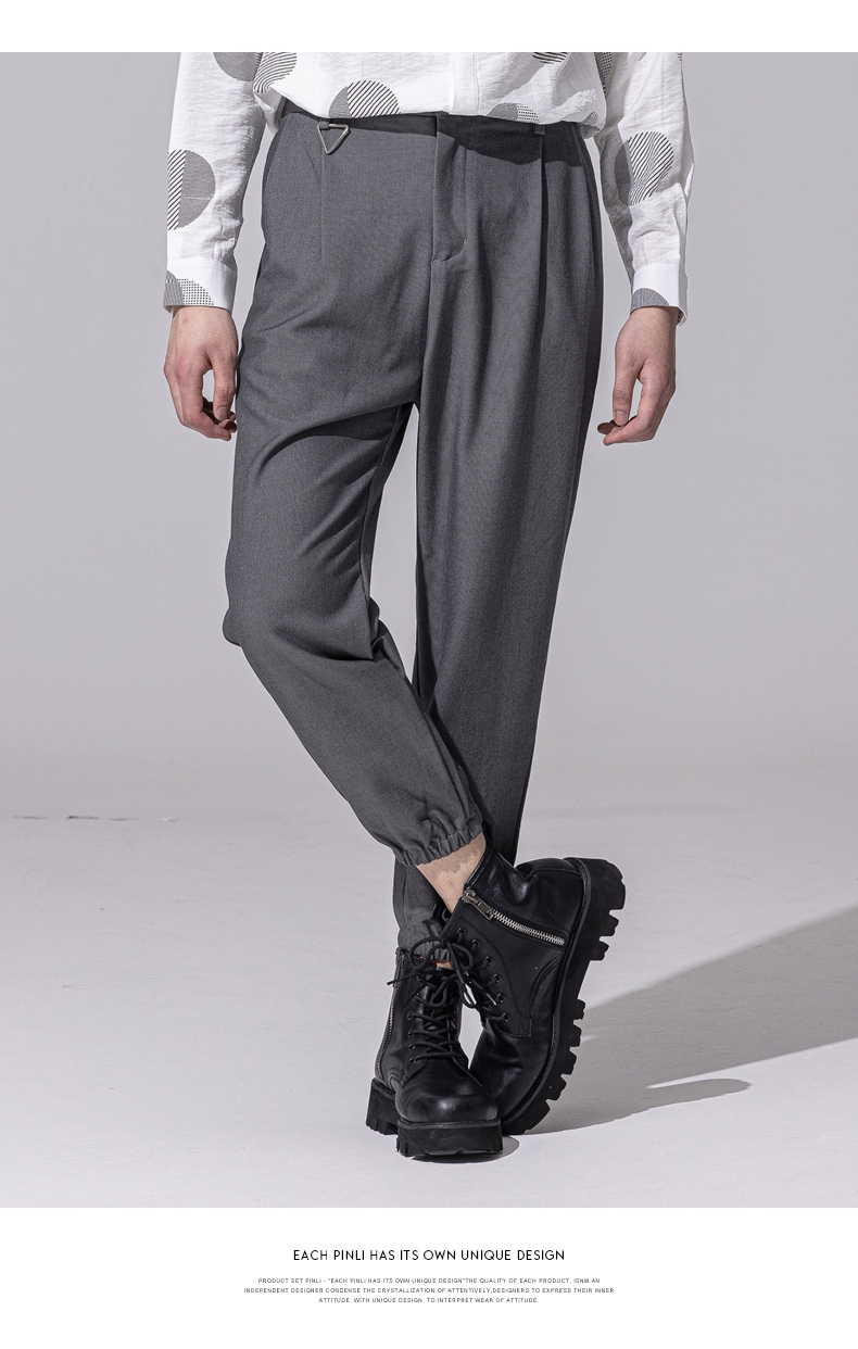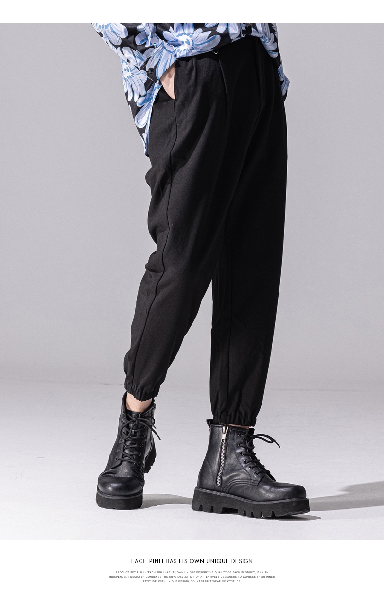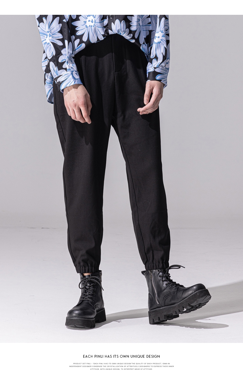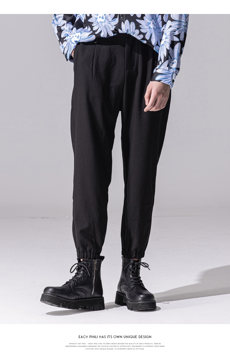 PINLI品立新款百搭纯色直筒休闲束脚长裤男小脚裤子潮牌B213117122