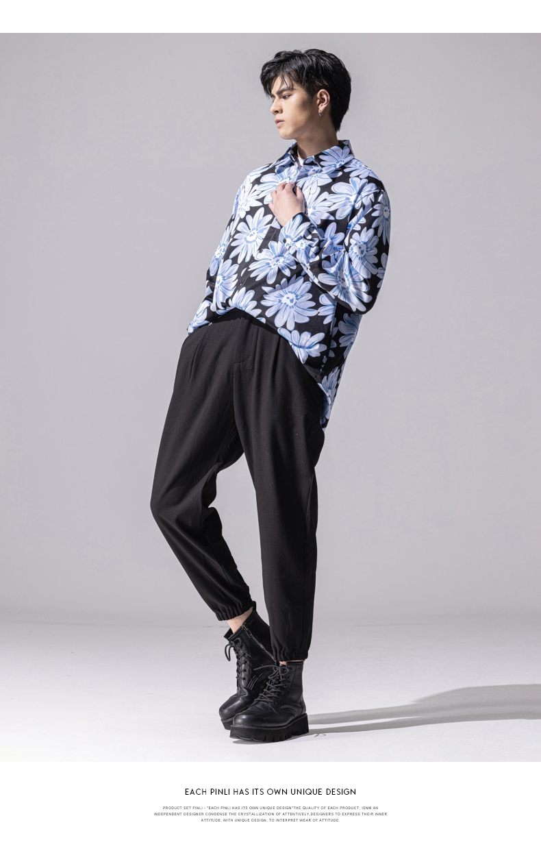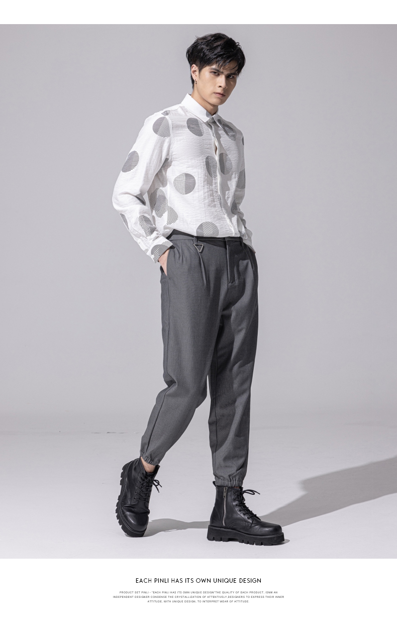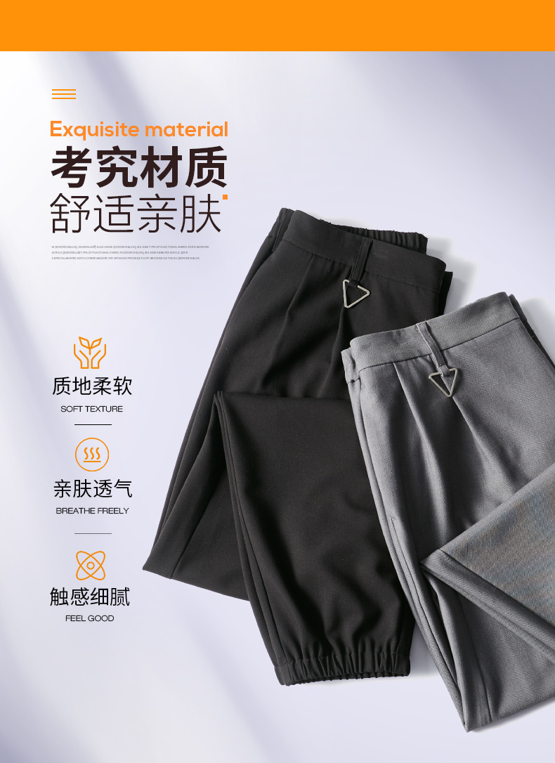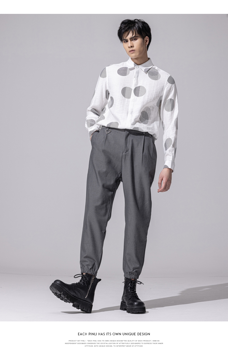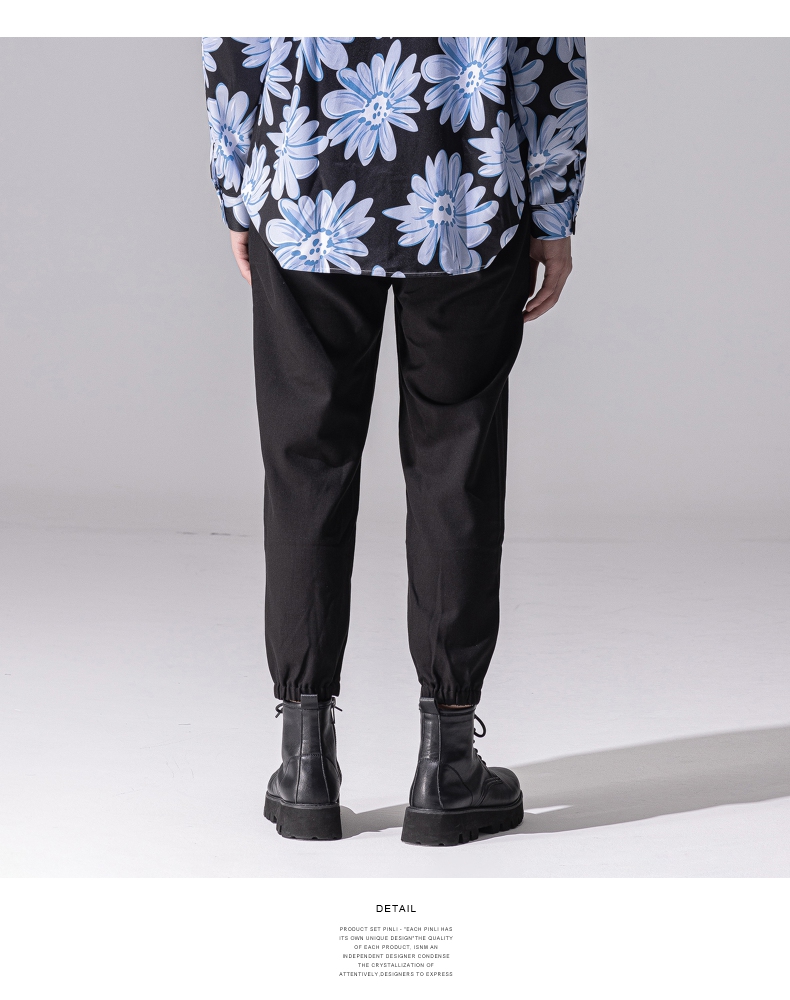 PINLI品立新款百搭纯色直筒休闲束脚长裤男小脚裤子潮牌B213117122