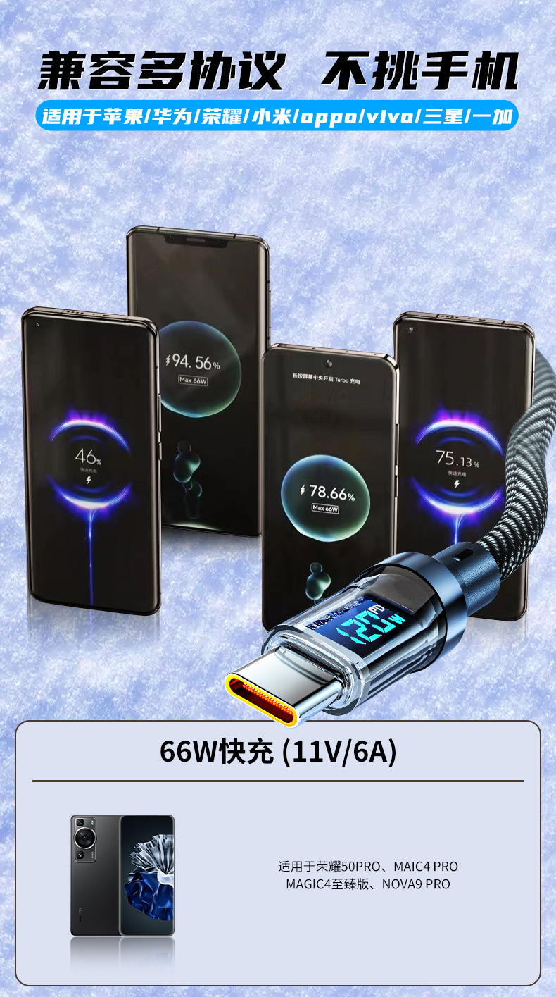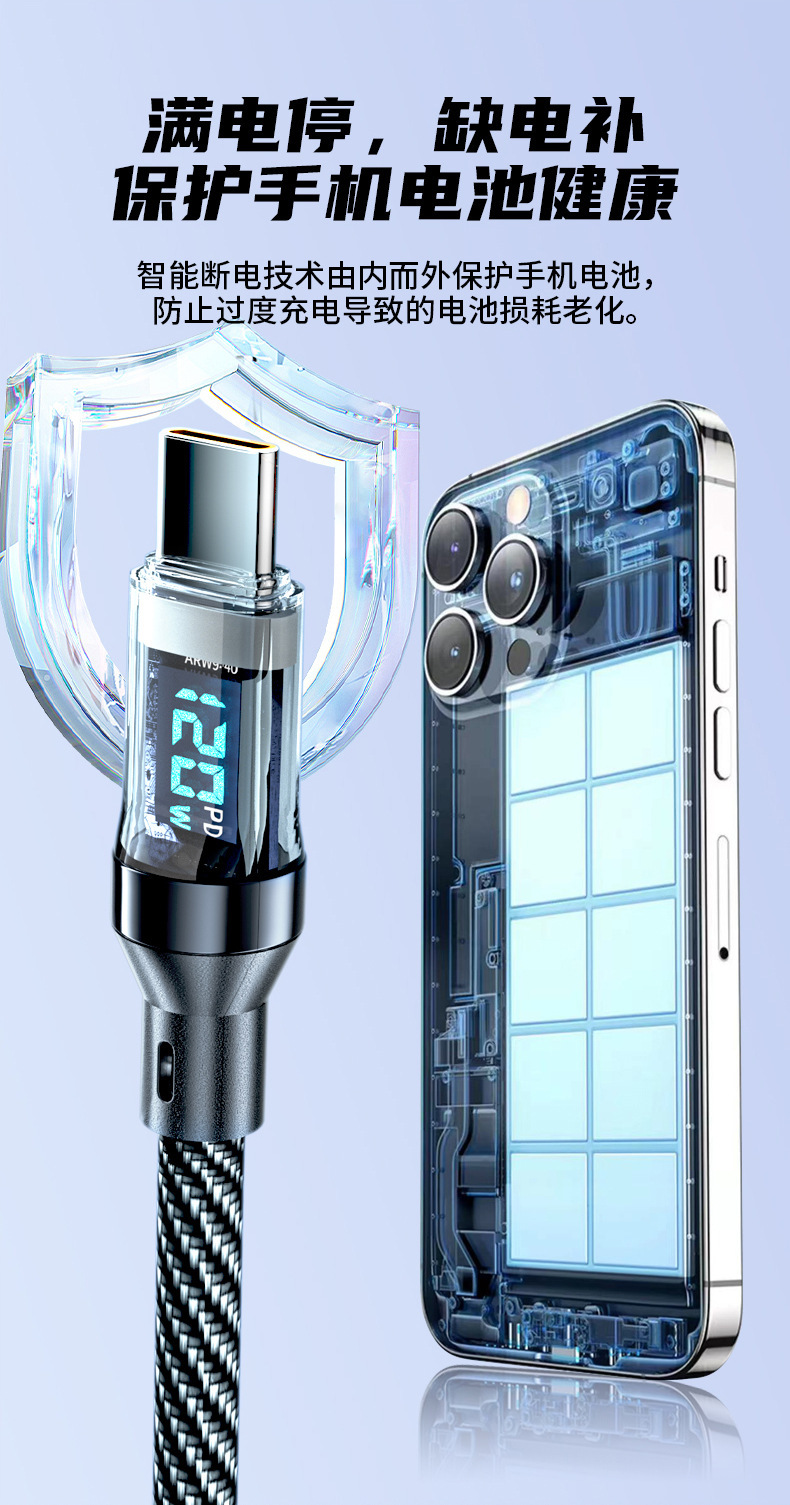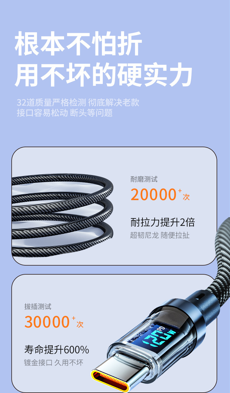 严选【智能数显数据线】PD接口27W适用苹果15华为荣耀小米手机6a快充线-1条