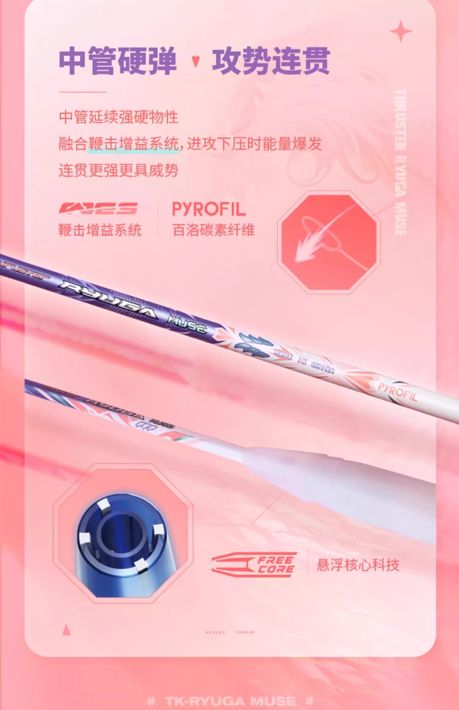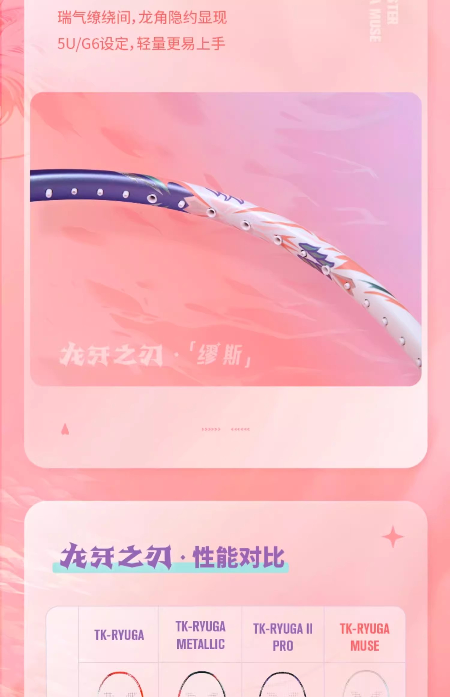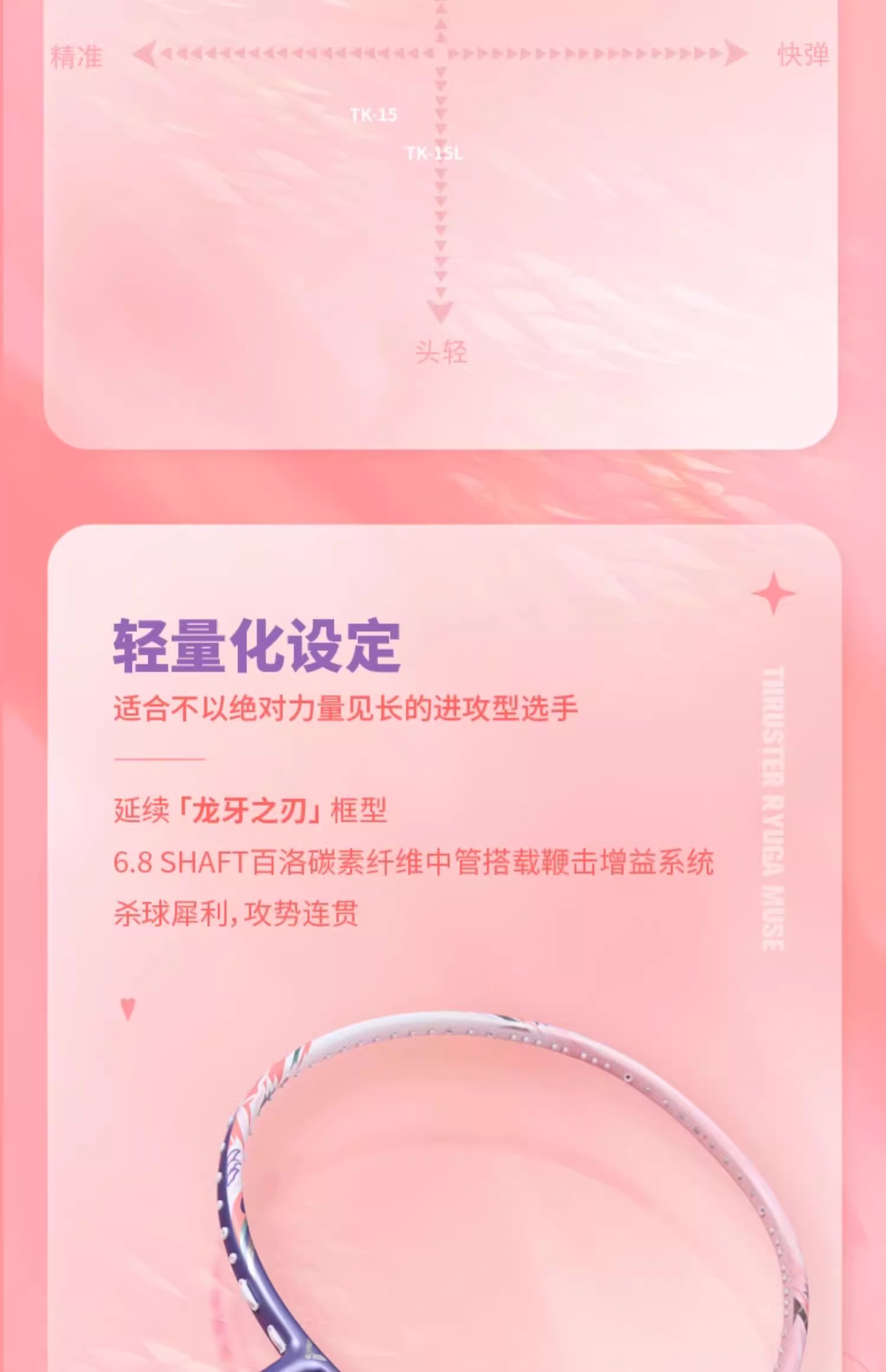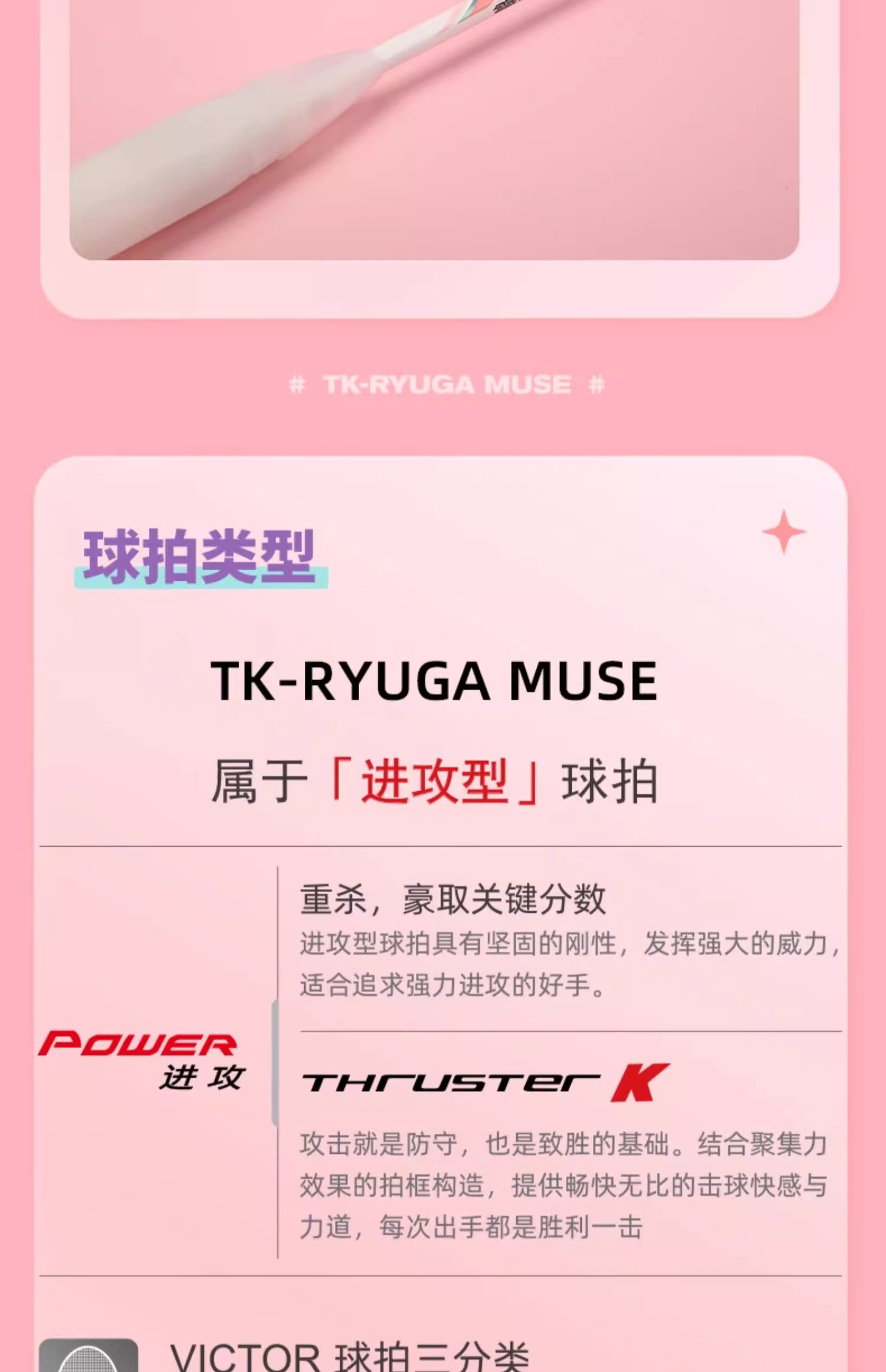 胜利威克多 羽毛球拍 粉龙牙 缪斯 TK-RYUGA MUSE