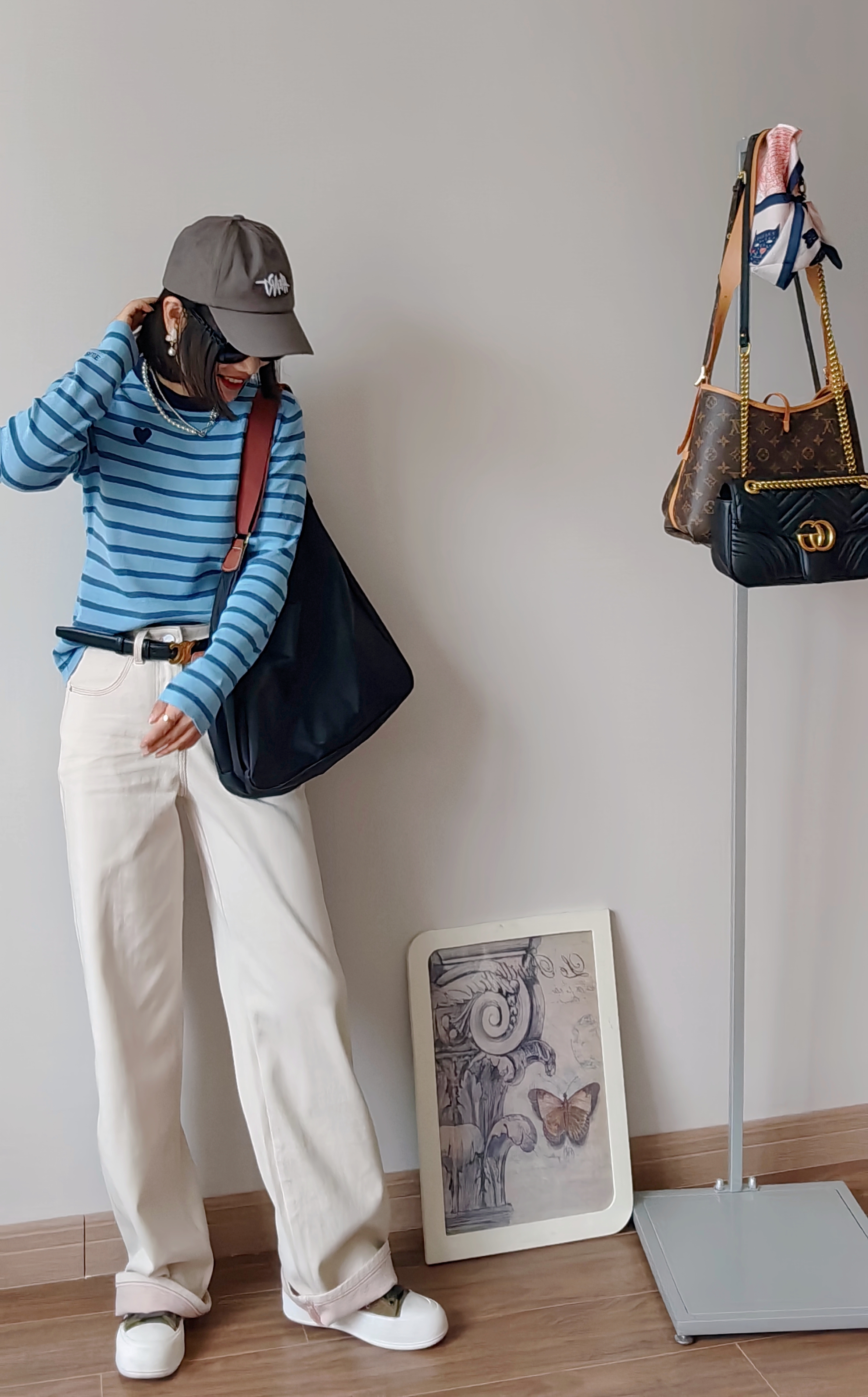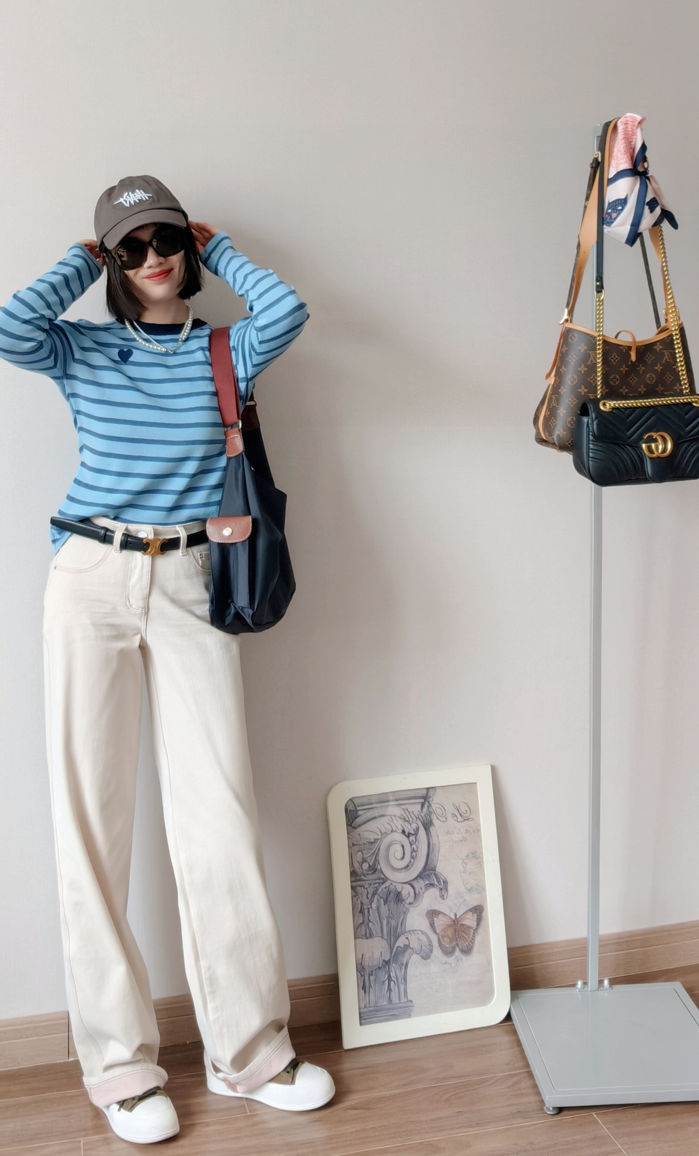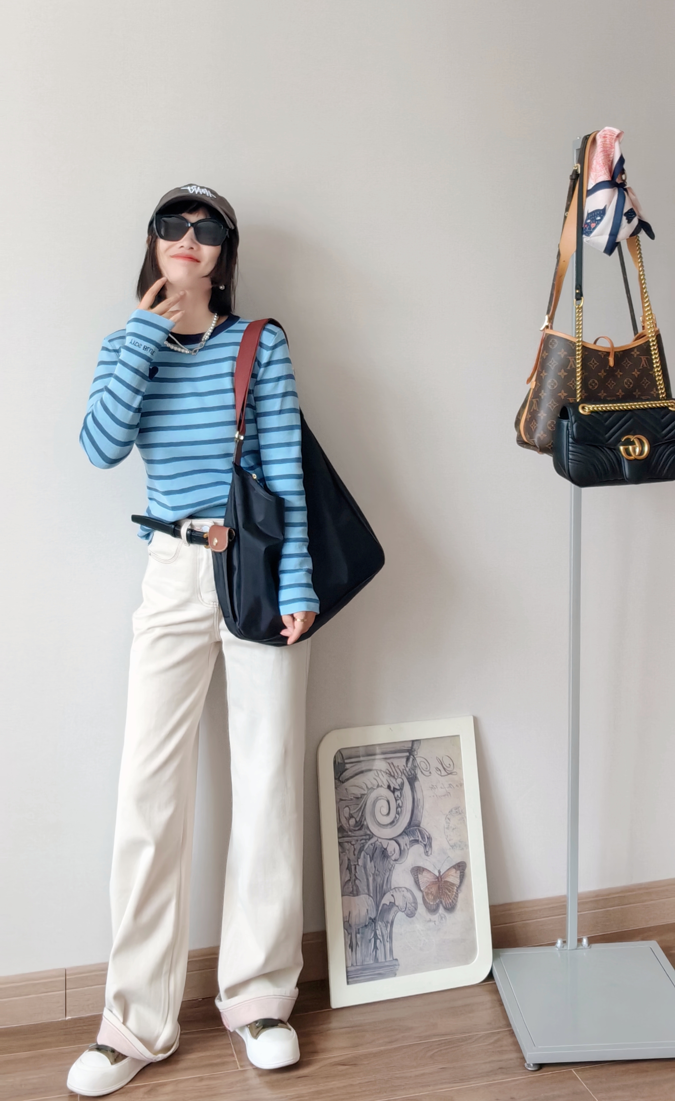 春天的松弛感,蓝色条纹像海风拂面~清新脱俗。90%的回头率都藏在“漫不经心”的慵懒