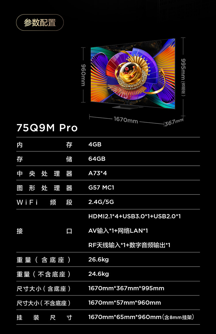 【新品上市】TCL电视 75Q9M Pro 75英寸 SQD-Mini LED 100%全局高色域 超级蝶翼星曜屏 万象分区 绚彩XDR 5000nits