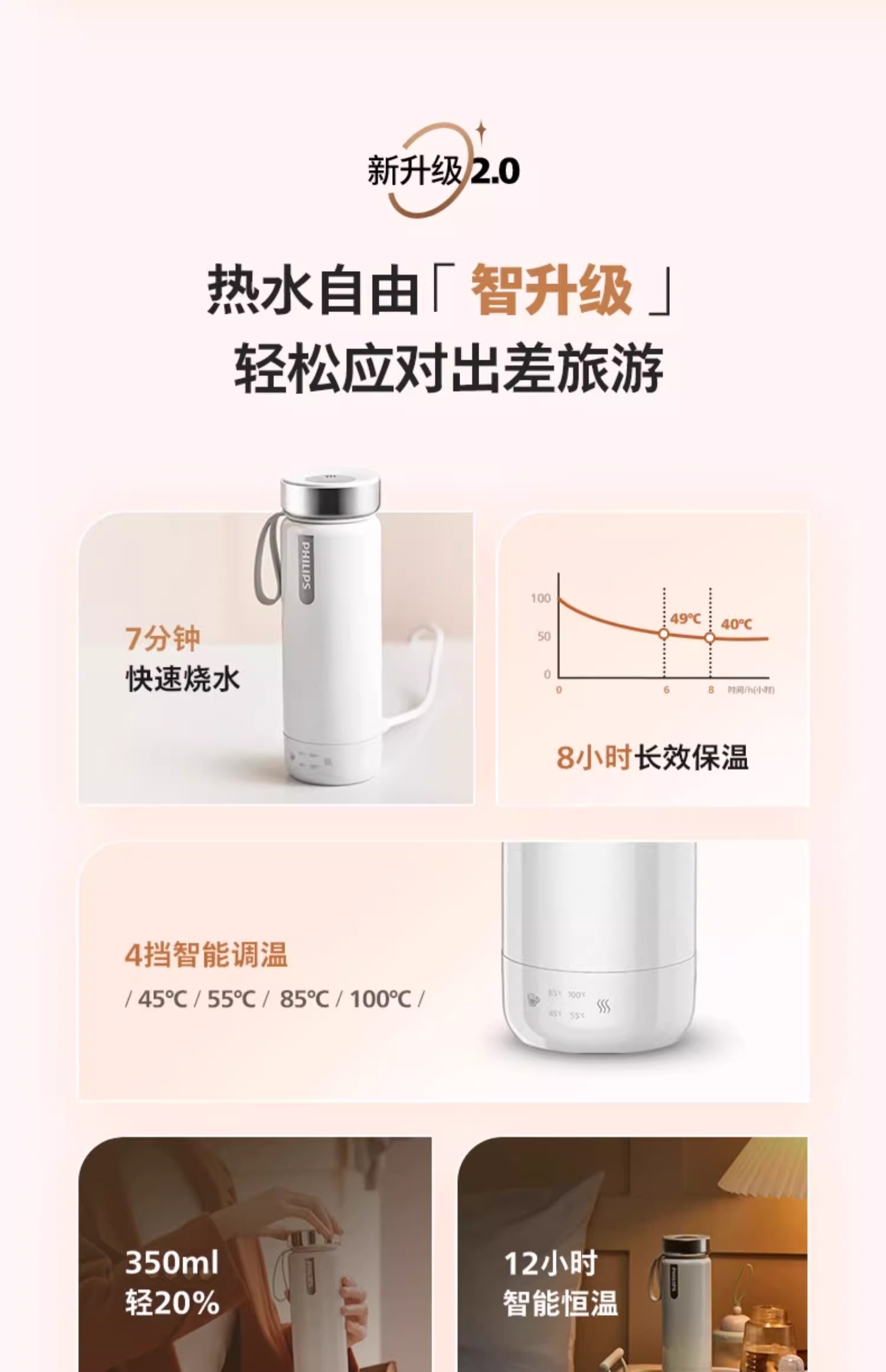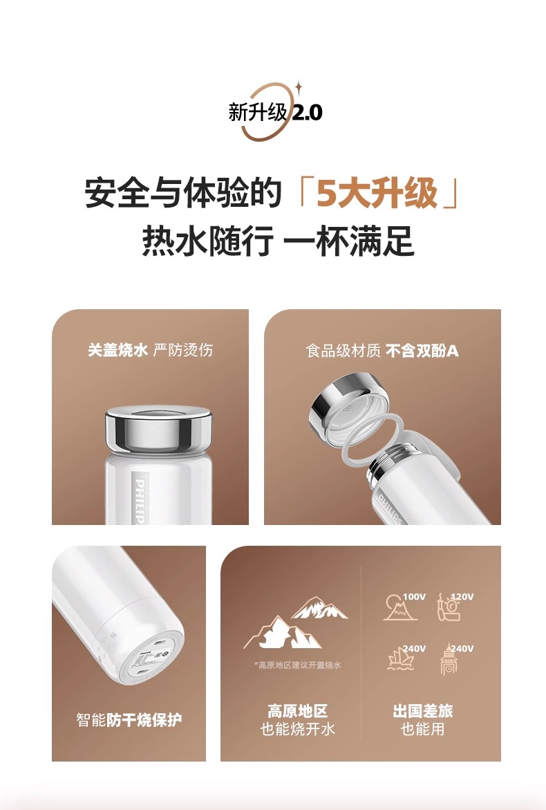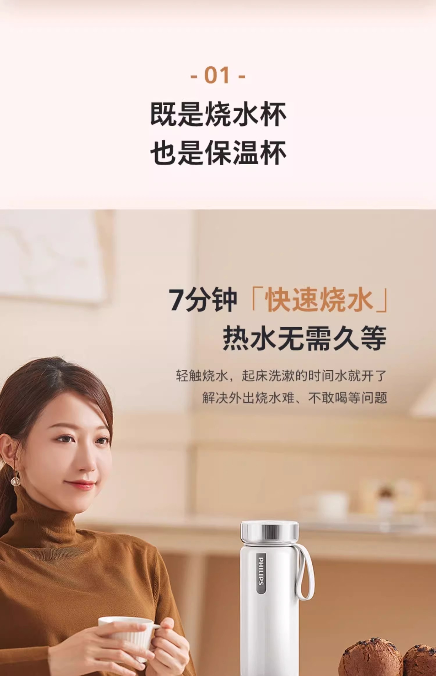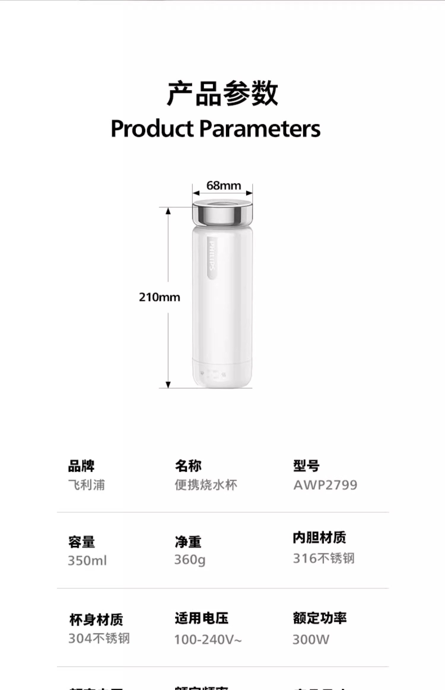 飞利浦(PHILIPS)便携式烧水壶保温水杯AWP2799