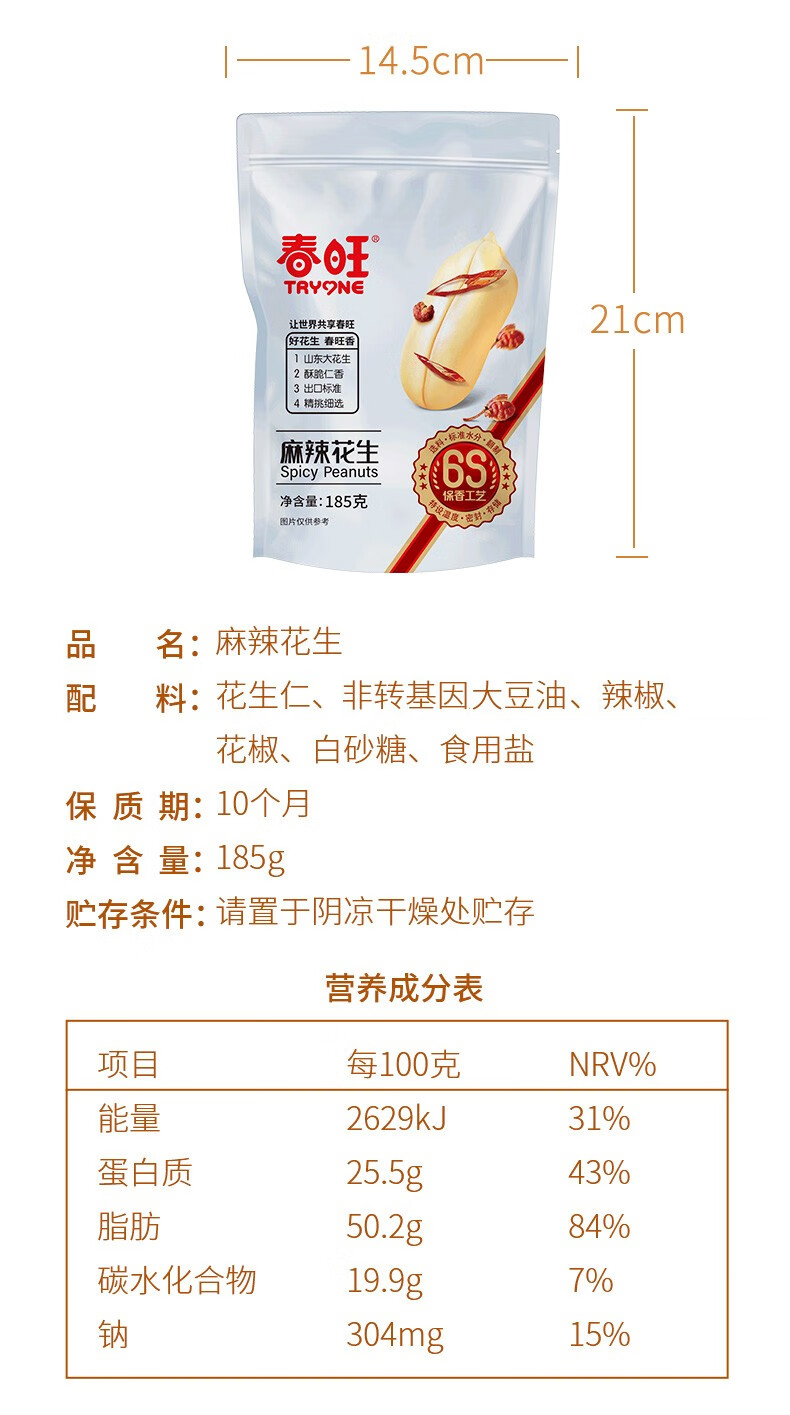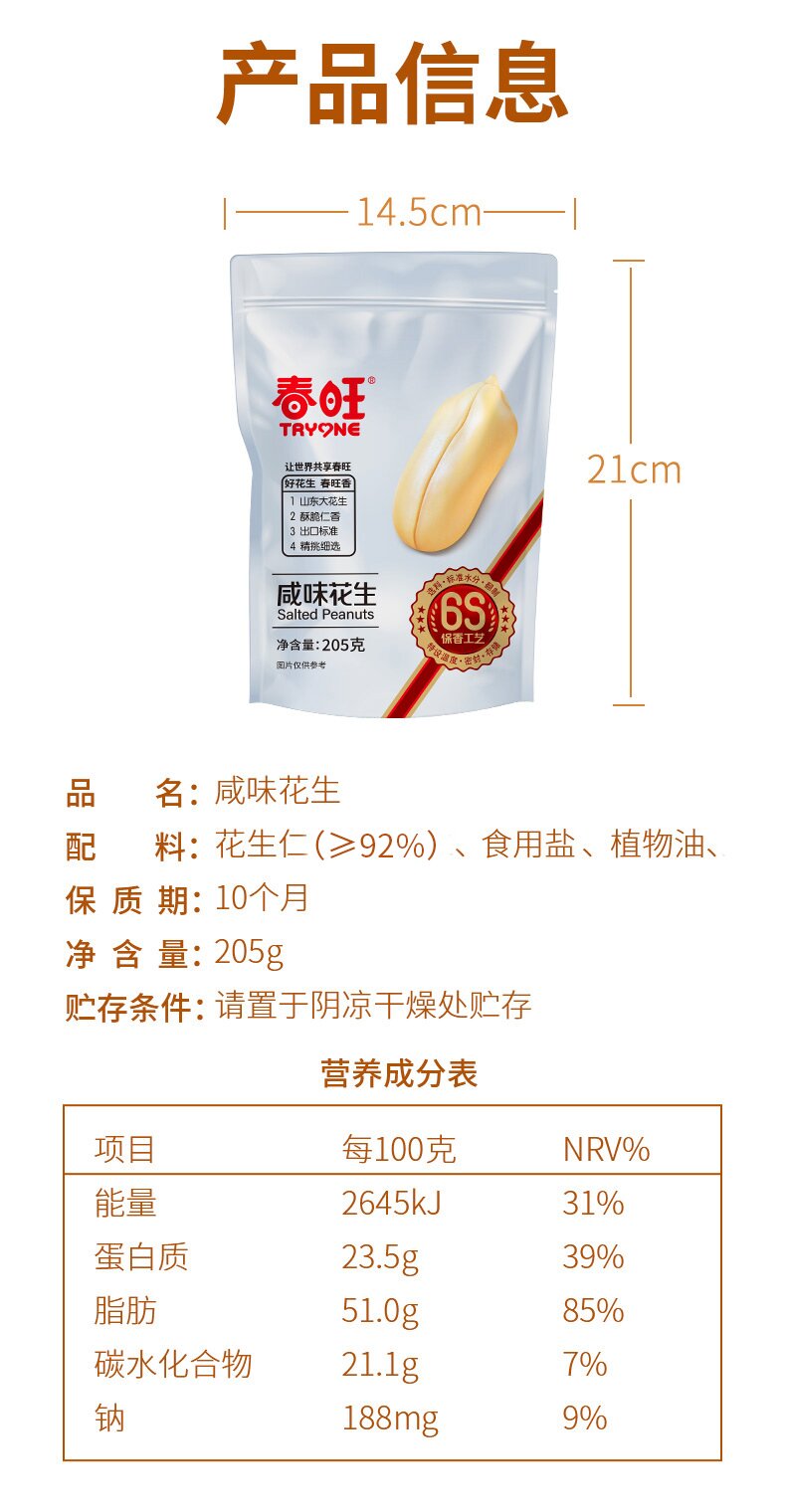 春旺袋装花生麻辣盐焗花生山东大花生下酒菜咸味205g/麻辣185g