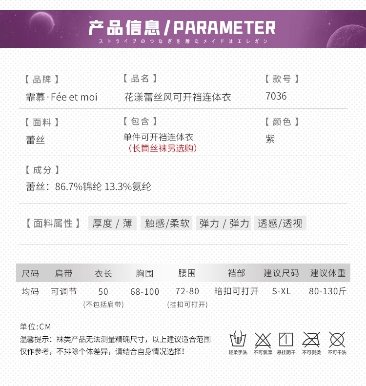 霏慕 花漾蕾丝风可开裆连体衣7036