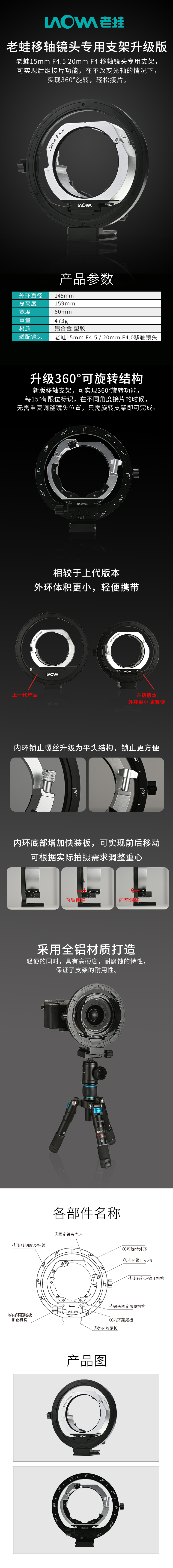老蛙移轴镜头专用云台支架 可360°旋转 适配老蛙15mmF4.5 20mmF4.0