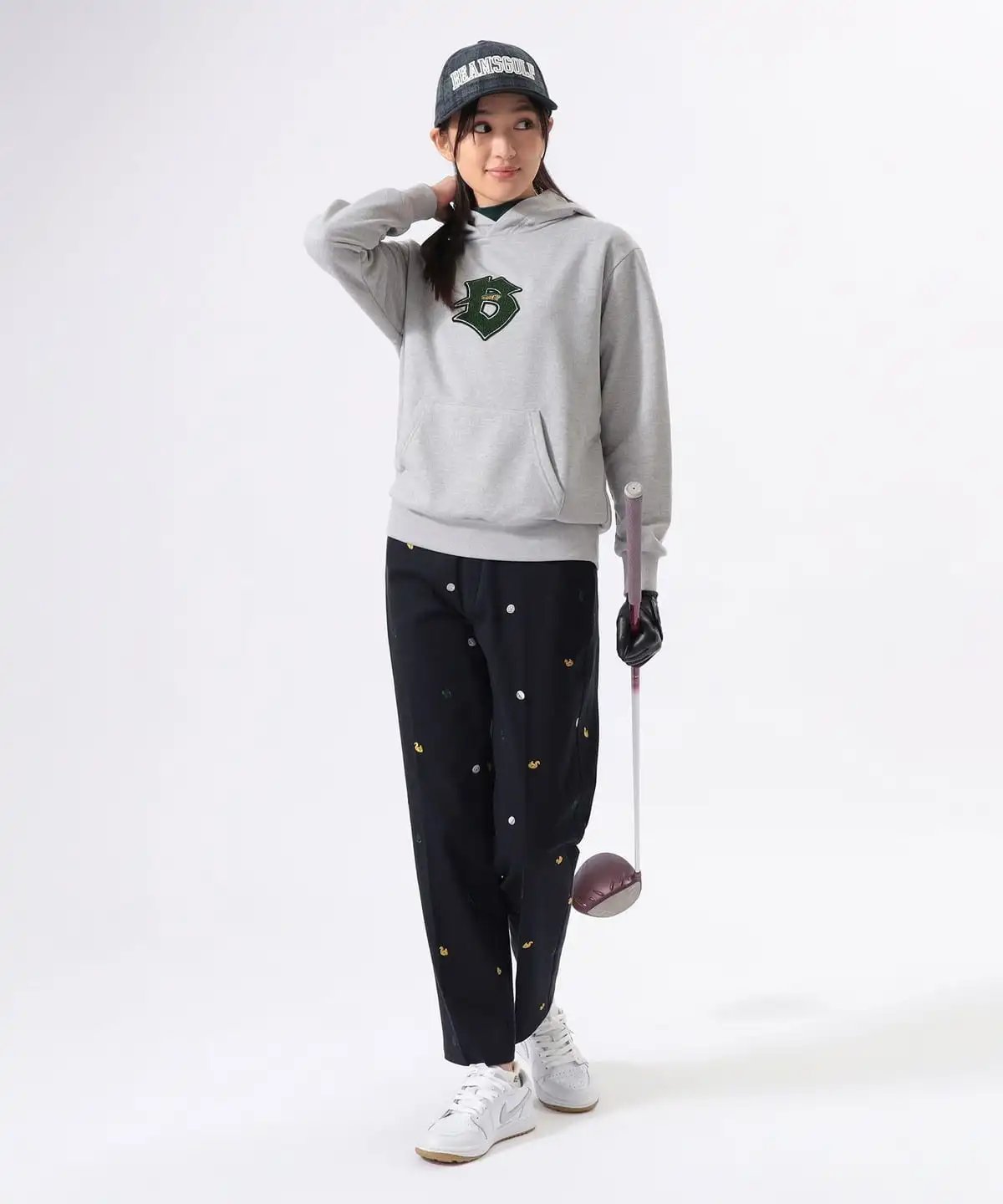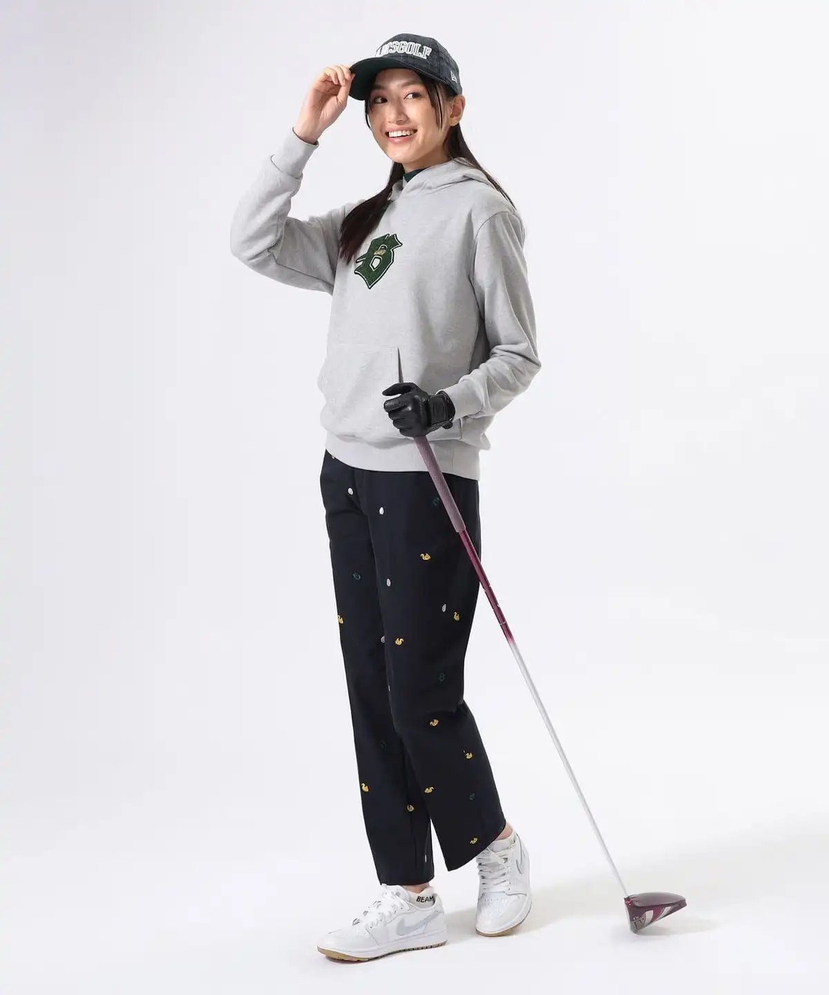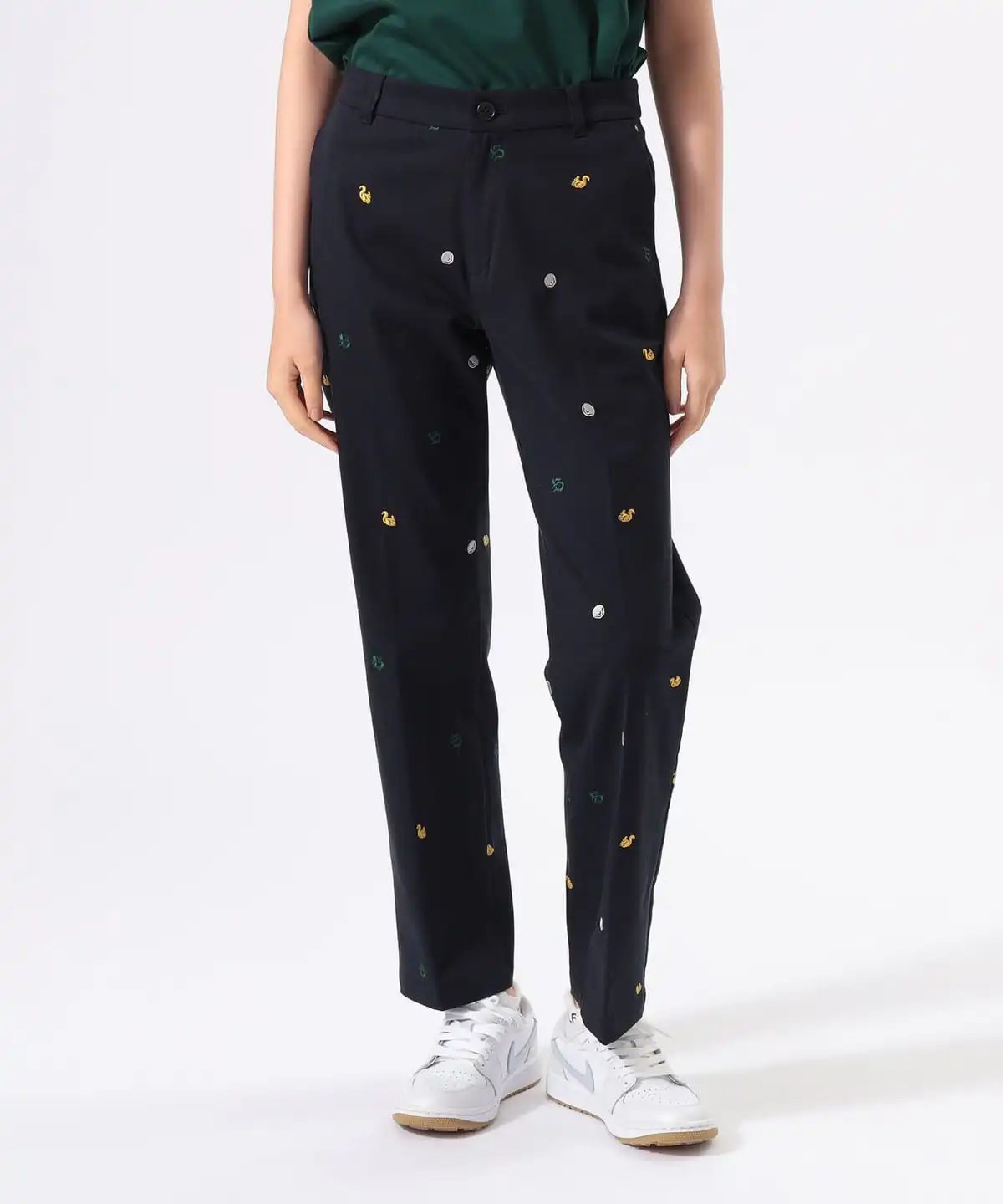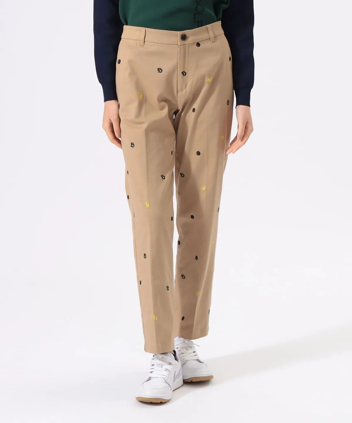 裤身整体印有2025年秋冬系列的标志性图案(高尔夫球、松鼠、B字母logo),设计俏皮却不过分张扬。利落的直筒版型适配各类上衣,轻松为高尔夫造型注入不经意的甜美气质。腰部采用贴合女性曲线的设计,即便将衬衫下摆束入裤腰,也能保持优美的身形轮廓。直筒版型利落不紧绷,不会过度勾勒腿部线条。恰到好处的宽松度,带来松弛自在的穿着体验,舒适无束缚。采用兼具棉质柔和亲肤感与聚氨酯适度弹力的面料。既能轻松应对高尔夫挥杆等大幅度动作,又能确保全天穿着的舒适感。 具体尺寸: S:腰围68cm/臀围91cm/裤长94cm M:腰围72.5cm/臀围93cm/裤长95.5cm L:腰围76.5cm/臀围99cm/裤长97cm (Tip:尺寸均为手工测量如有1-3cm误差属正常情况) 外单保真,部分三标不齐(领标,洗标,吊牌),介意者慎拍!