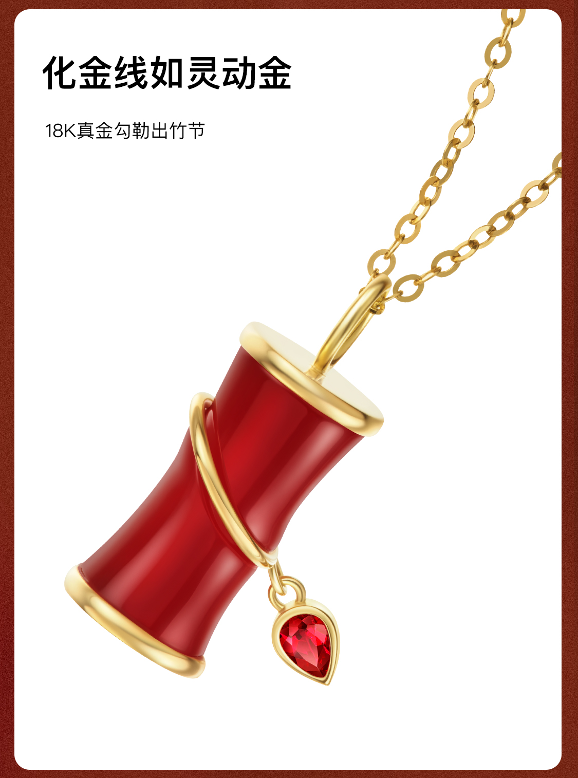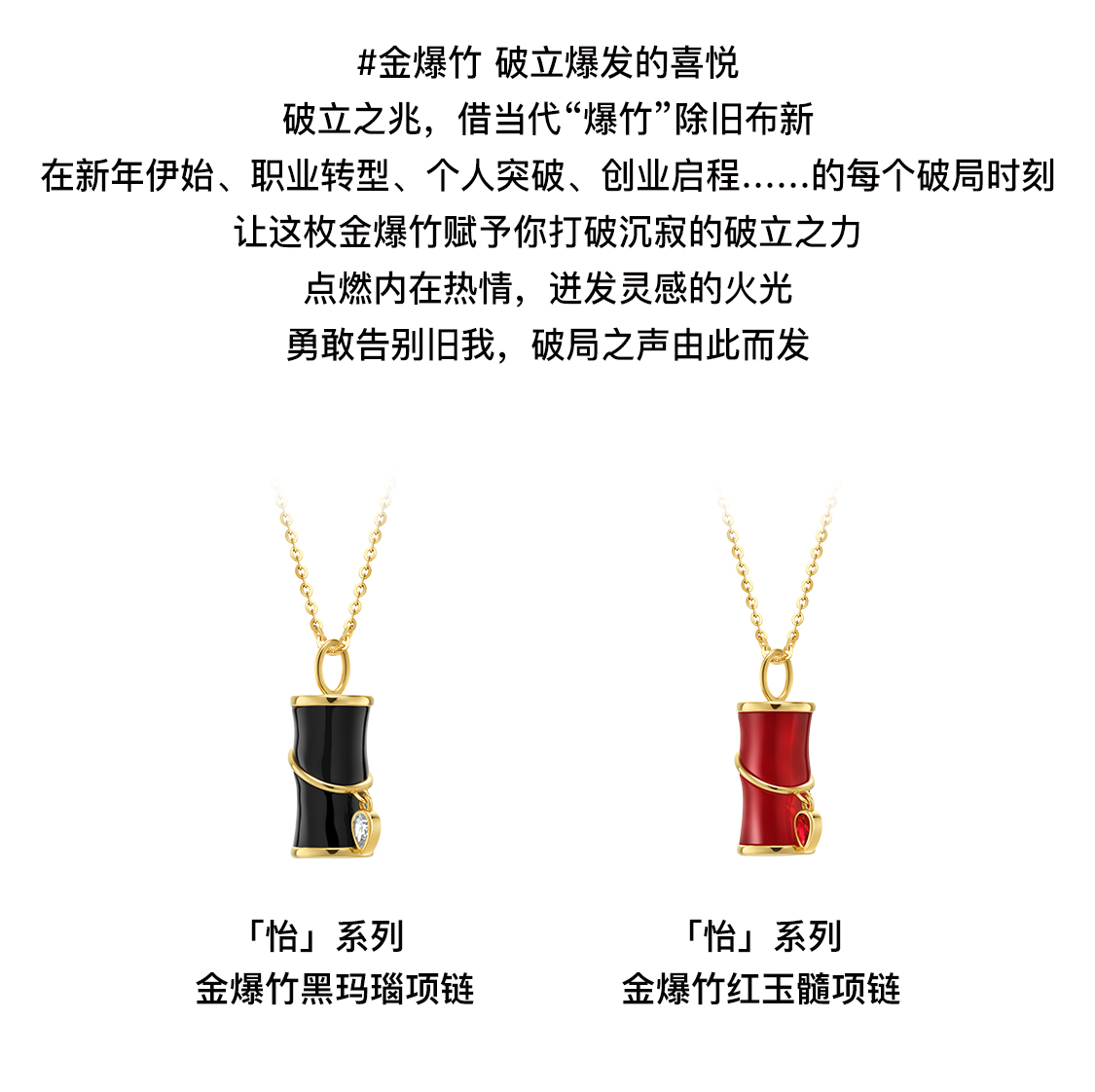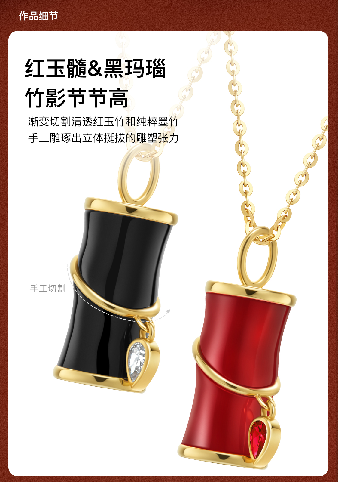「怡」金爆竹红玉髓黑玛瑙18K金项链