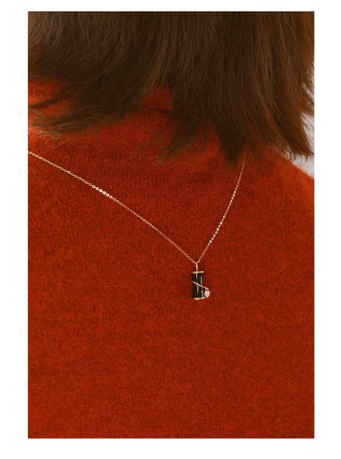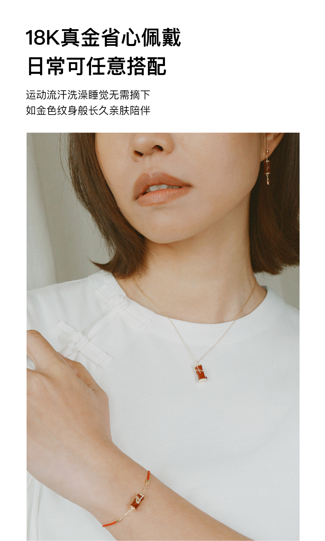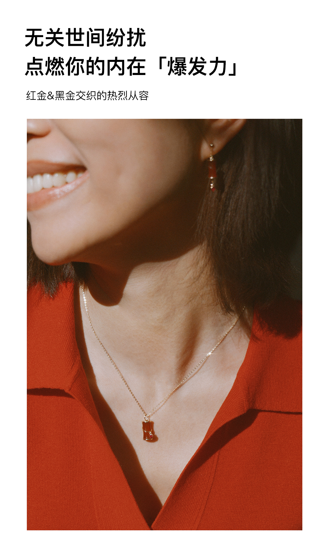 「怡」金爆竹红玉髓黑玛瑙18K金项链