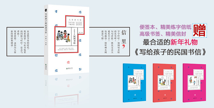 《写给孩子的民国书信》一辑三册,分家族、亲戚和师友三类。融合书信、礼仪、书法、绘画于一体,随书附赠精美信笺、便签本、信纸、信封,拿来即可使用,也便于与孩子一起回忆儿时趣事:写信。