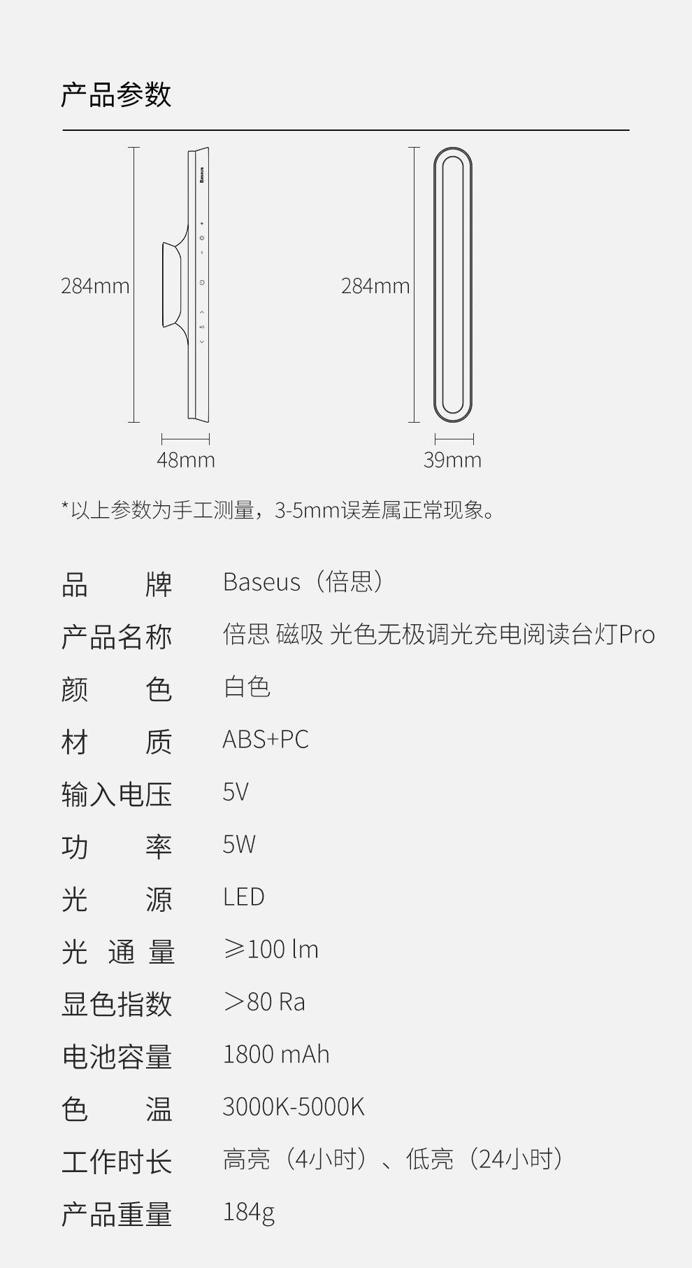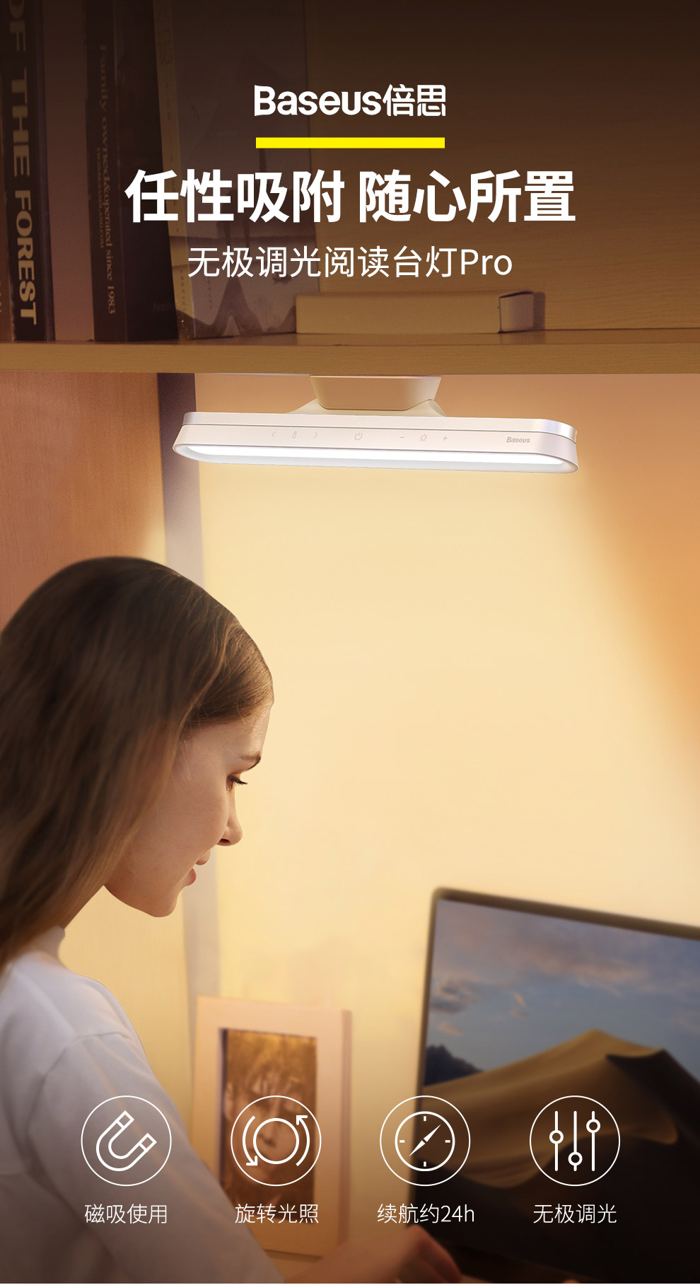 倍思 磁吸 光色无极调光充电阅读台灯Pro