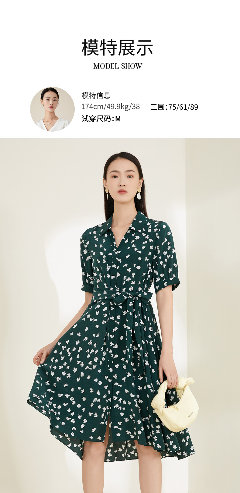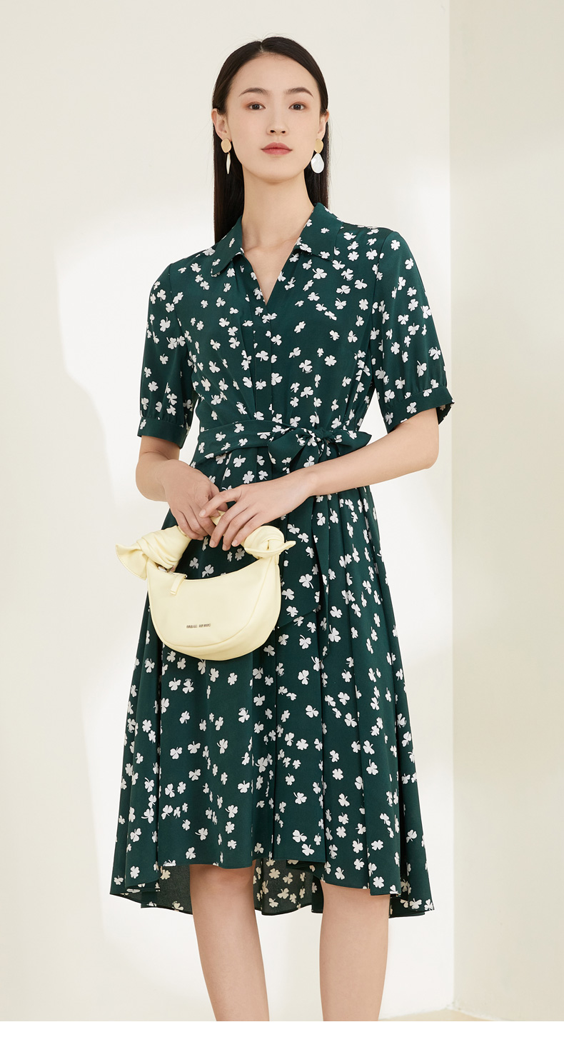 【100%桑蚕丝】玳莎印花真丝连衣裙2022夏季新款轻奢气质设计感女 CB35108