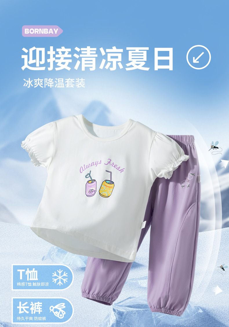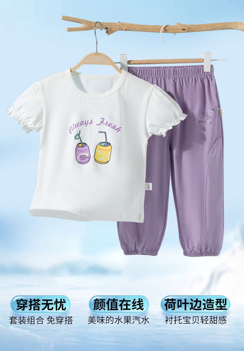 贝贝怡2025年夏季新款女童短袖套装